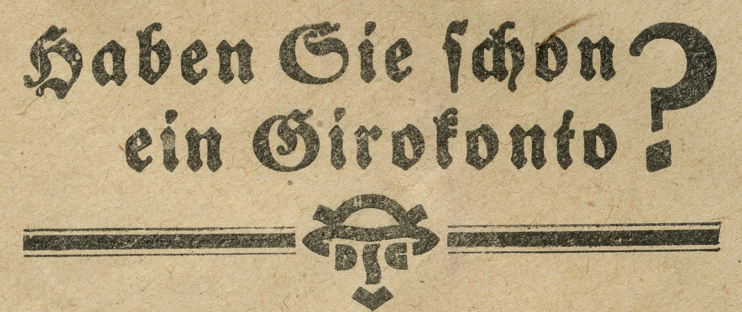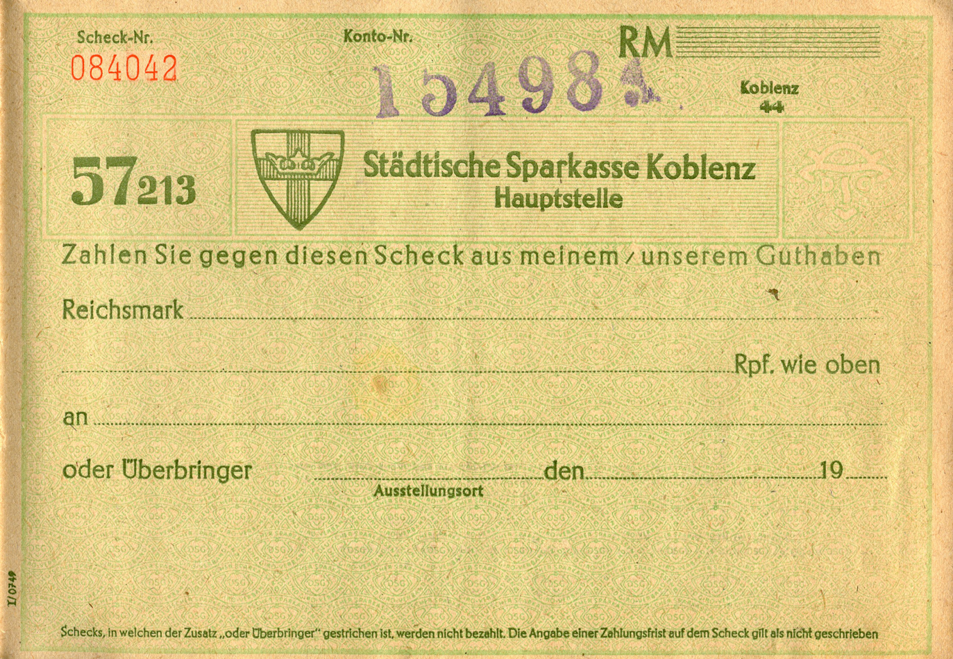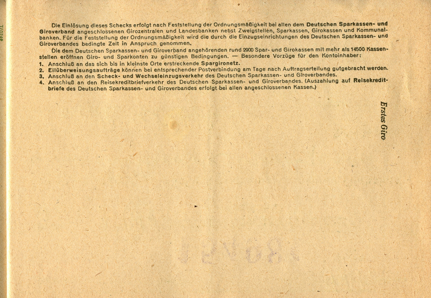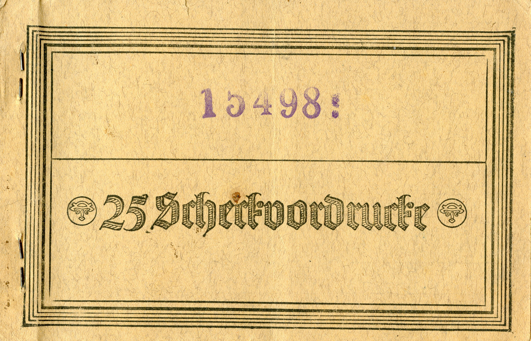 [Below: This rare booklet of checks says 'Scheckvordrucke' (check forms).]
