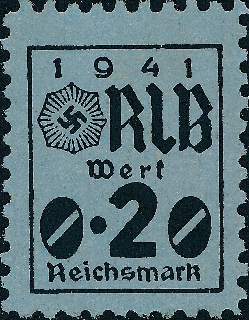 [Below: This is an RLB (Reichsluftschutzbund, ot Reich Air Protection League) dues stamp.]