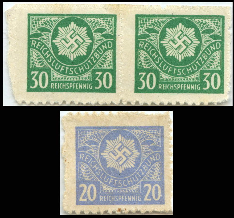 [Below: These are Reichsluftshutzbund (Reich Air Protection Organization) dues stamps.]