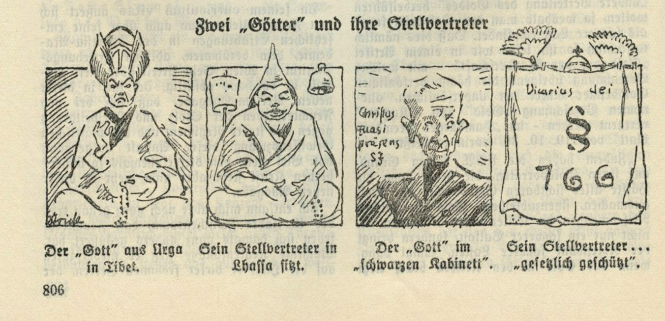 [Below: This says: 'Zwei "Gotter" und ihre Stellvertreter.'