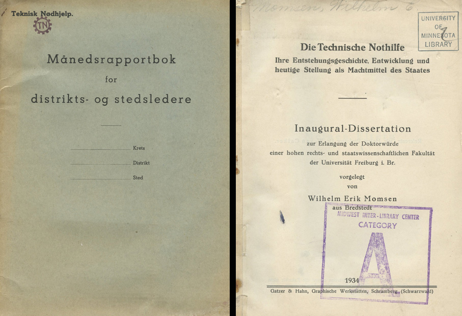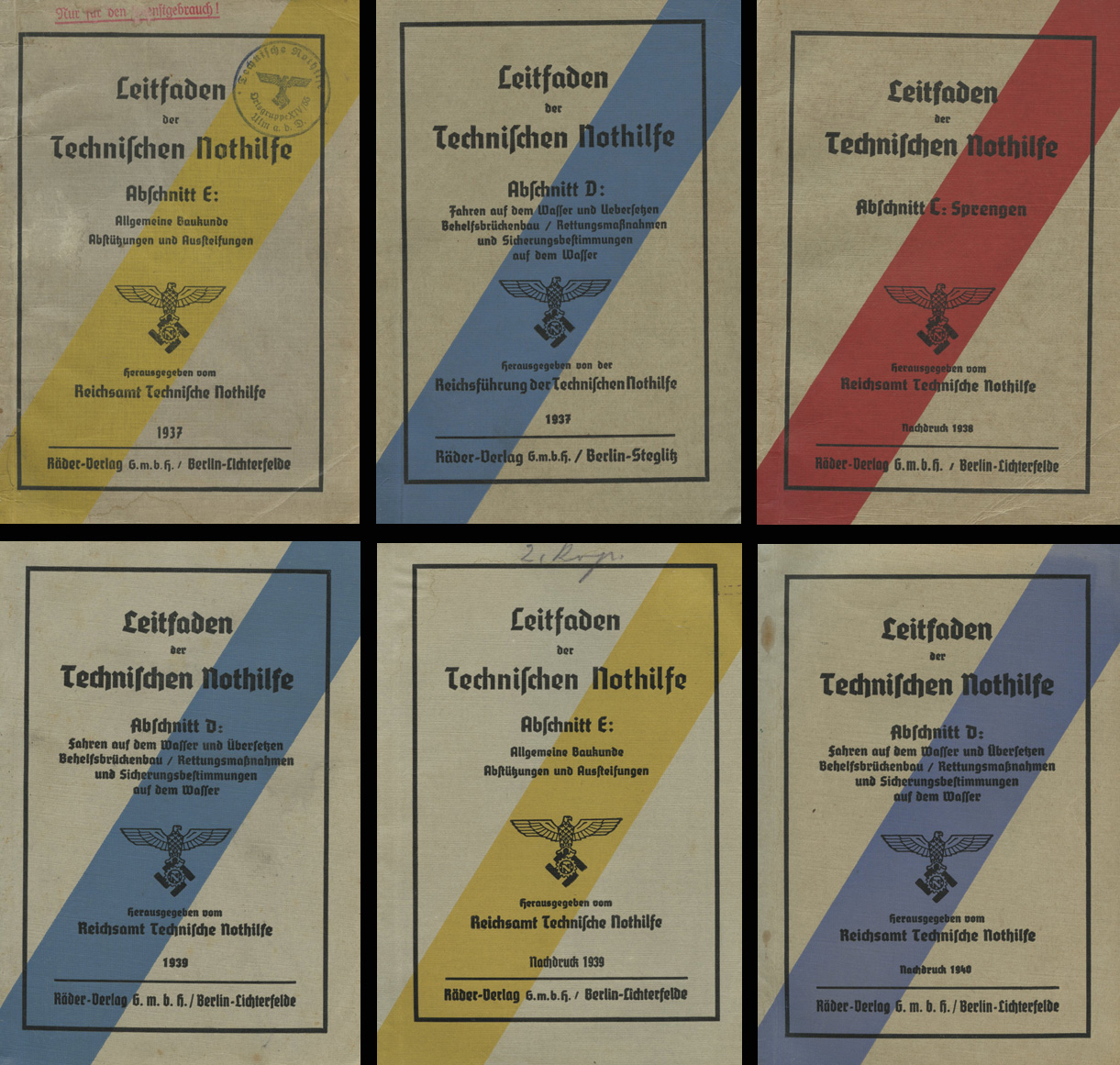 [Below: Here are two TeNo (Technische Nothilfe, or 'Technical Emergency Corps', a volunteer emergency response organization) books, one from 1937 (left) and the other from 1940. The 1937 book is entitled: