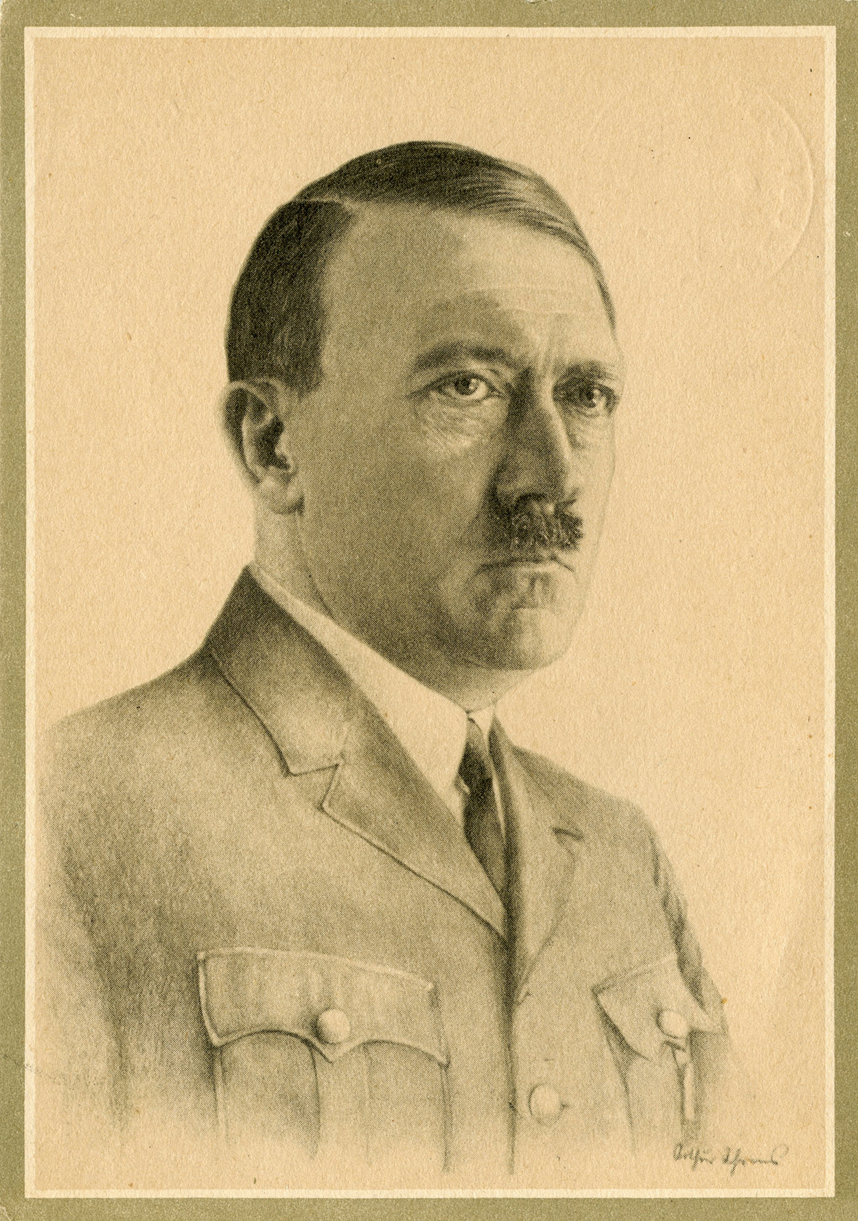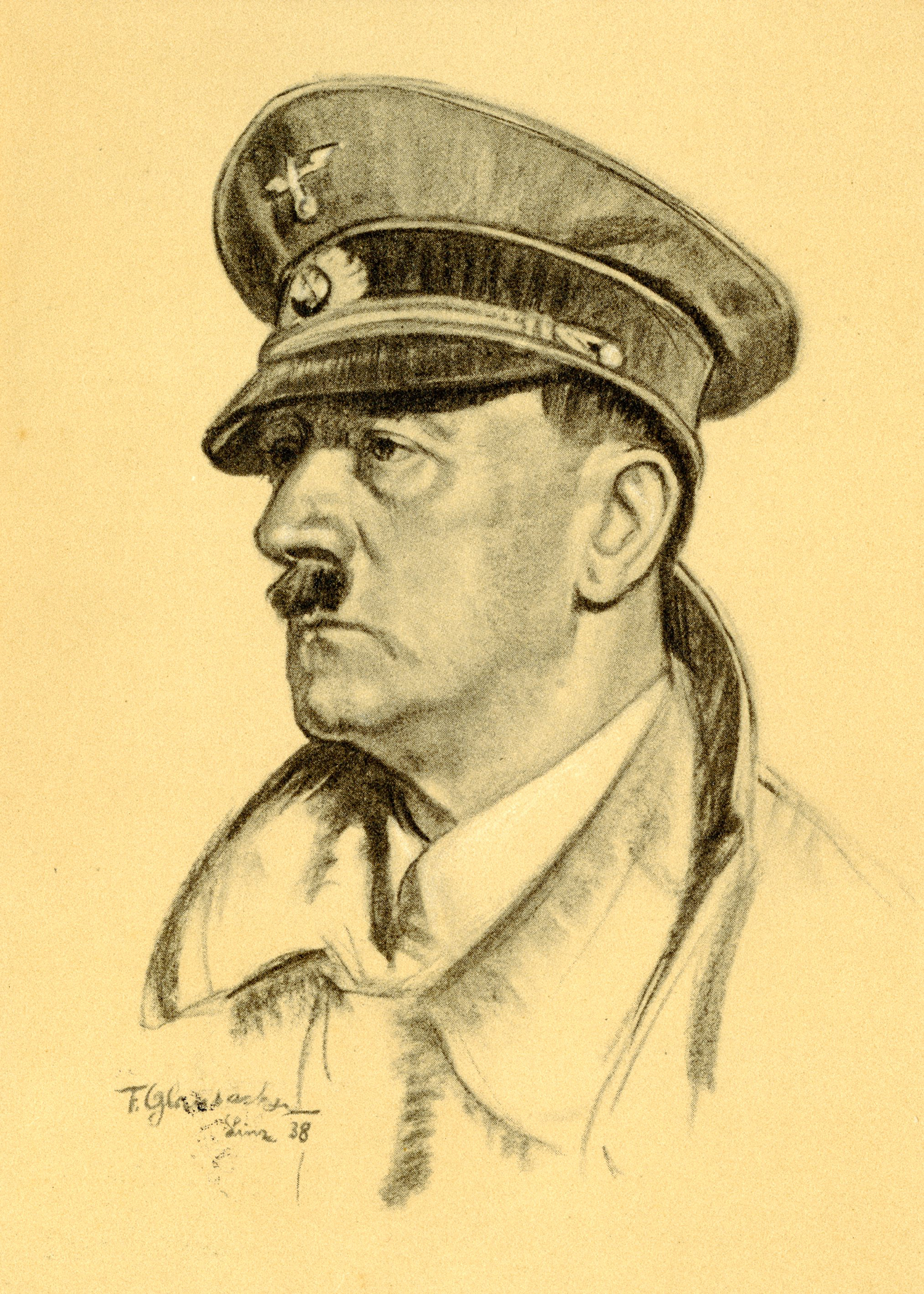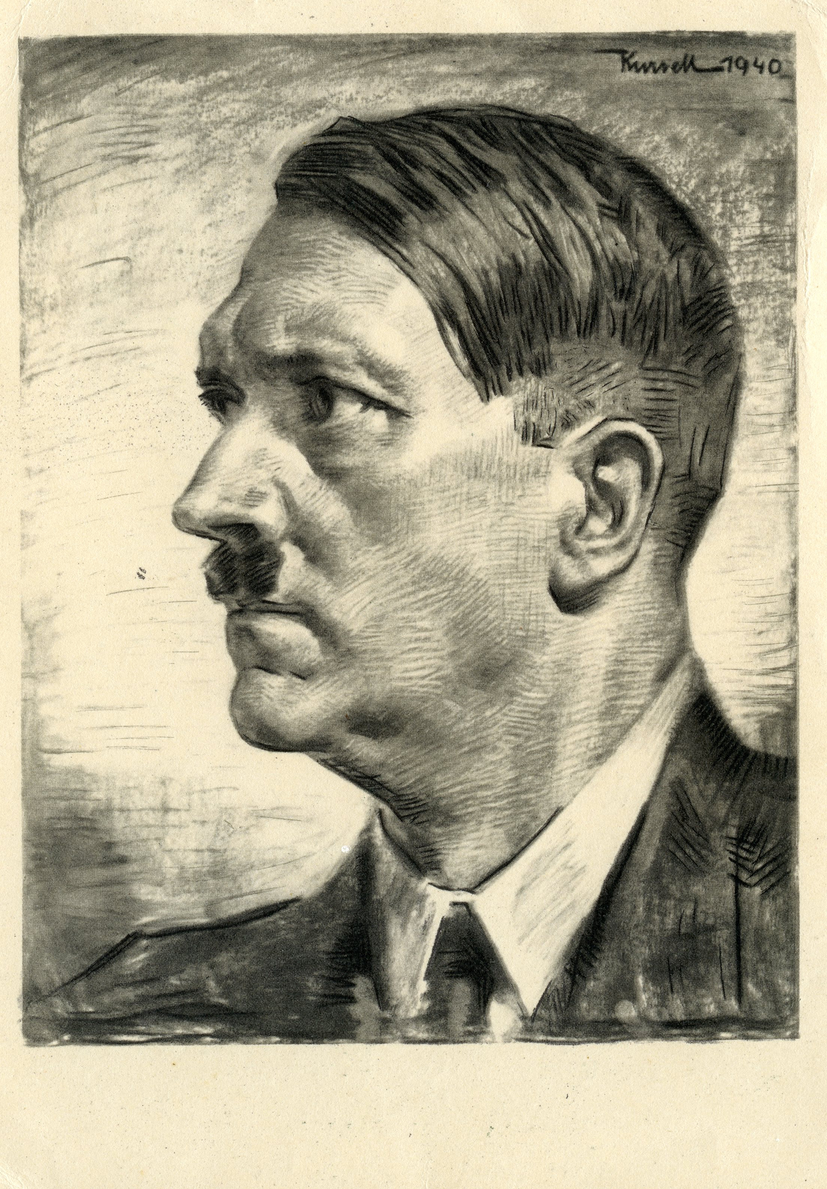 [Below: Front. One of the rarer Adolf Hitler drawings.]