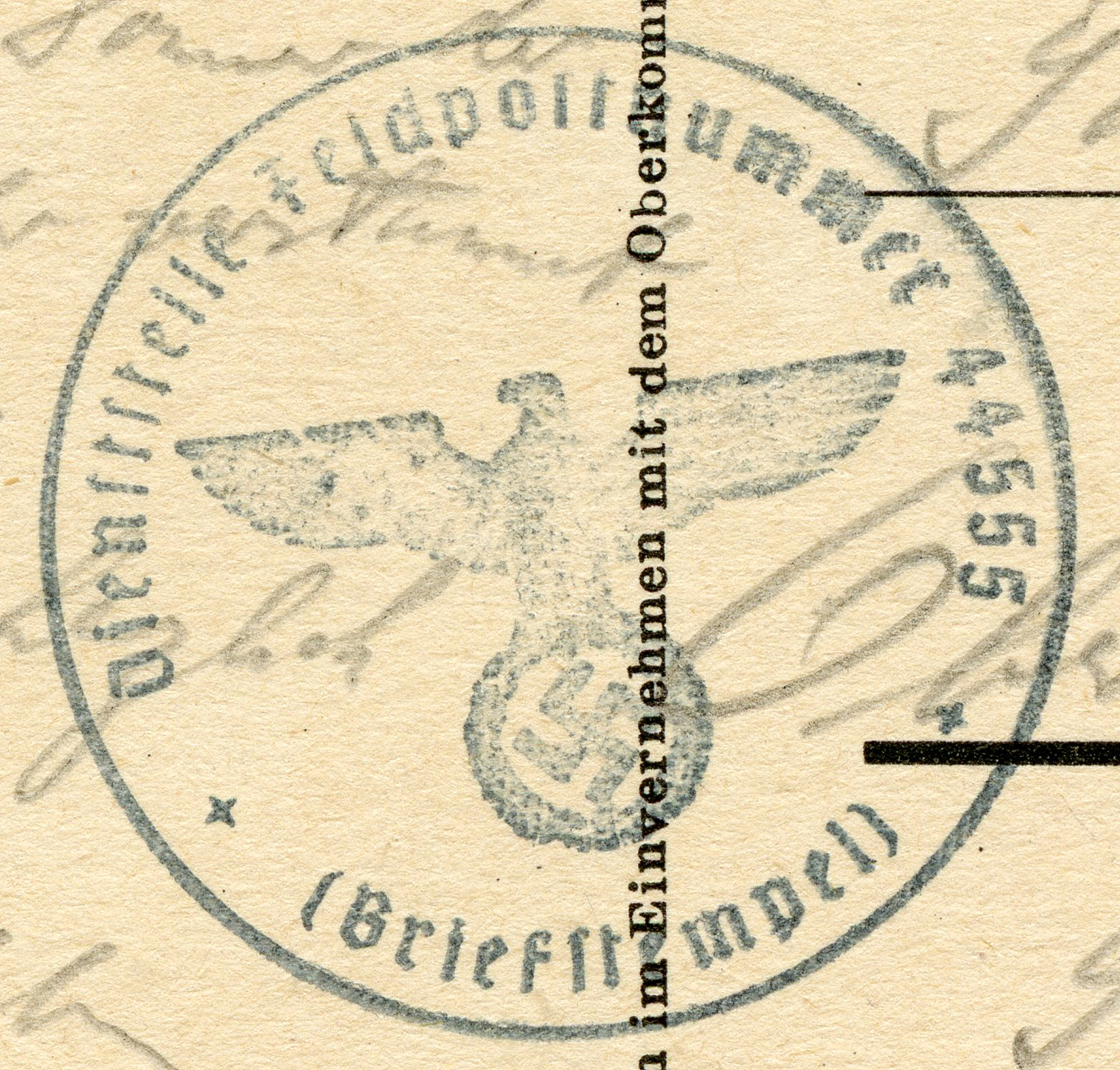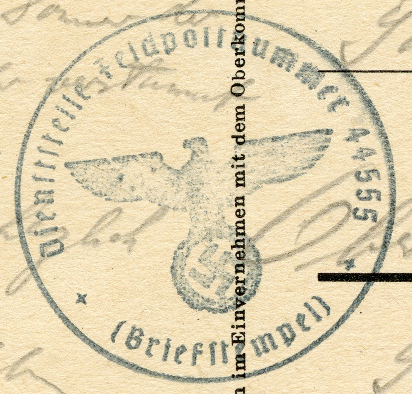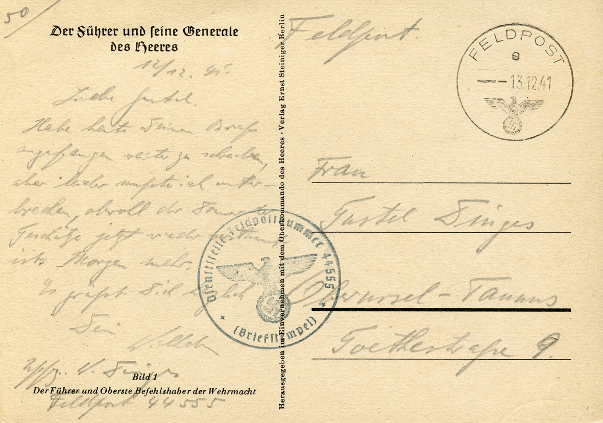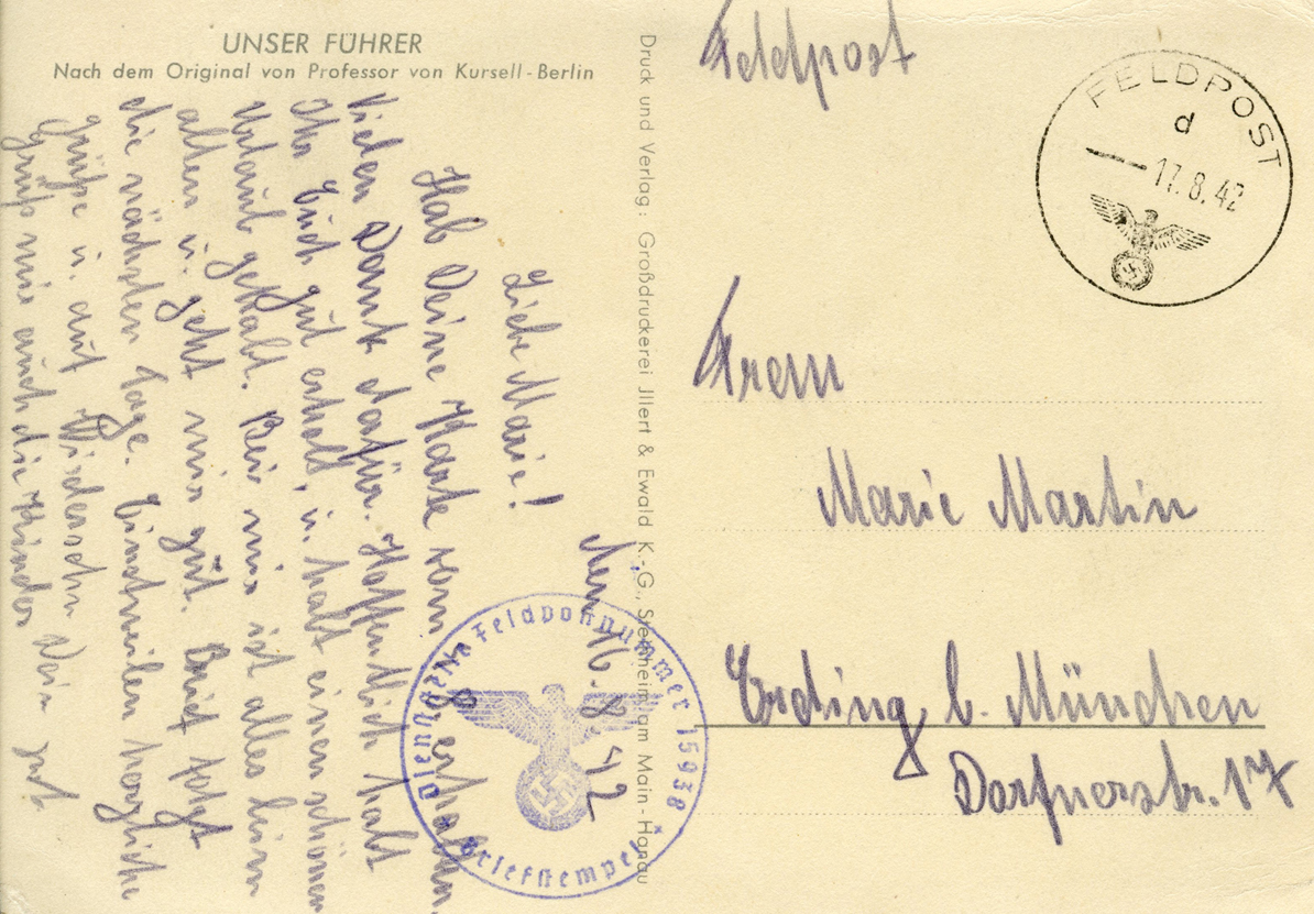 [Below: Postcard reverse. This was sent Feldpost on August 17, 1942.]
