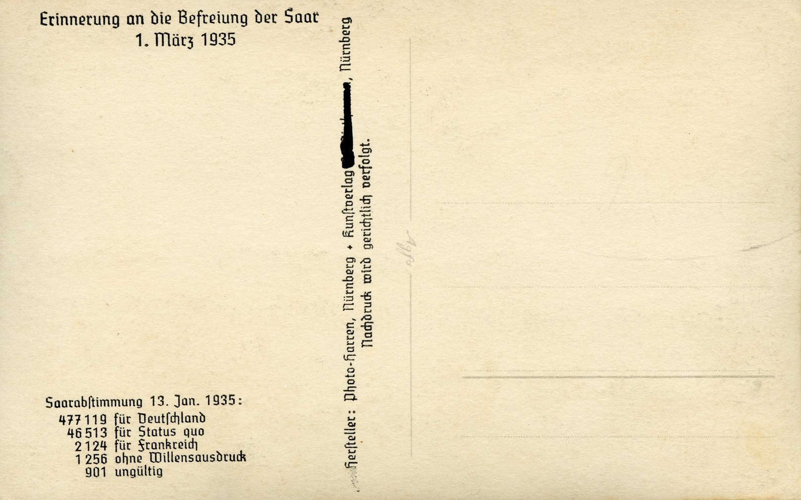 [Below: This is called 'Erinnerung an die Befreiung der Saar' (Commemoration of the liberation of the Saar).]