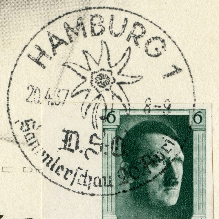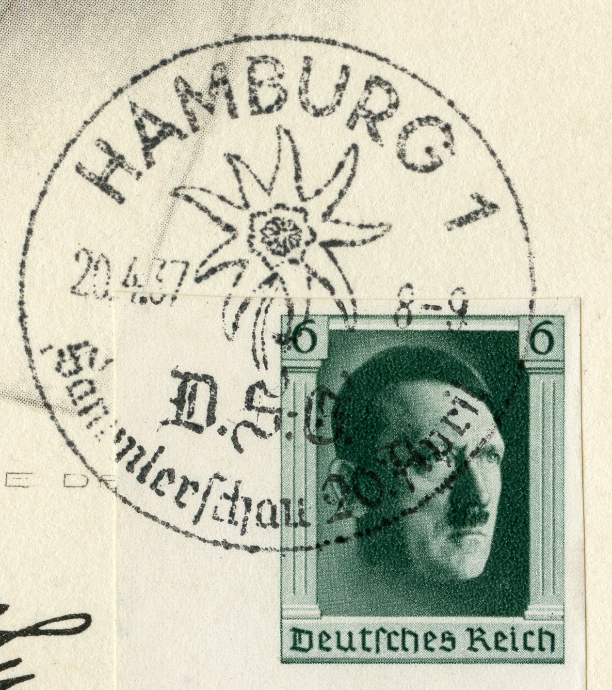 [Below: Reverse. This cancel is in honor of Adolf Hitler's 53rd birthday.]