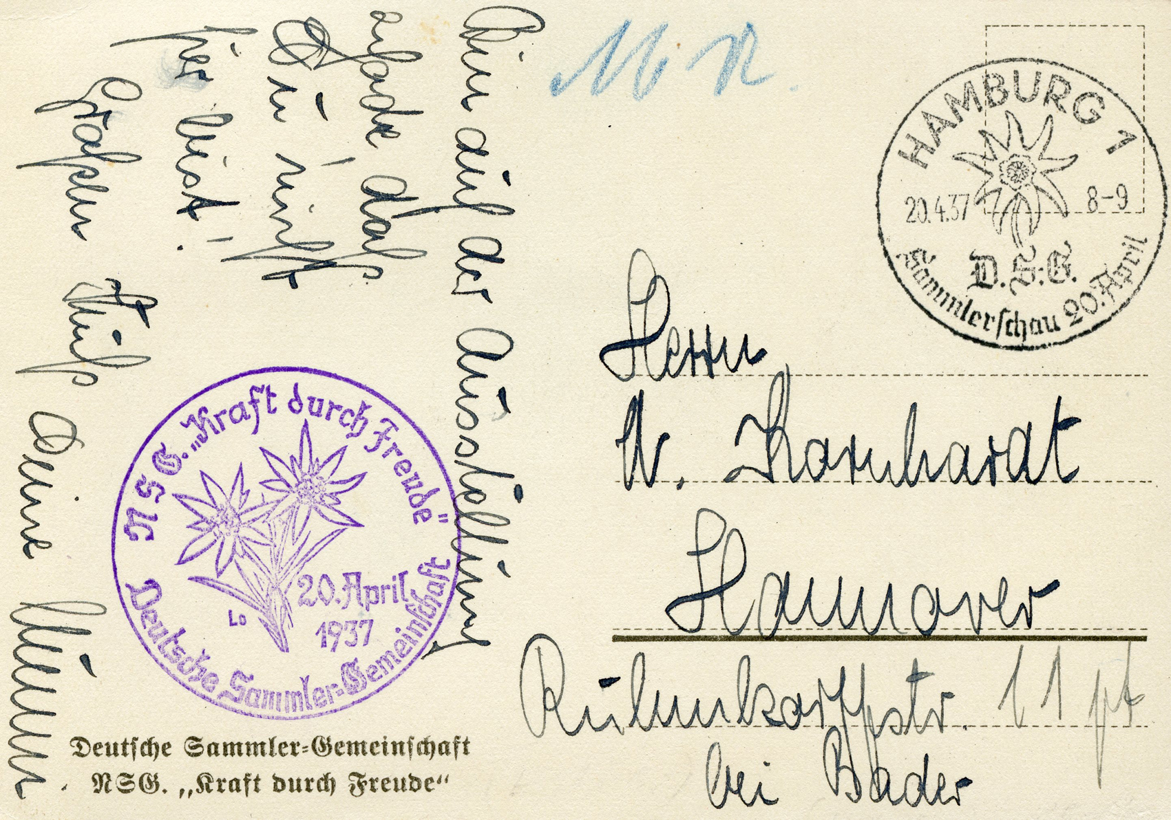 [Below: This says 'Deutsche Sammler-Gemeinschaft - NSG "Kraft durch Freude"' (German Collectors' Association - NSG "Strength through Joy").]