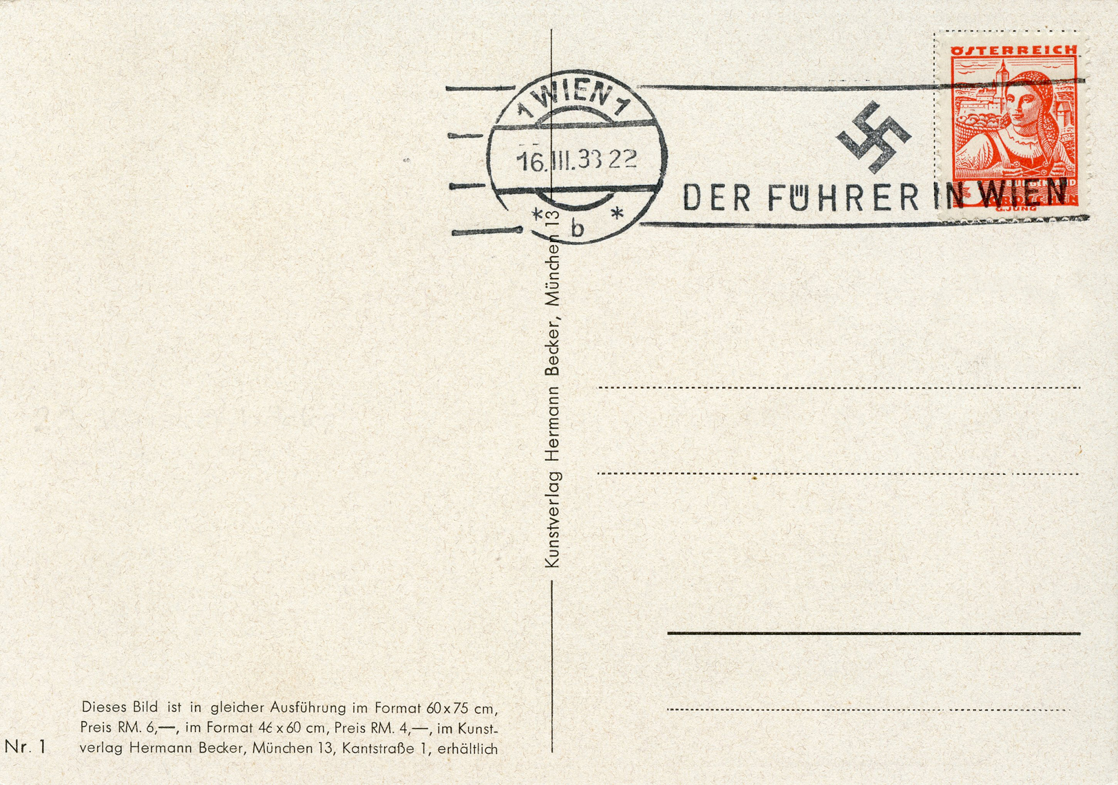 [Below: Reverse. This shows a 1938 Anschluss cancel from Vienna.]