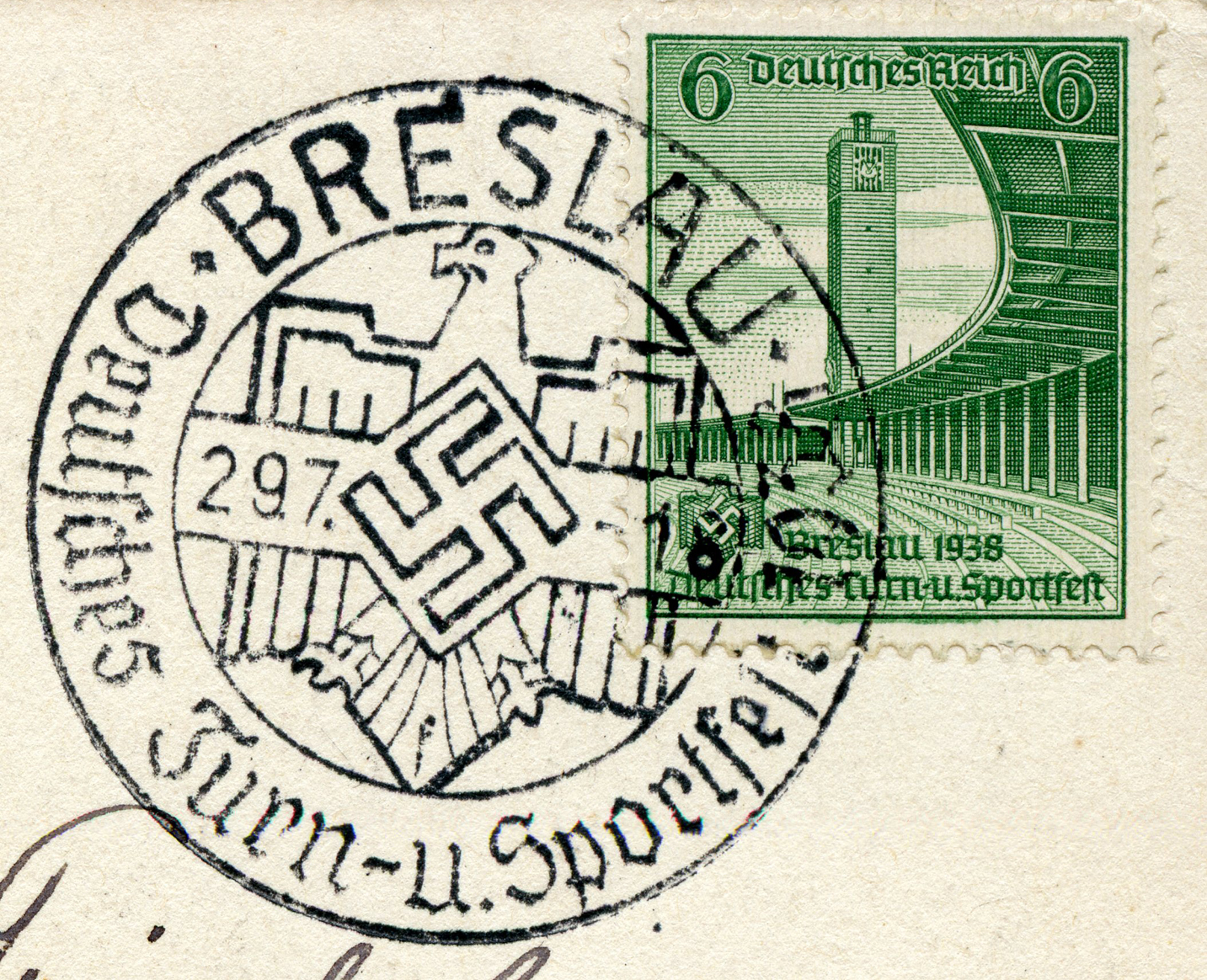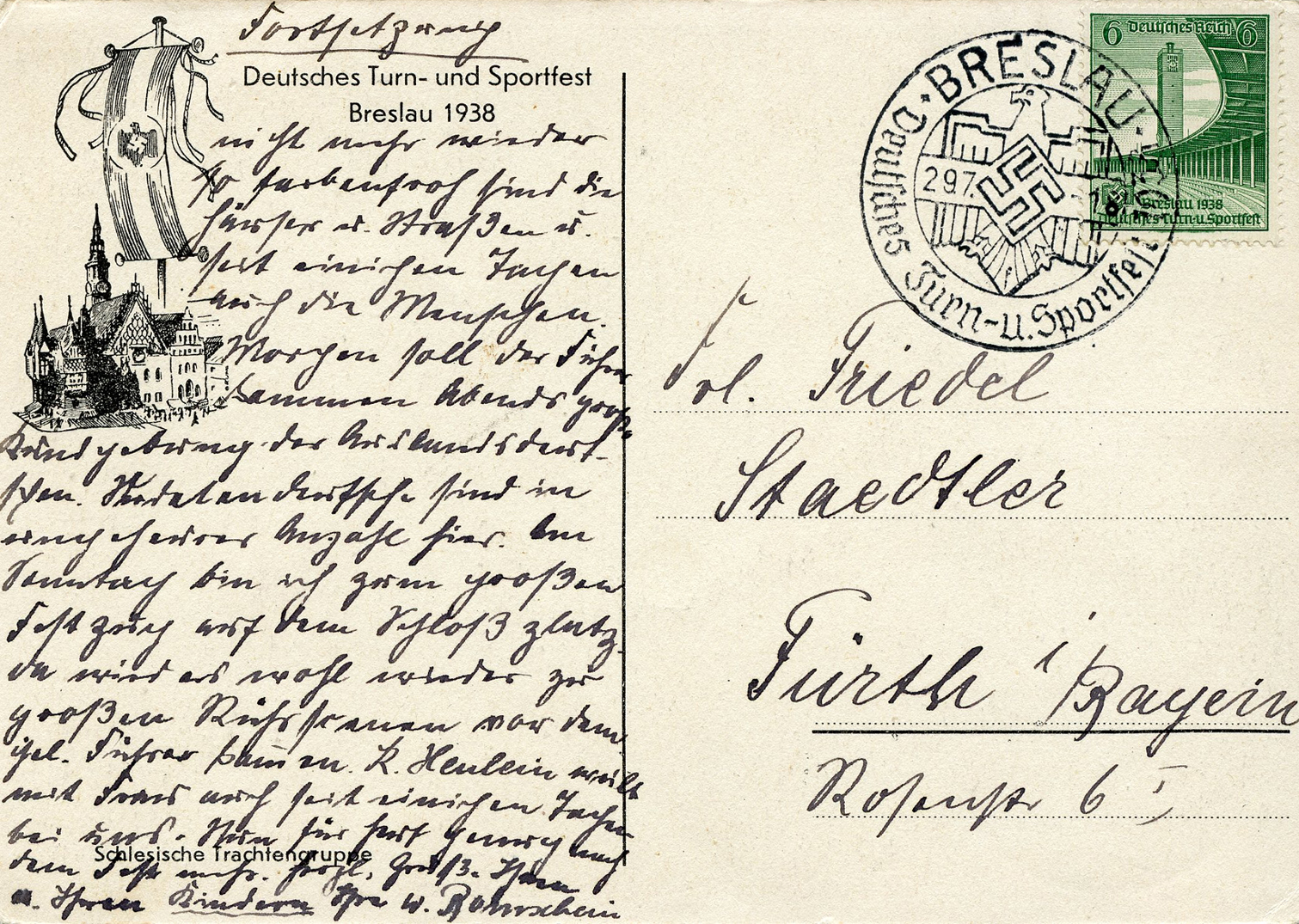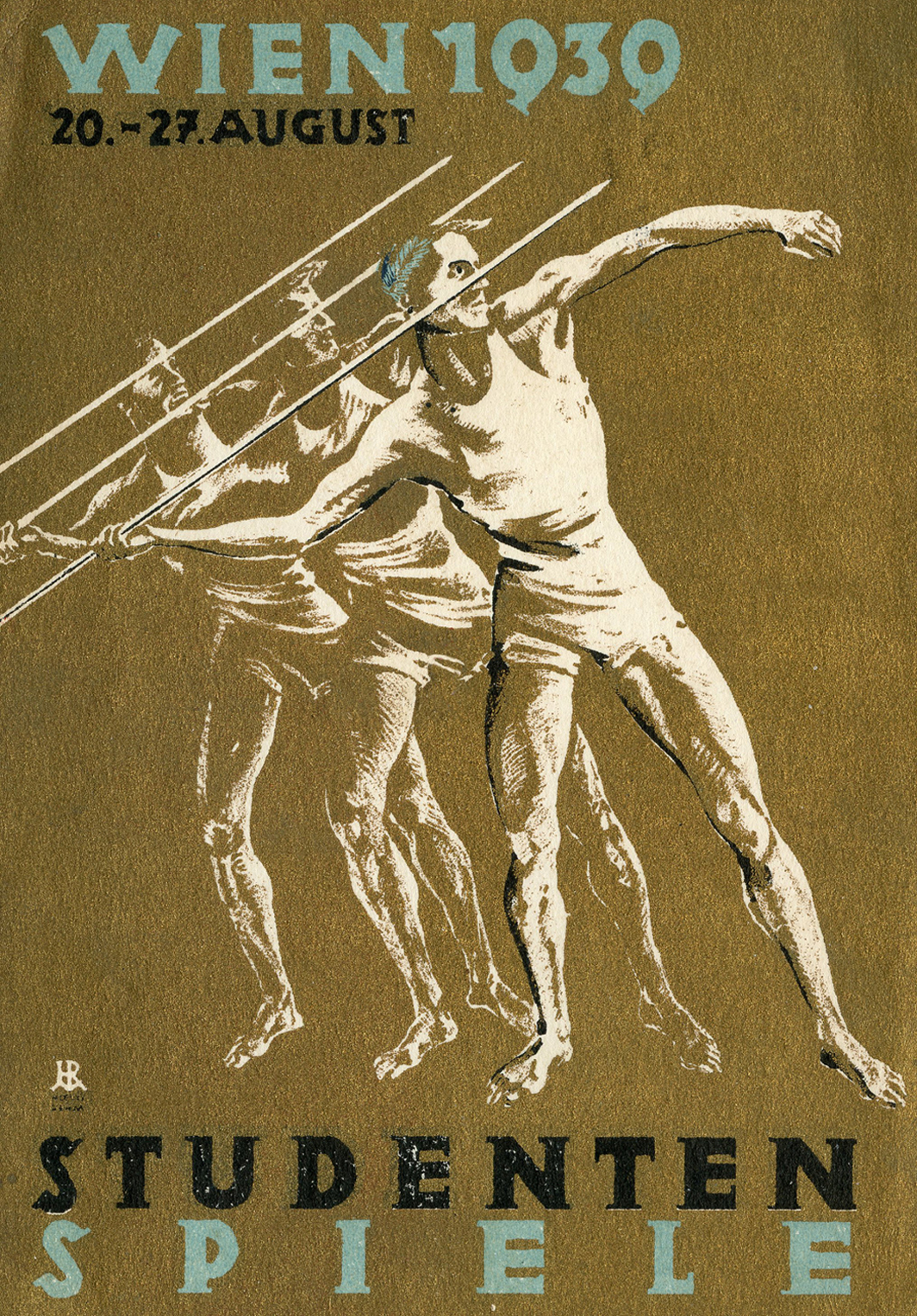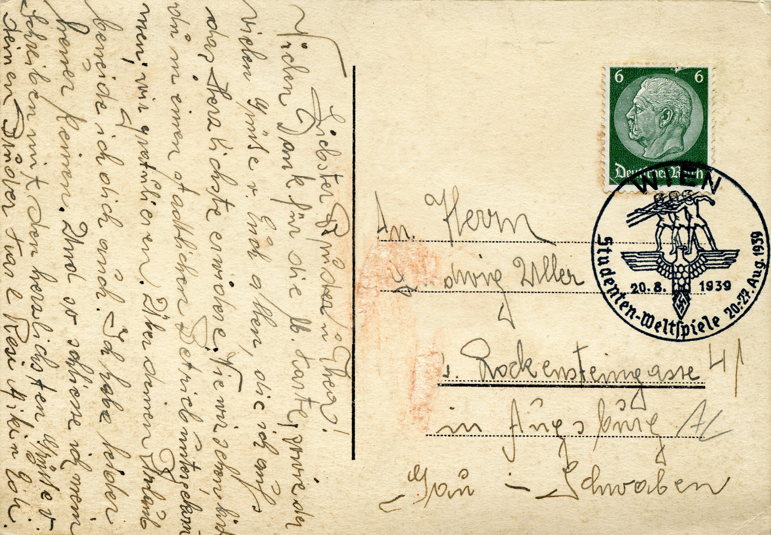 [Below: This is a very rare postcard. It says: 'Wien 1939 - 20.-27. August - Studenten Spiele' (Vienna 1939 - August 20-27 - Student Games).]