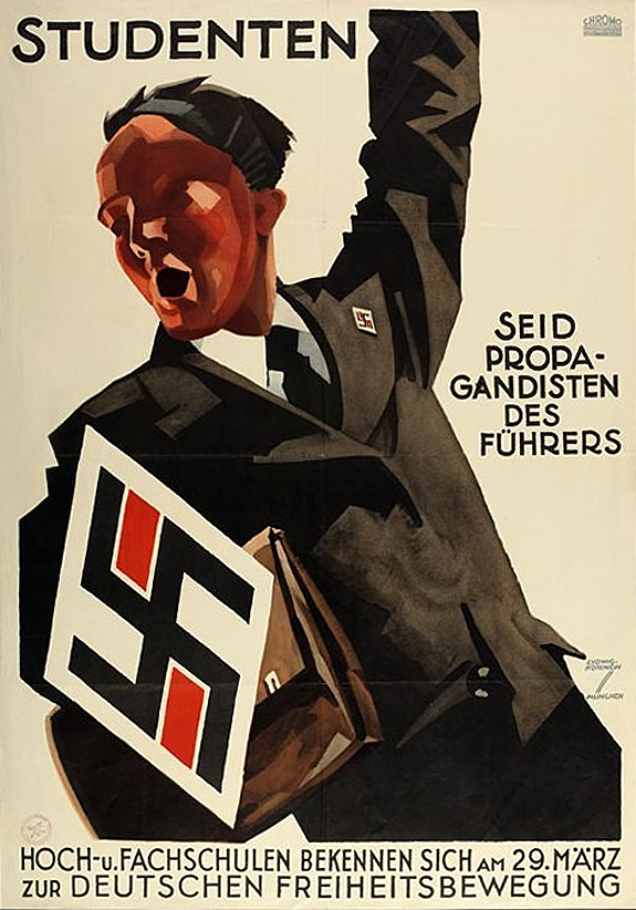 [Below: National Socialist German Students' League poster. It says: 'Seid Propagandisten des Führers' (Be Propagandists of the Führer).]