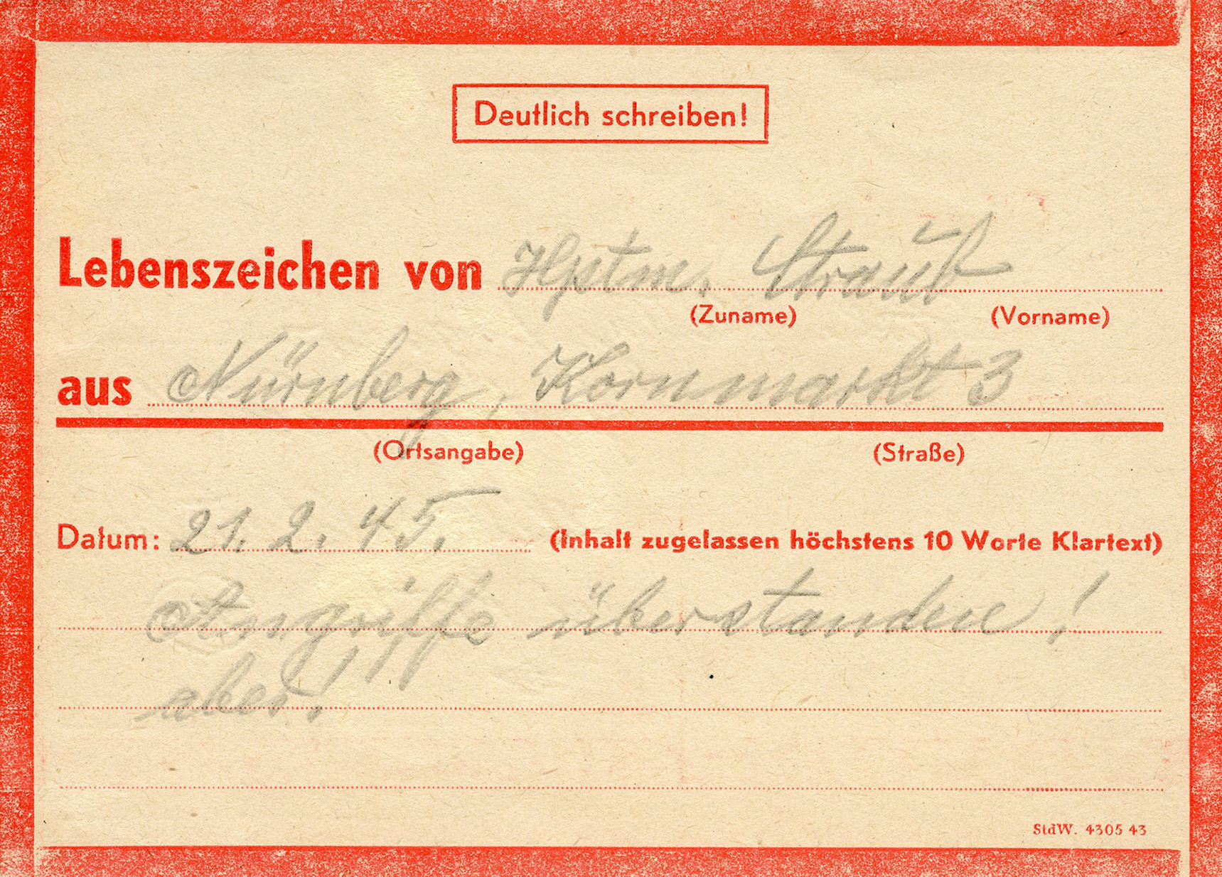 [Below: A rare set of postcards for the final days of the Third Reich. These were released for both soldiers and civilians for the purpose of telling others you are still alive, and inquiring about house addresses. Basically these were for bombed out areas. They are rarely encountered, so for whatever reason not many were saved. Let's look at the first card, it says: