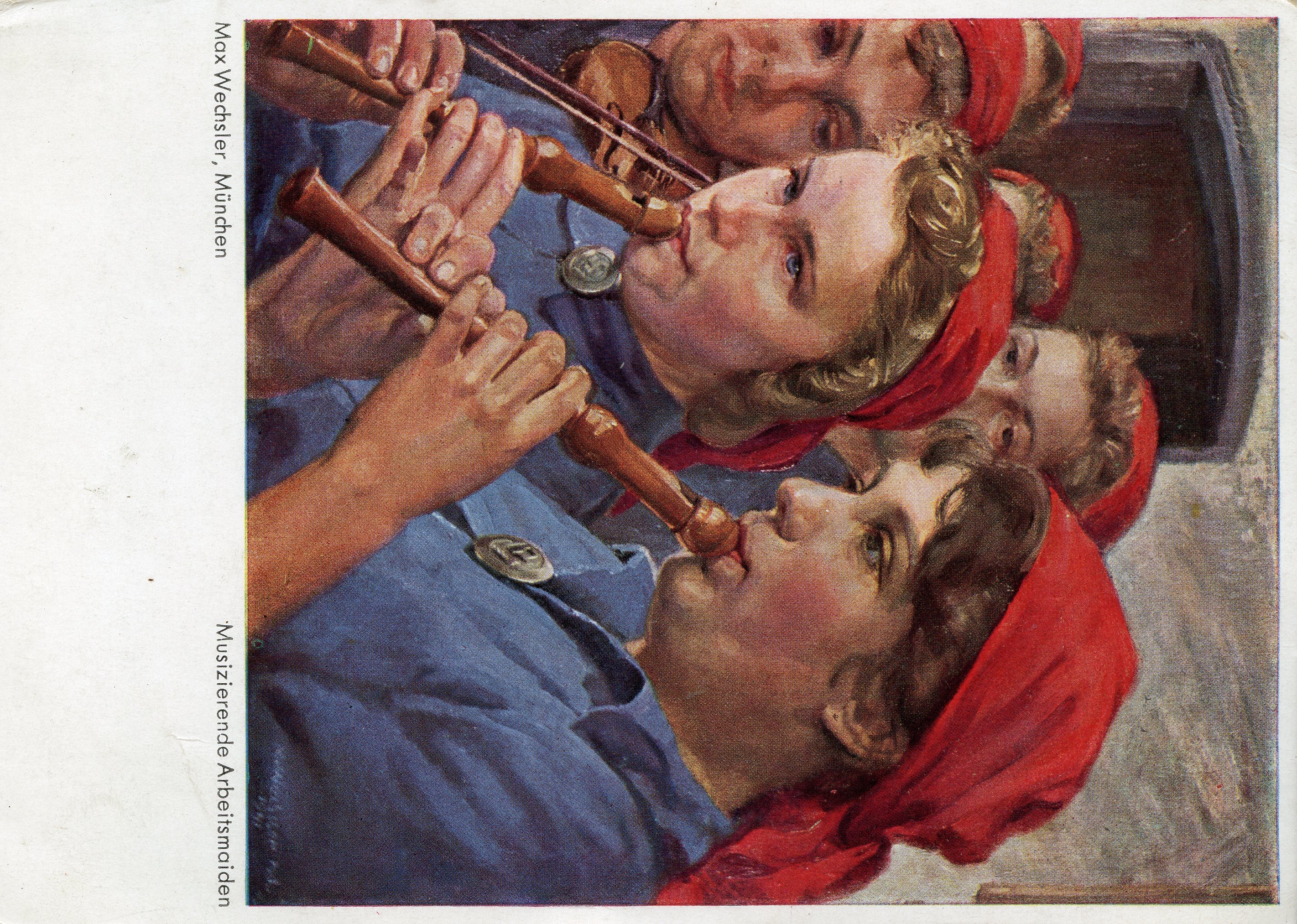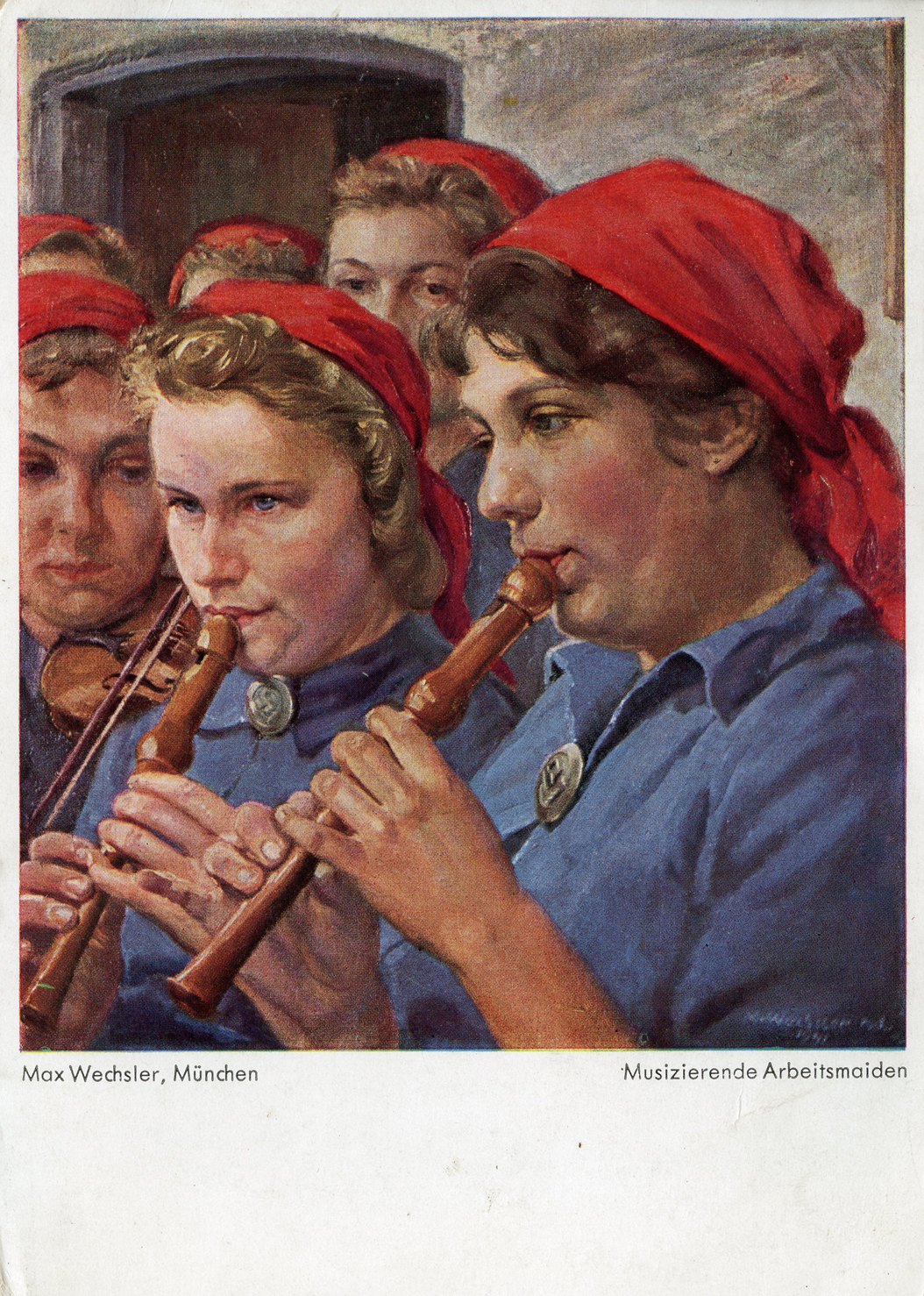 [Below: This is a neat painting called 'Musizierende Arbeitsmaiden' (Musical Work Maidens), by Max Josef Wechsler from Munich. He died at the end of the war in 1945.]