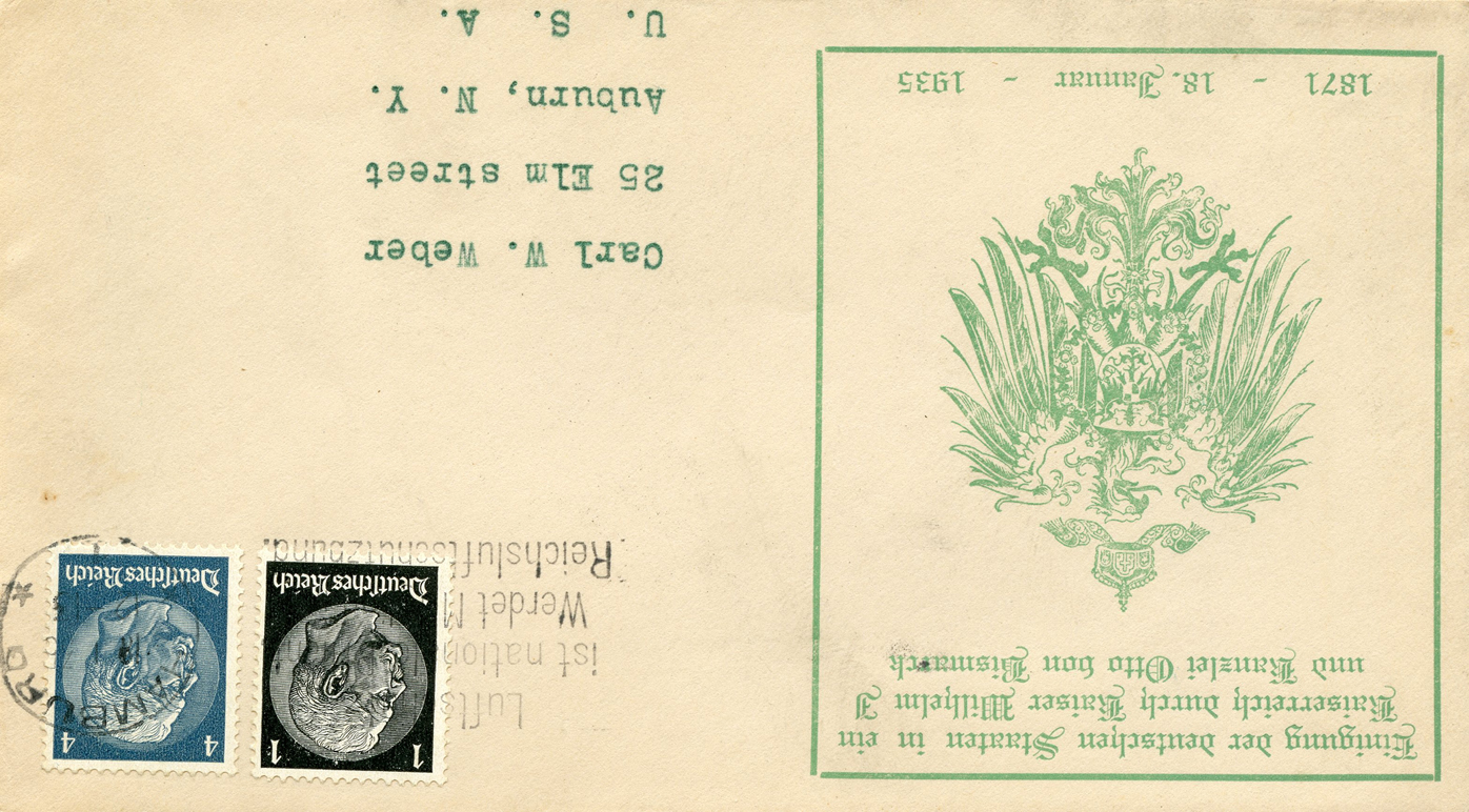 This was sent to New York from Hamburg on January 18, 1936 (this was sent on the 65th anniversary).]