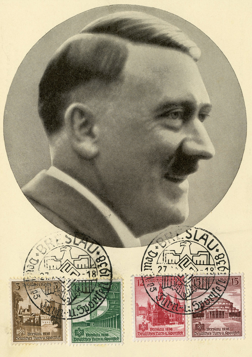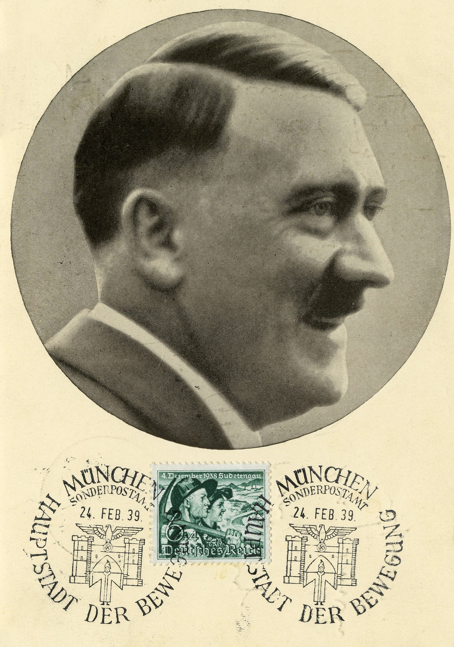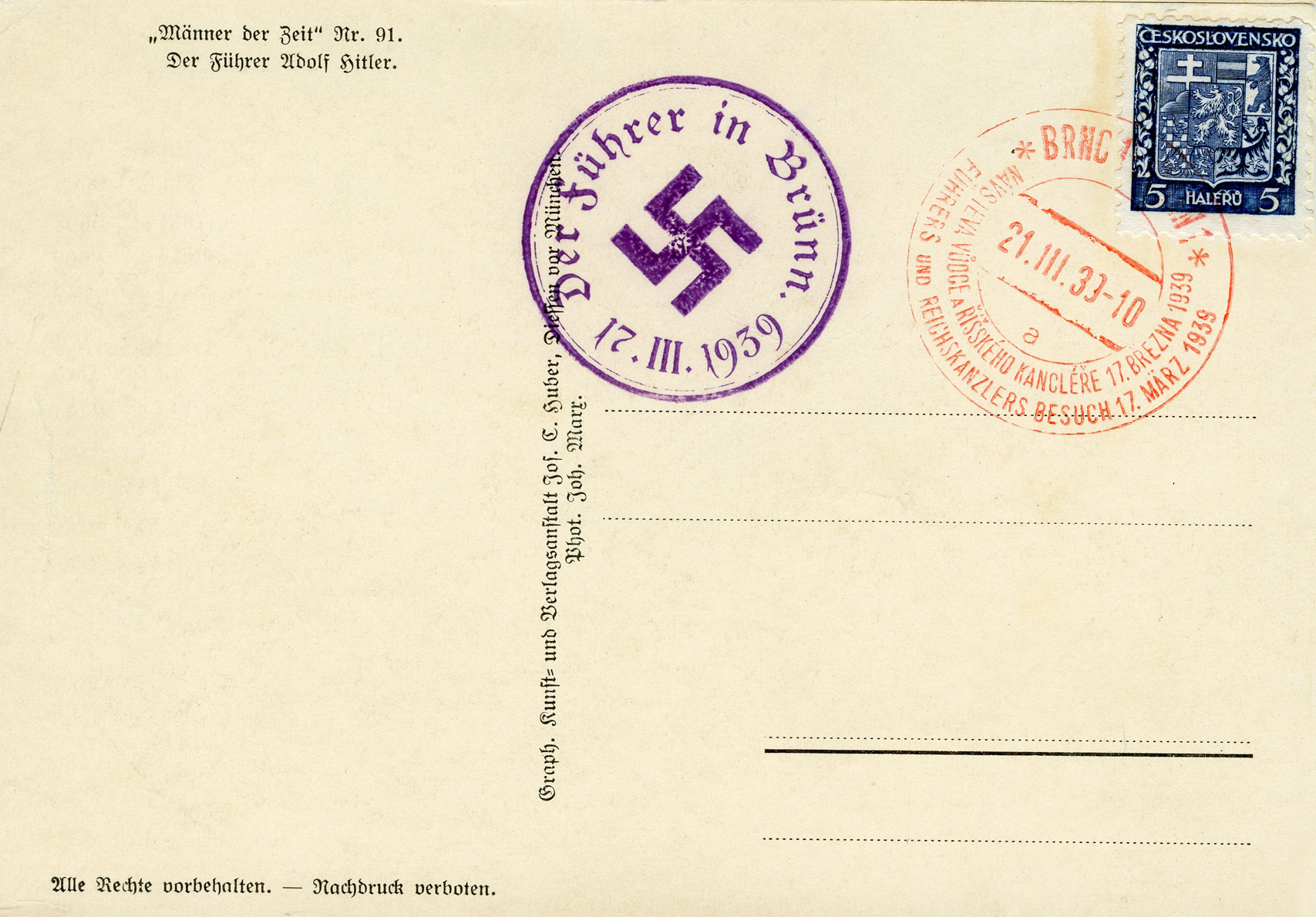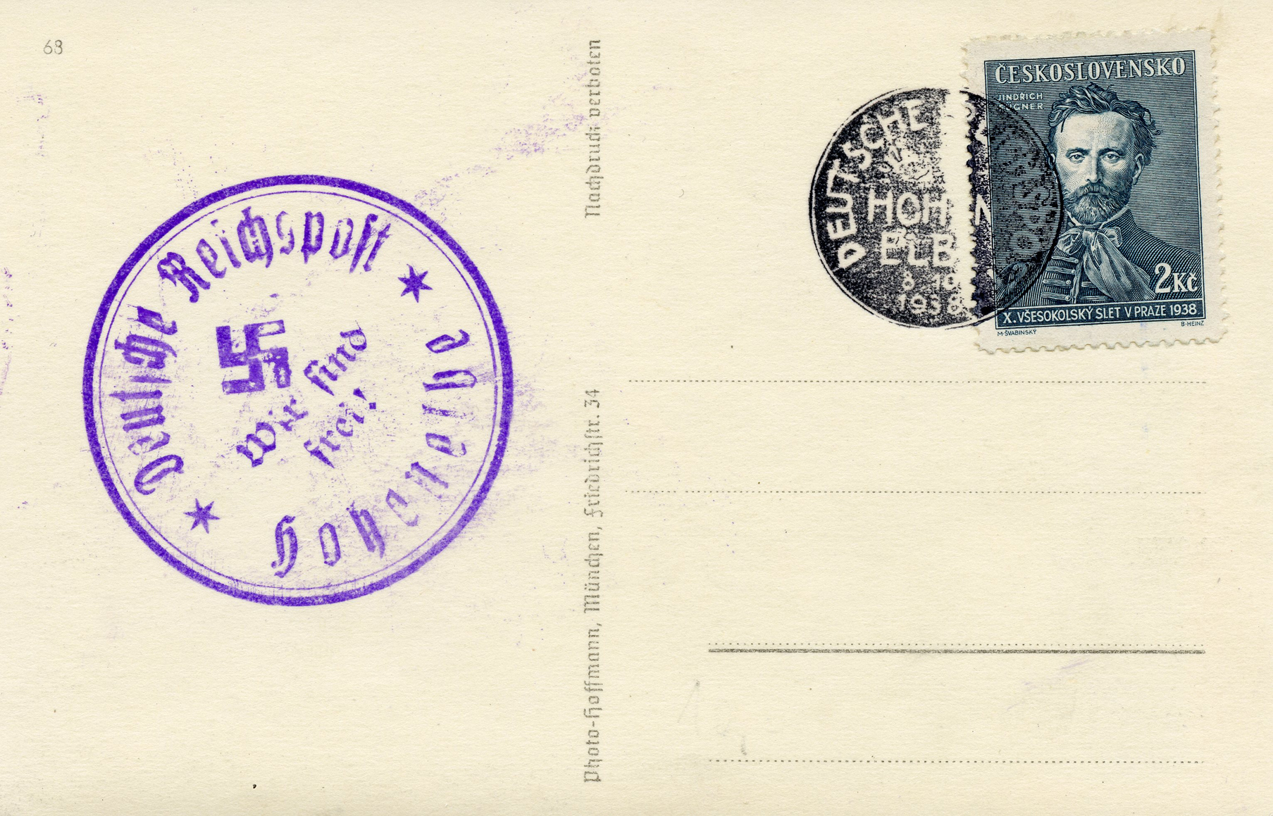 [Below: This next postcard was canceled in the Sudetenland.]