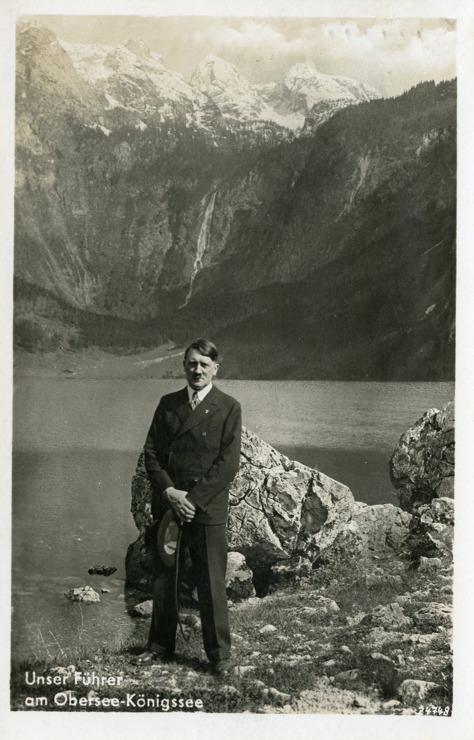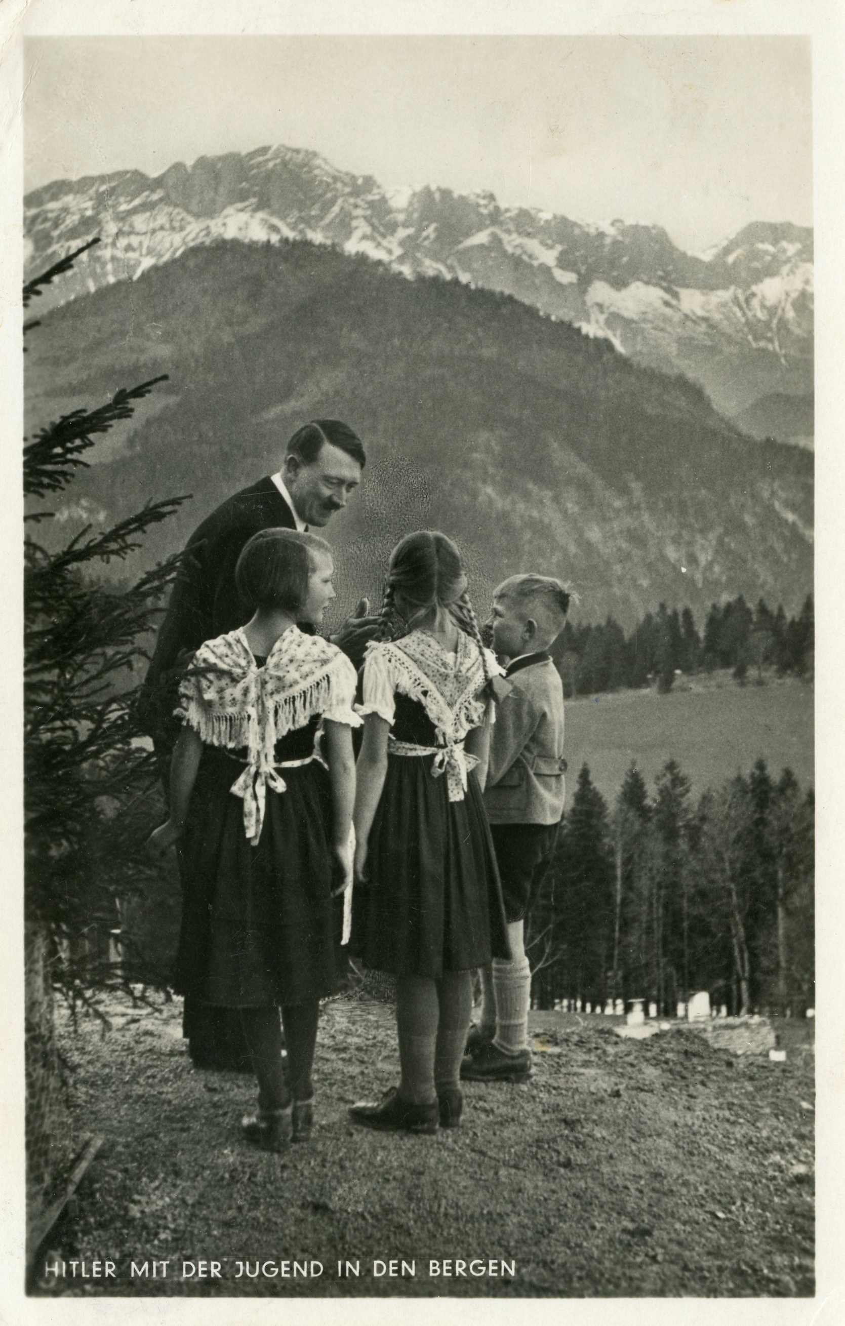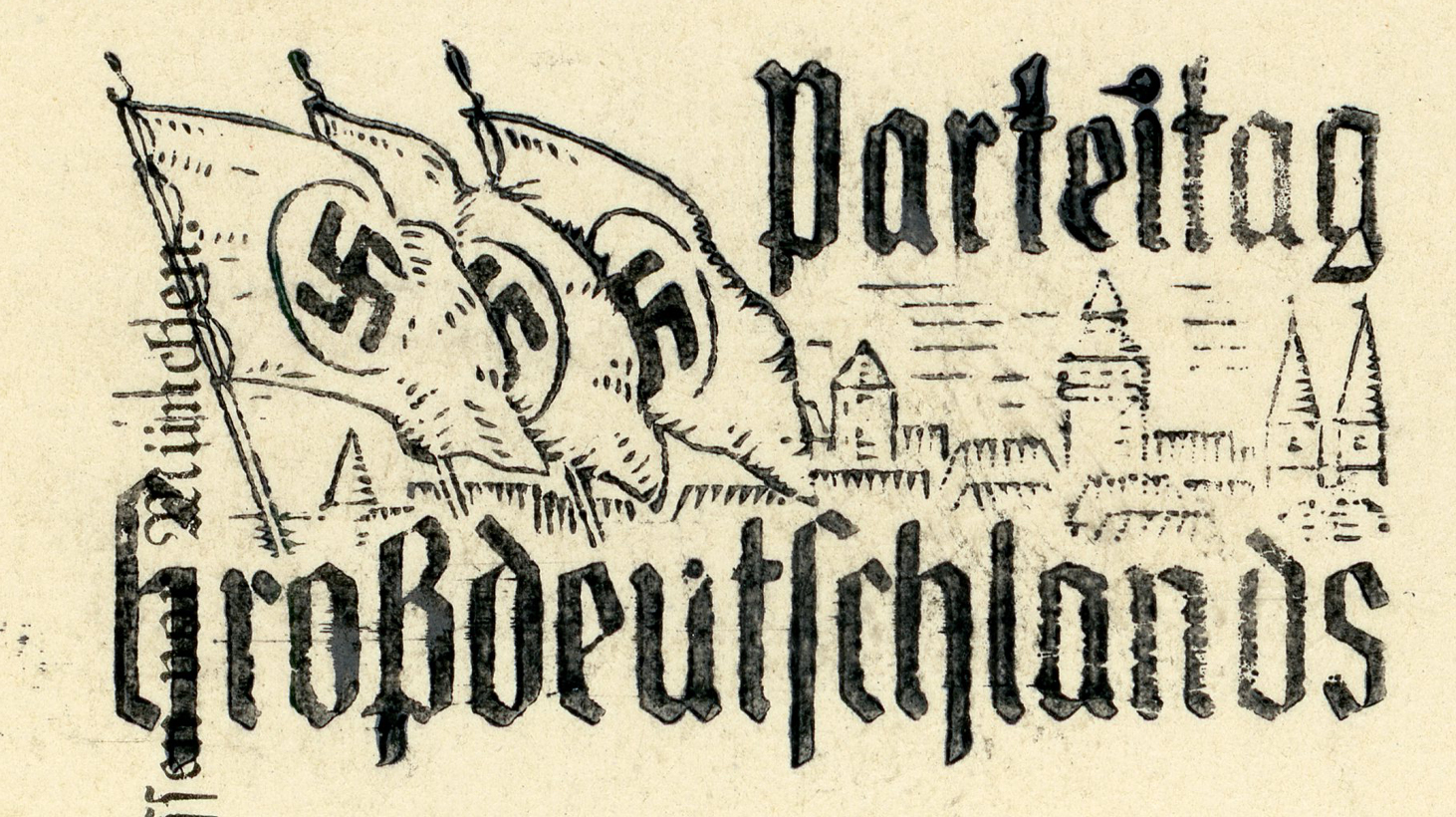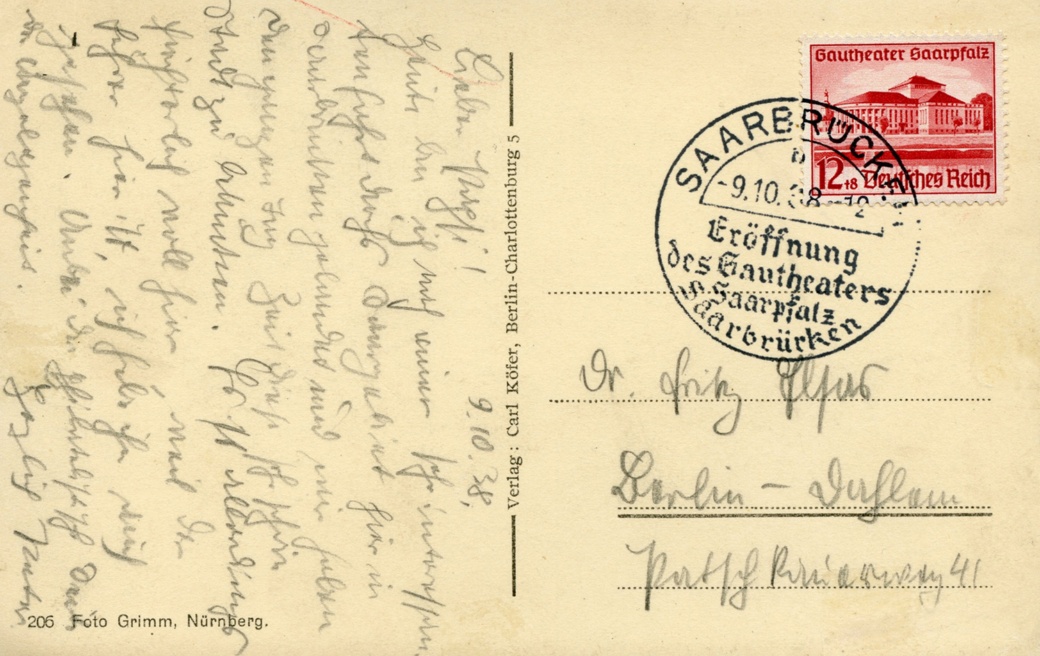 [Below: A pretty common postcard from around 1938... until you see the other side and the cancel.]
