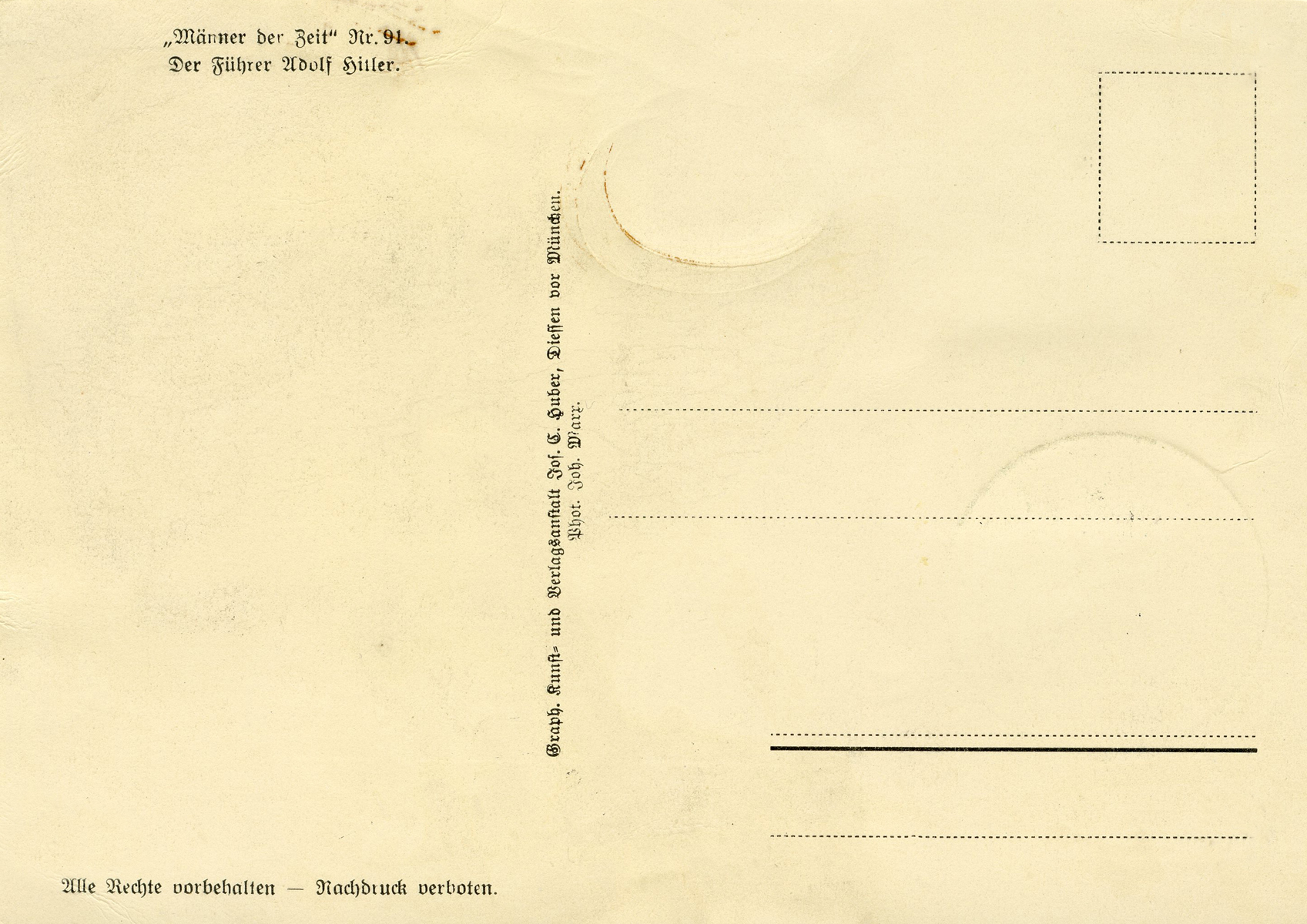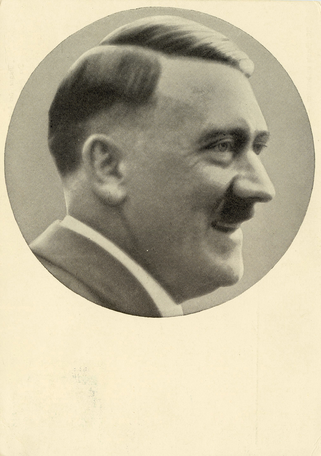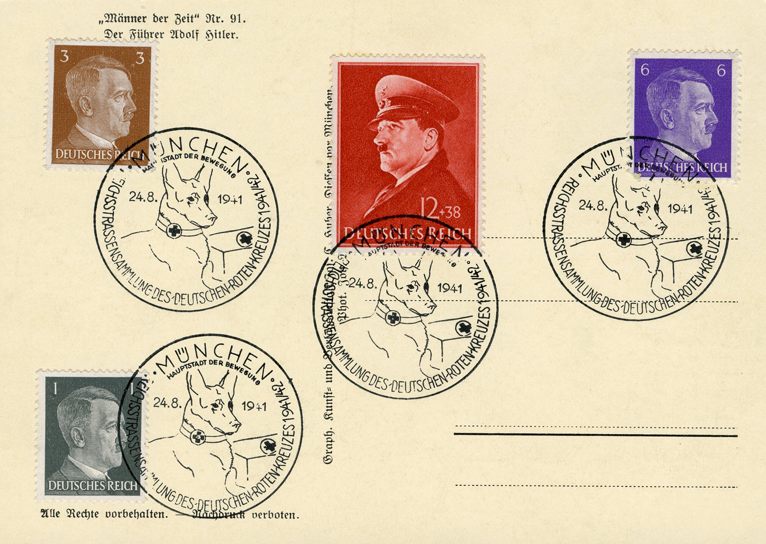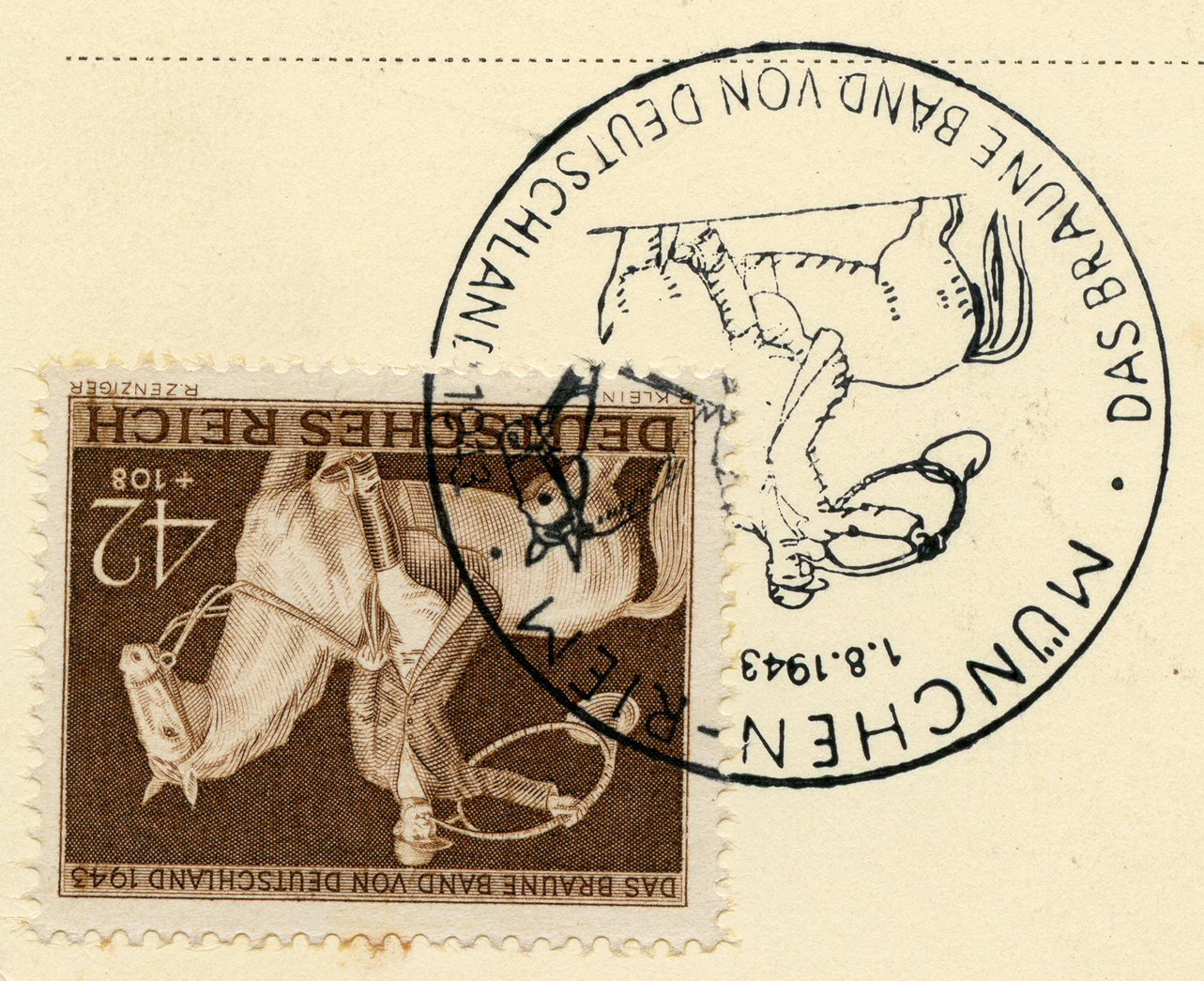 [Below: Reverse. This sieg rune cancel says 'Mit dem Führer zum Sieg' (With the Führer to Victory), from April 20, 1942.]