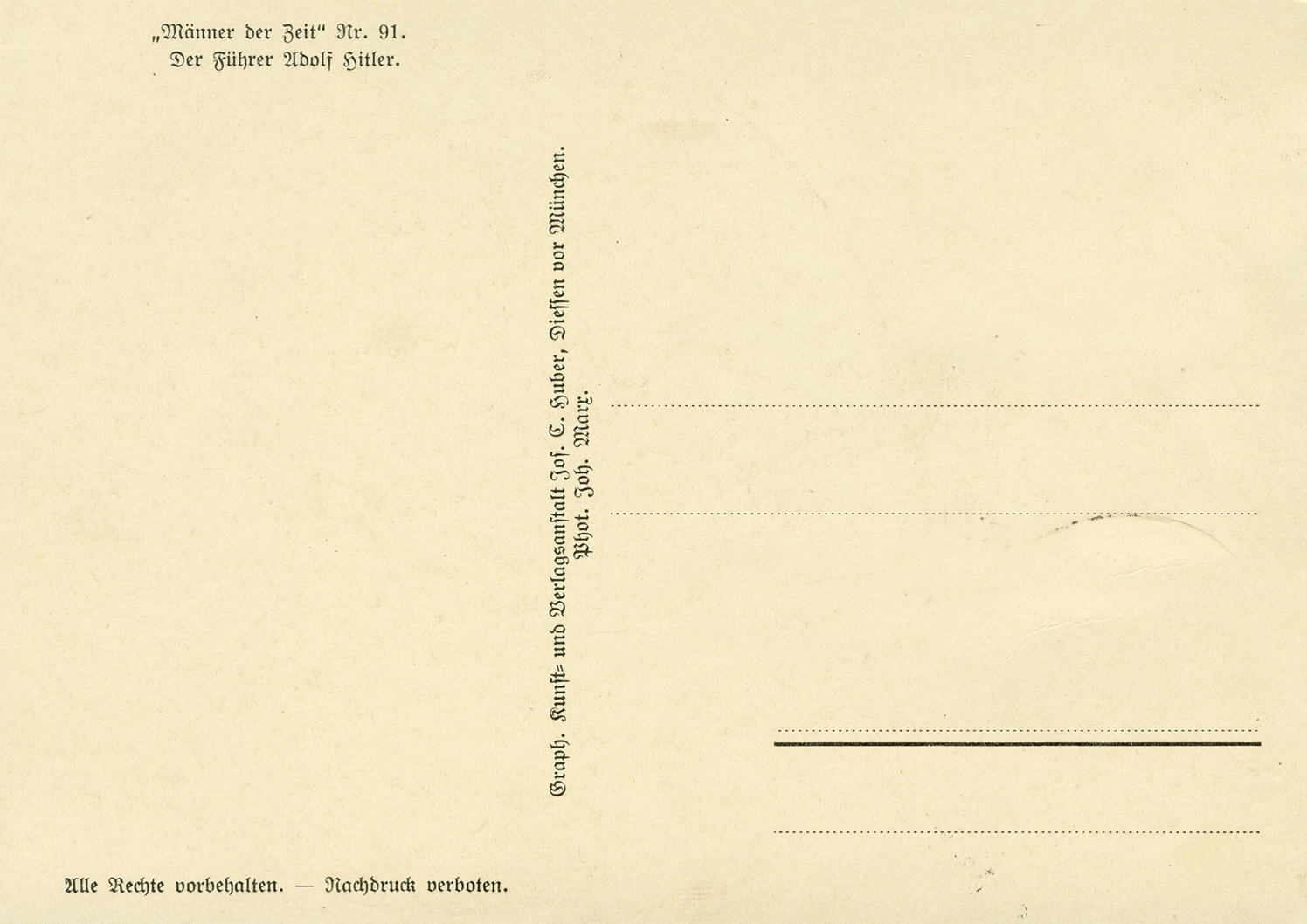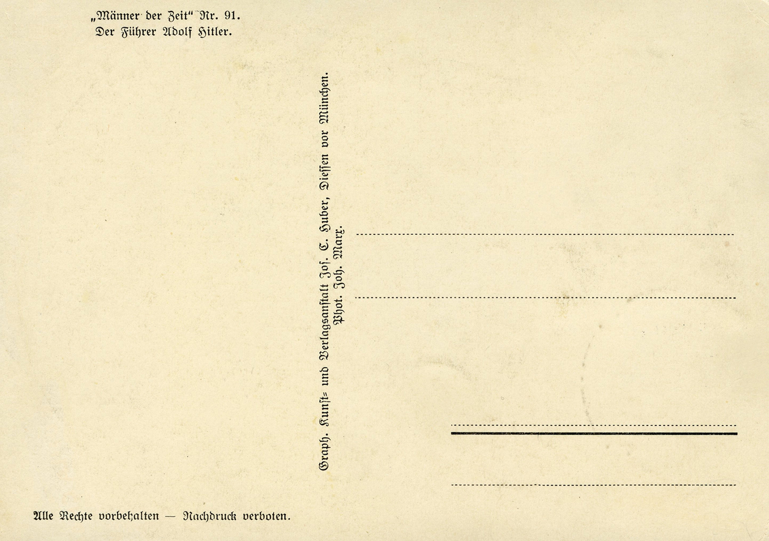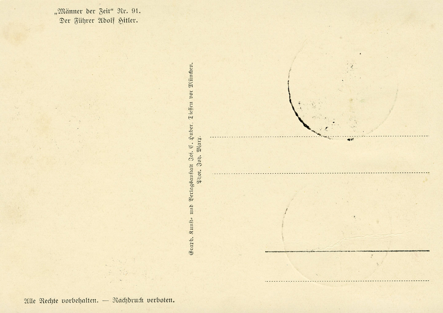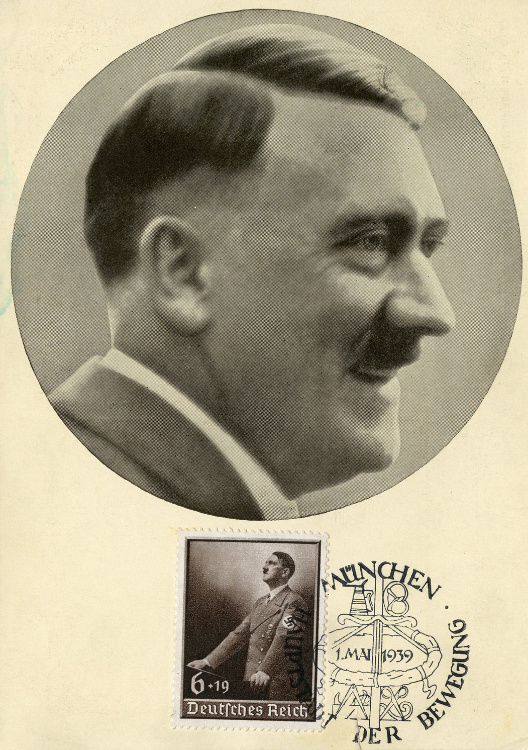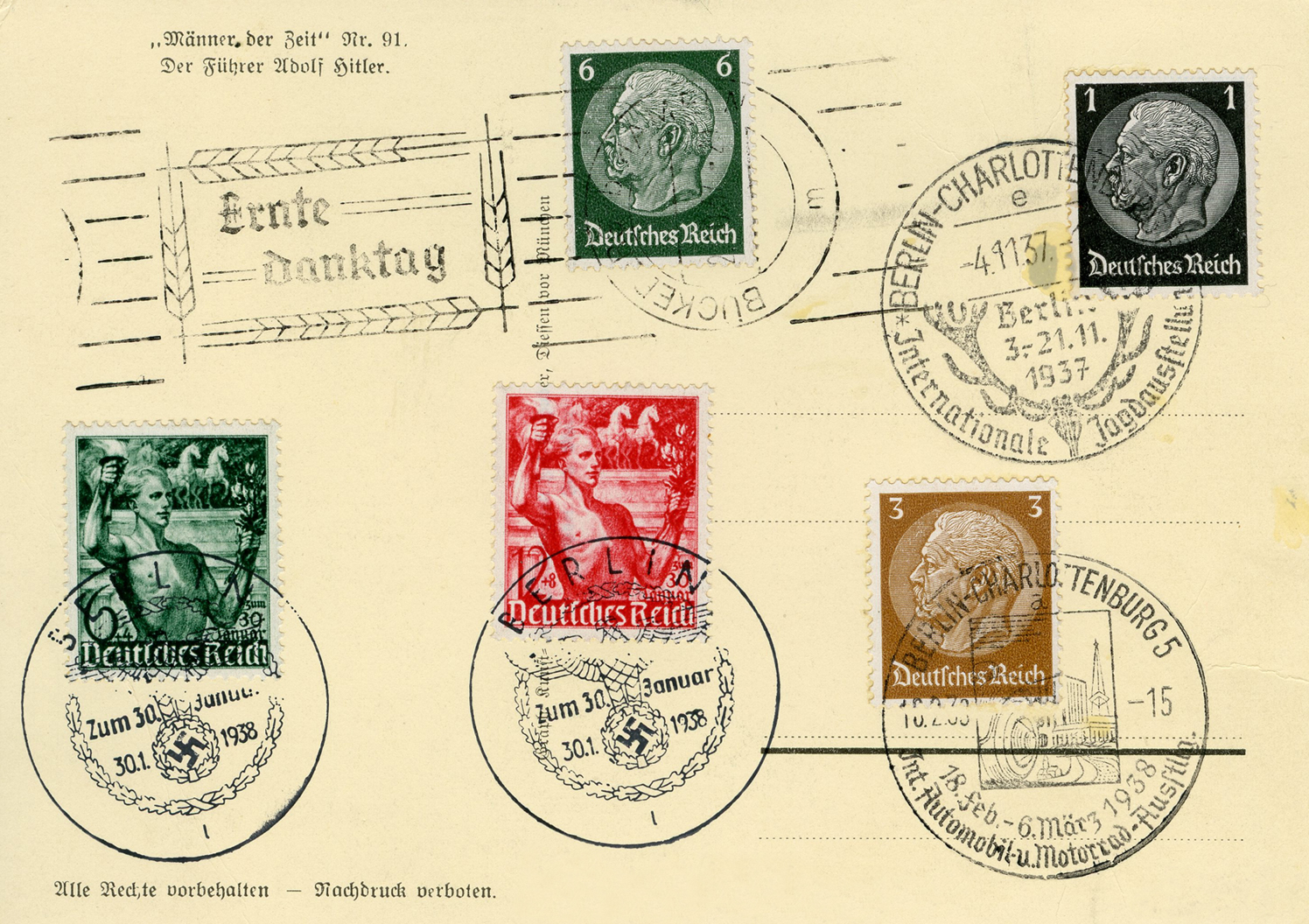 [Below: Reverse. This sieg rune cancel says 'Mit dem Führer zum Sieg' (With the Führer to Victory), from April 20, 1942.]