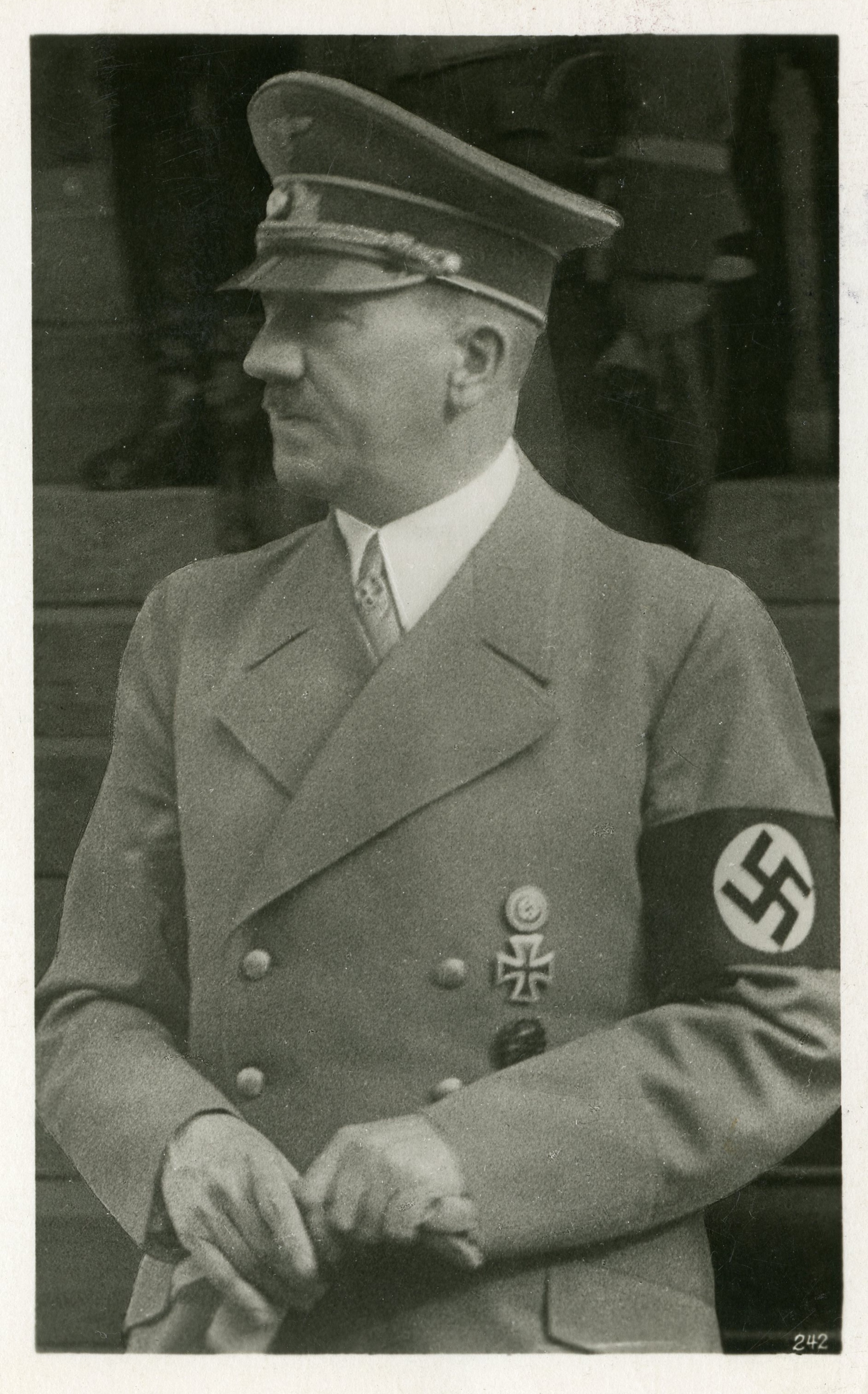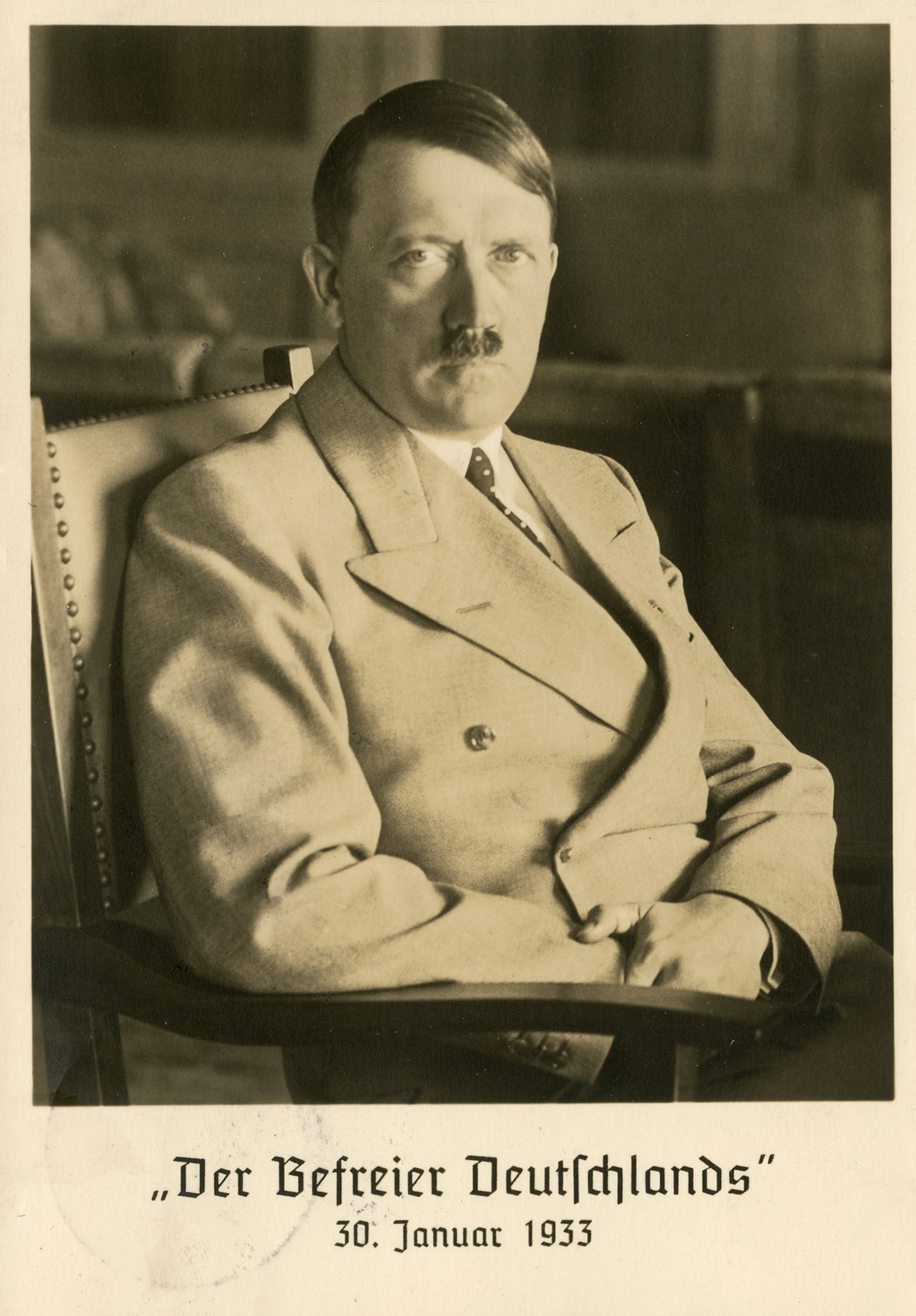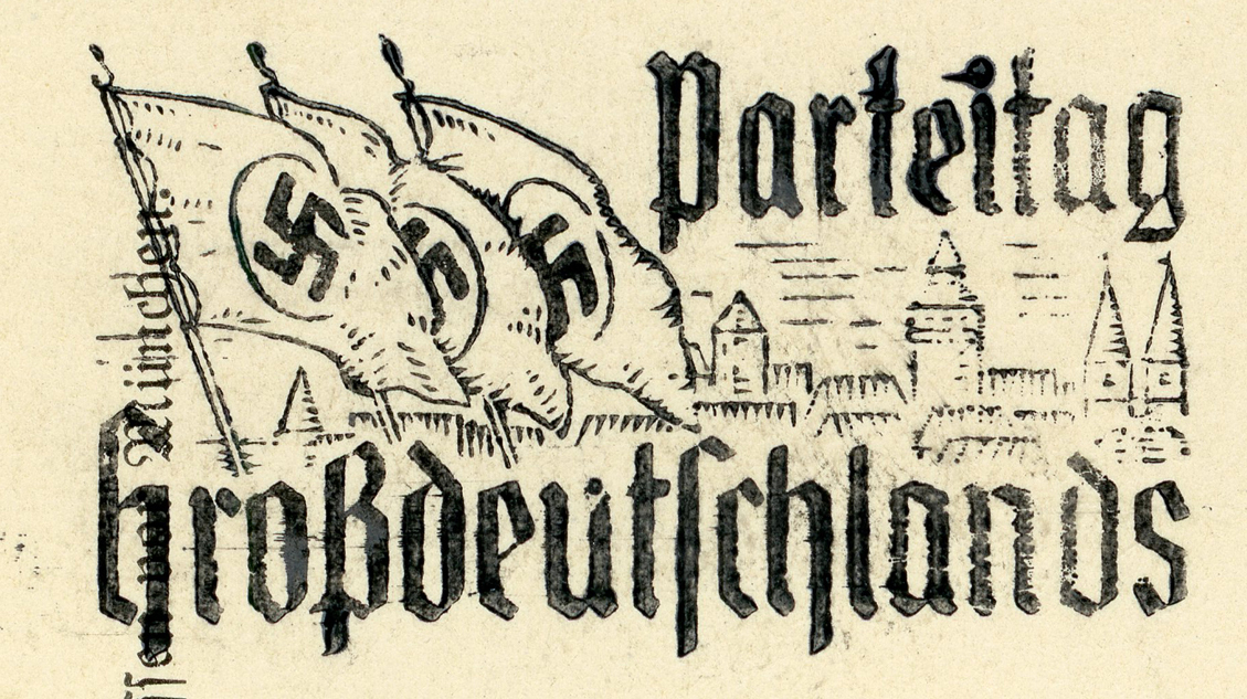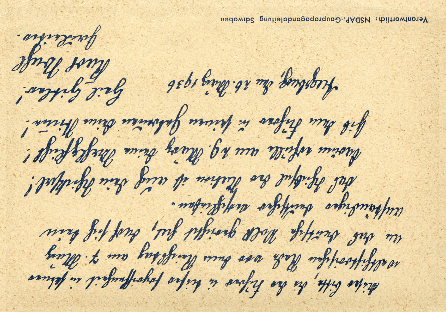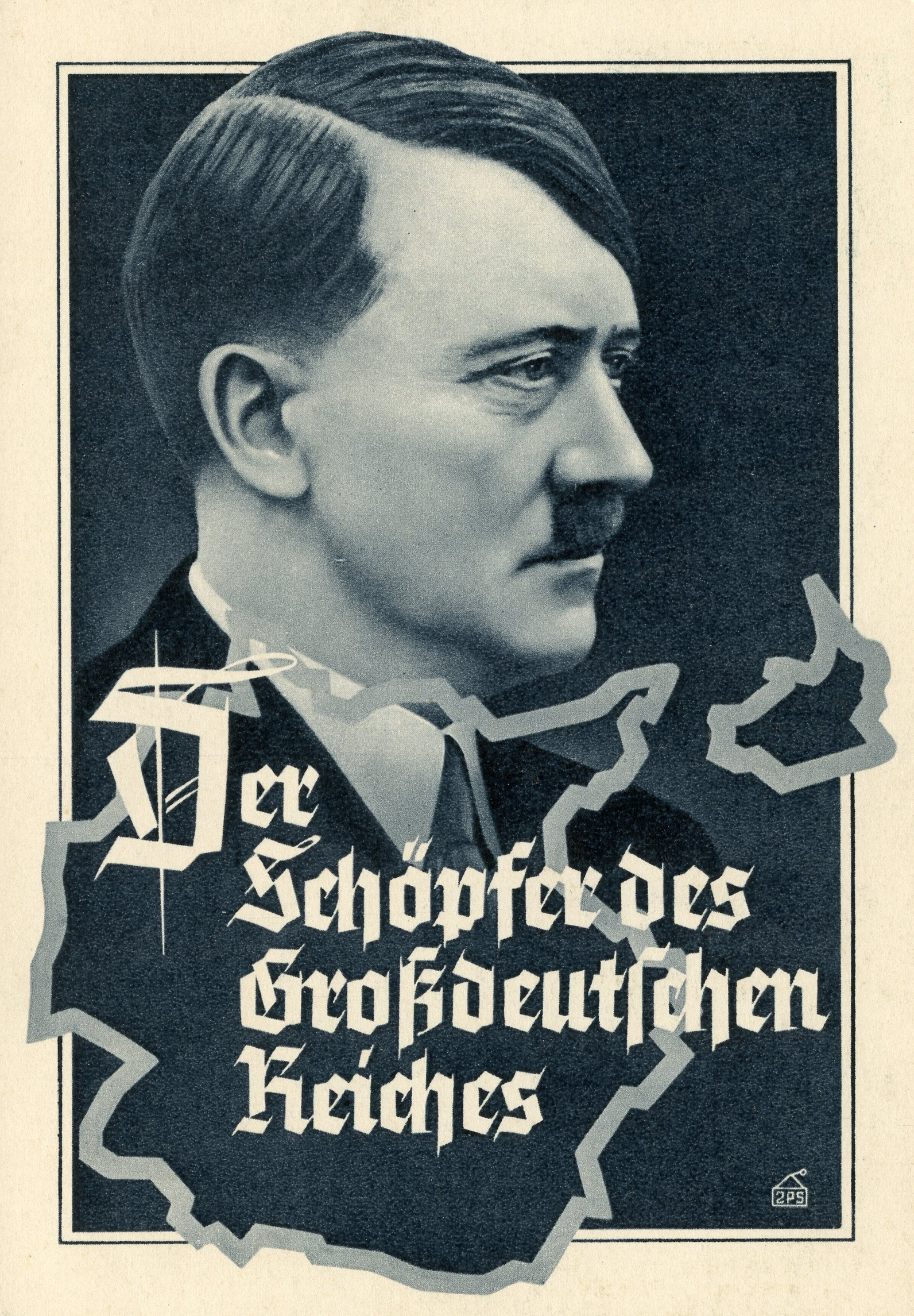 [Below: Reverse. This sieg rune cancel says 'Mit dem Führer zum Sieg' (With the Führer to Victory), from April 20, 1942.]