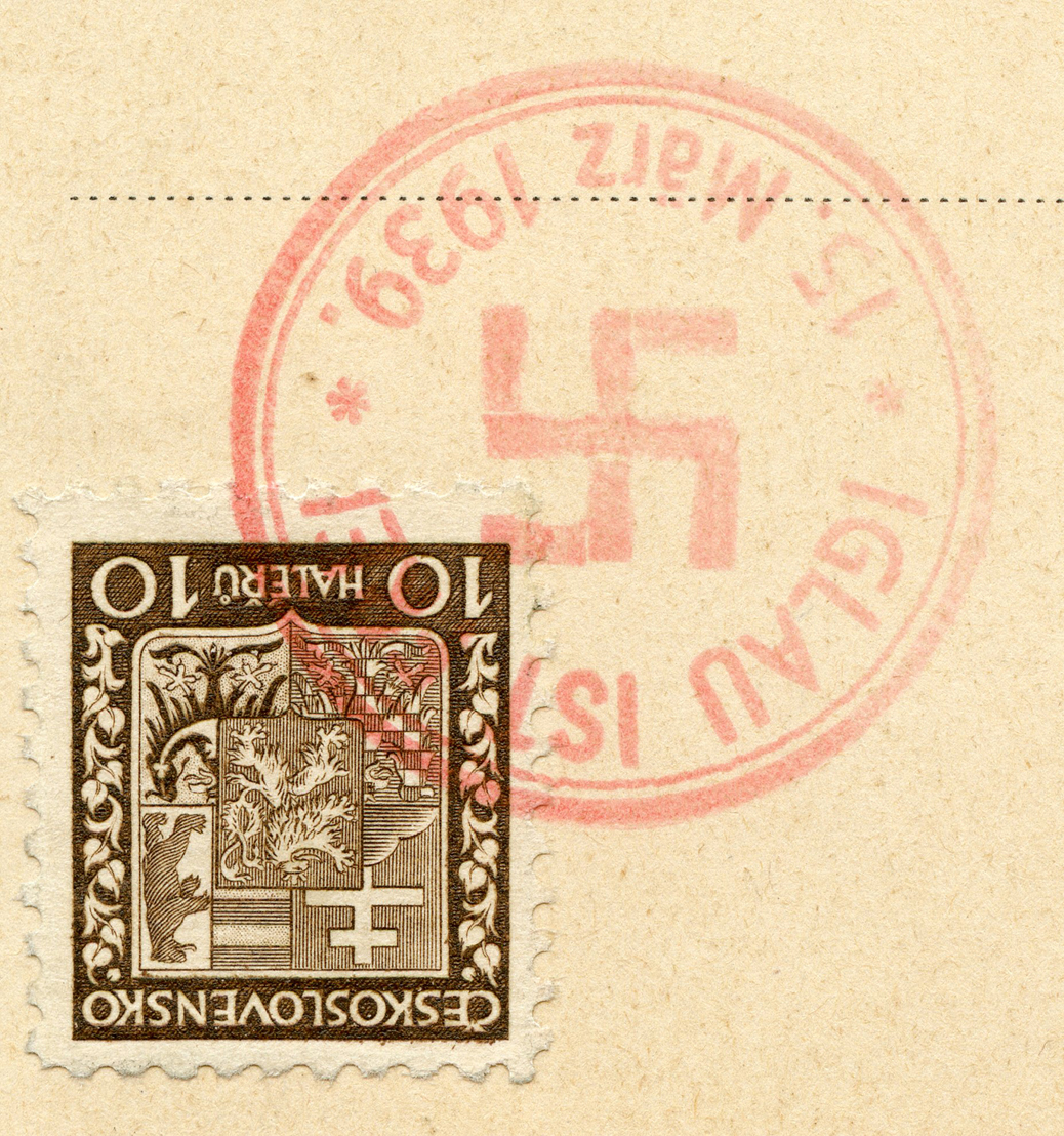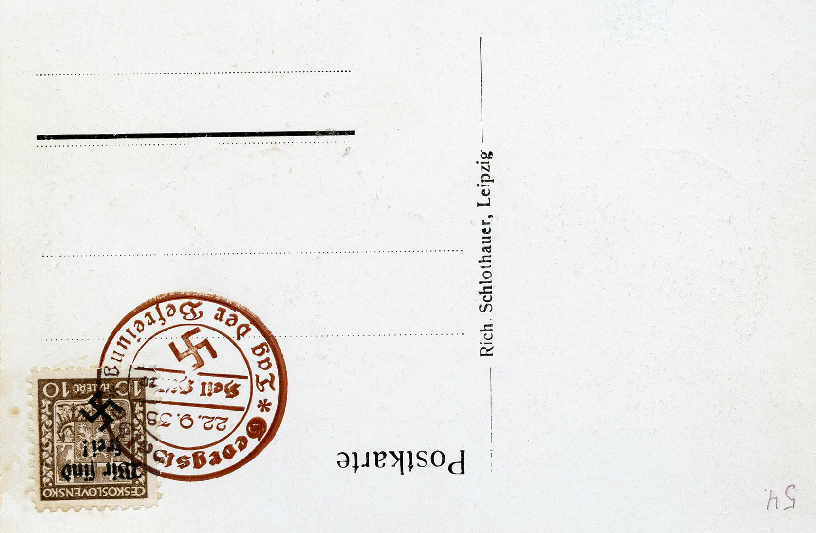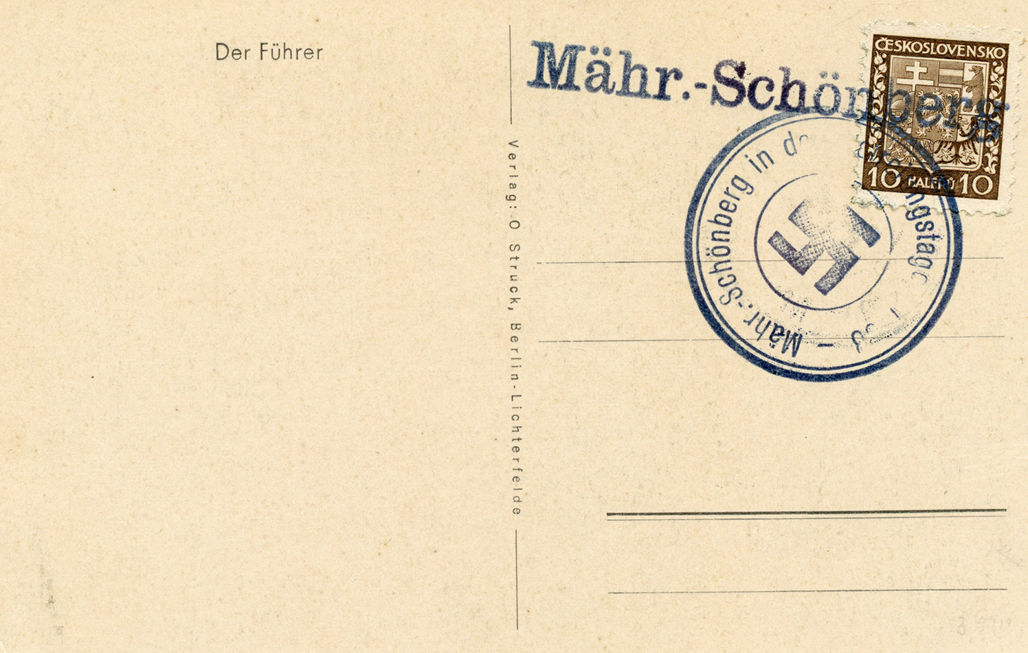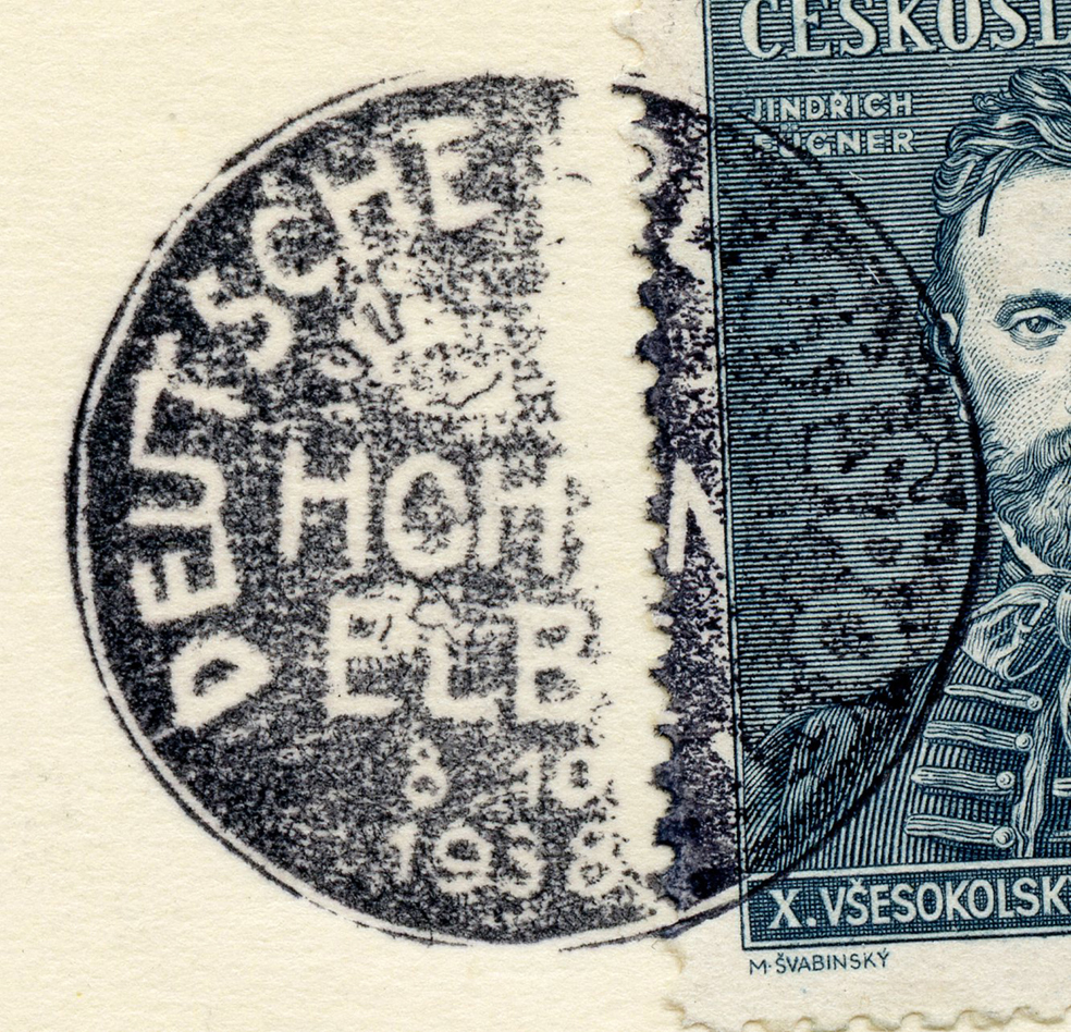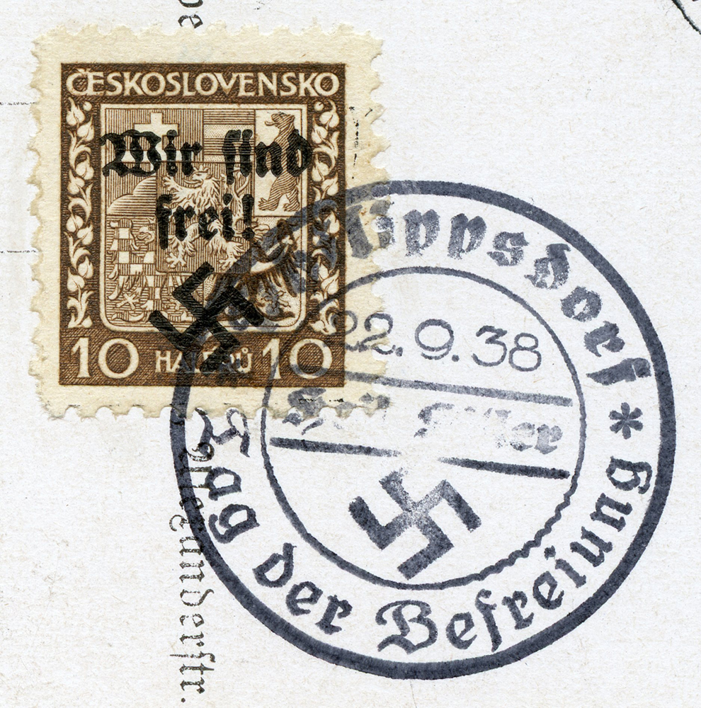[Below: Reverse. This is a 1938 Sudetenland cancel from Mähr.-Schönberg.]