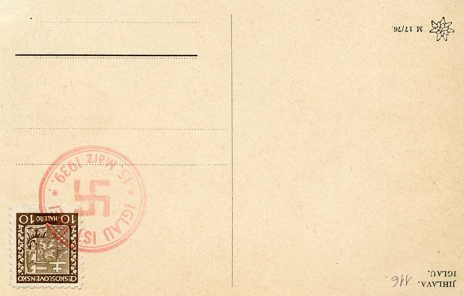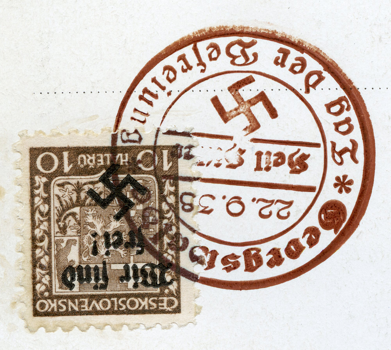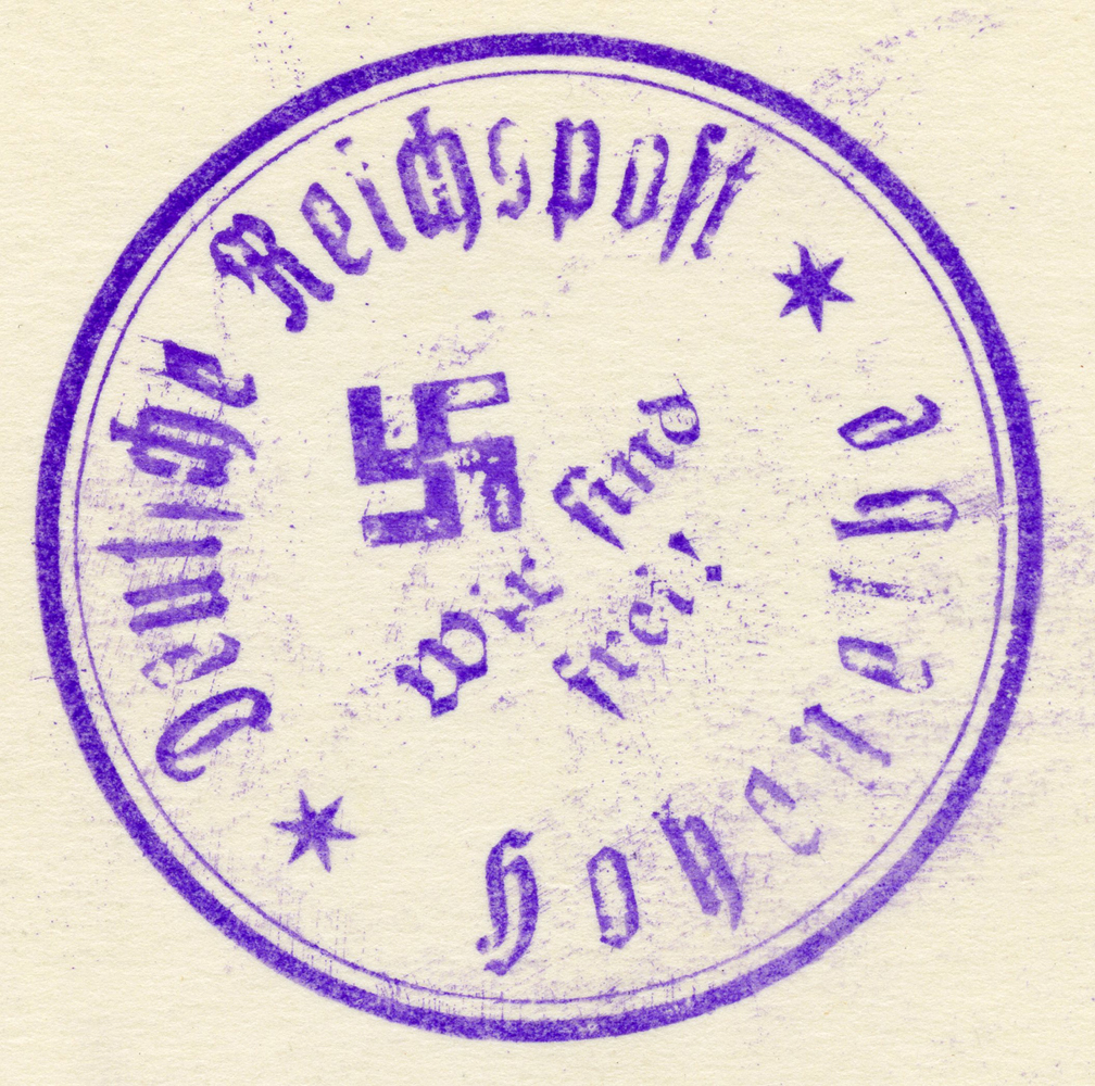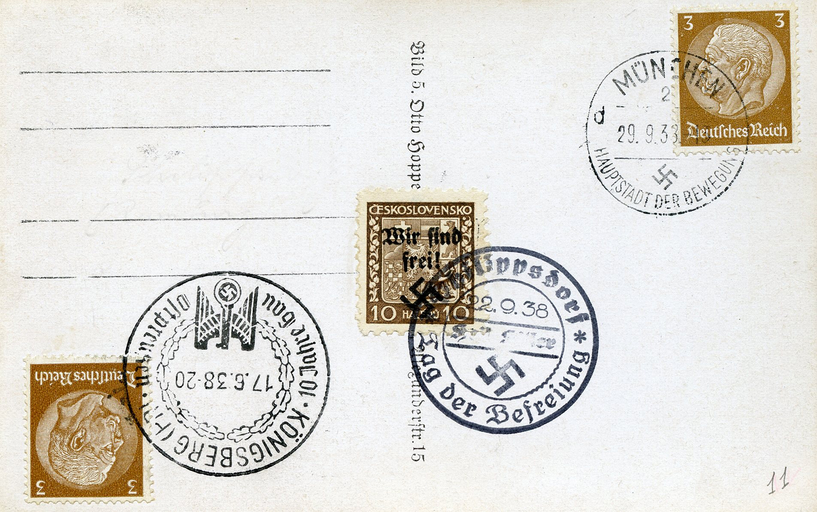 [Below: Reverse. This is a 1938 Sudetenland cancel from Mähr.-Schönberg.]