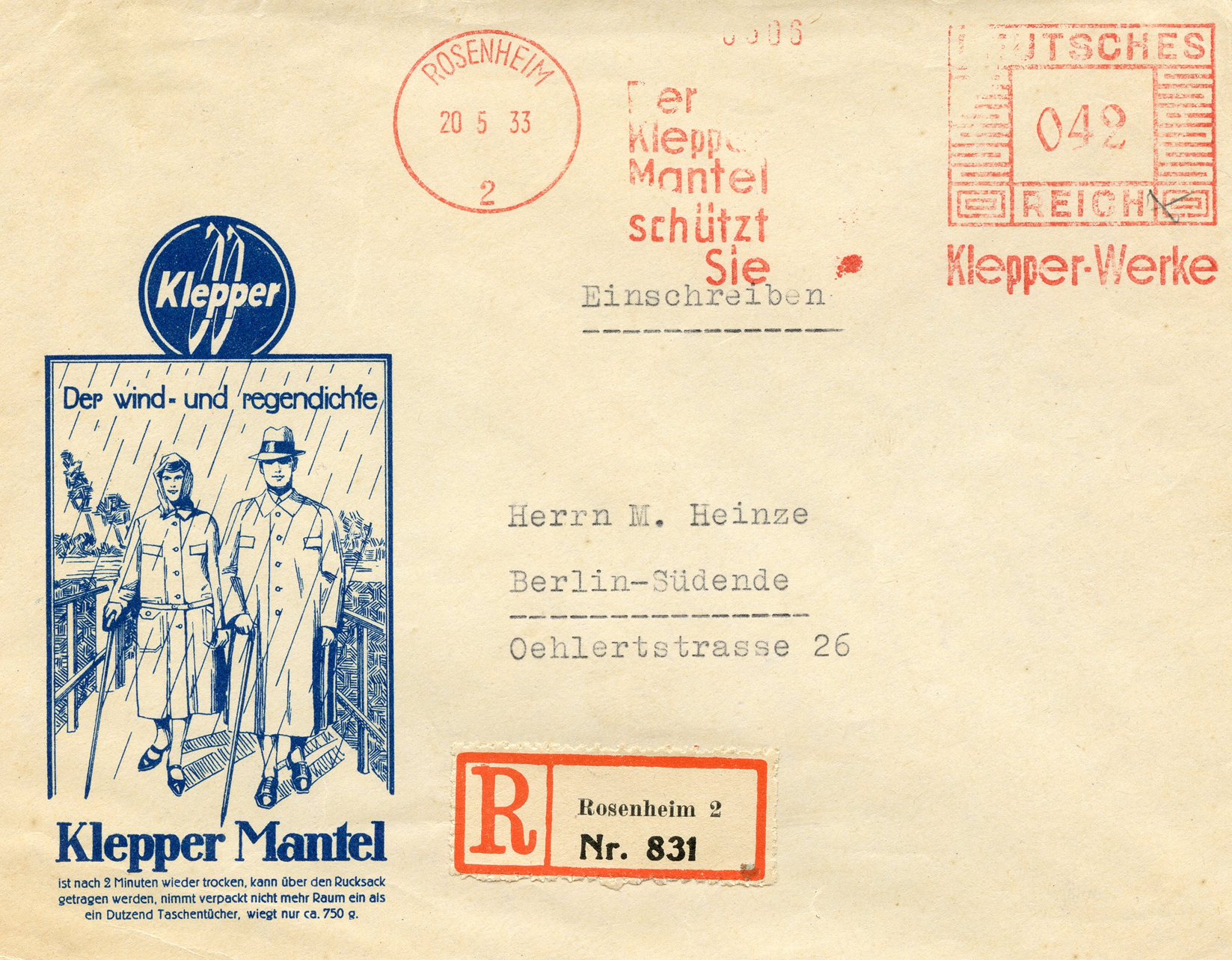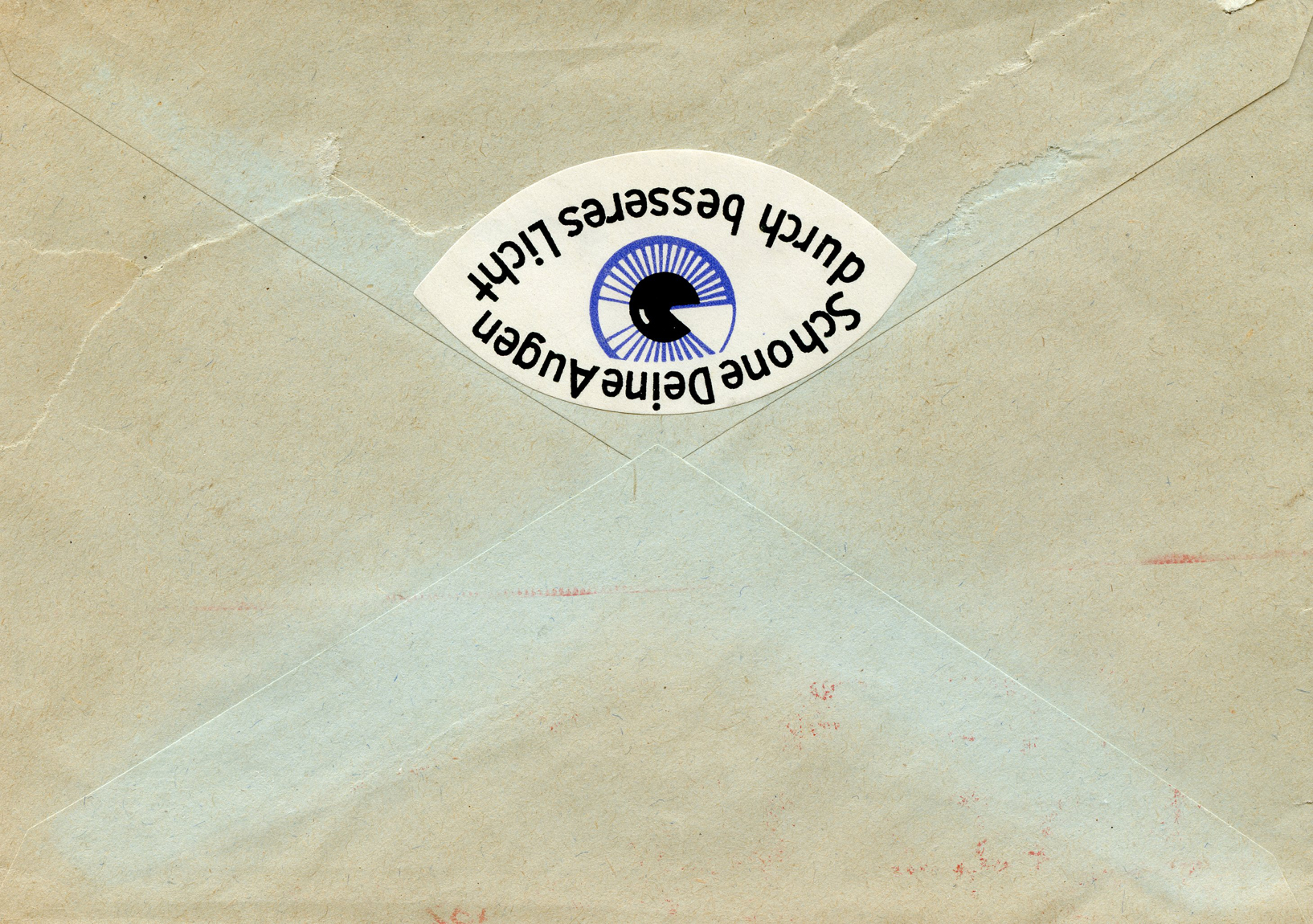 [Below: Graphic on the back of the envelope. It says 'Rast ich, Rost ich' (I Rest, I Rust).]