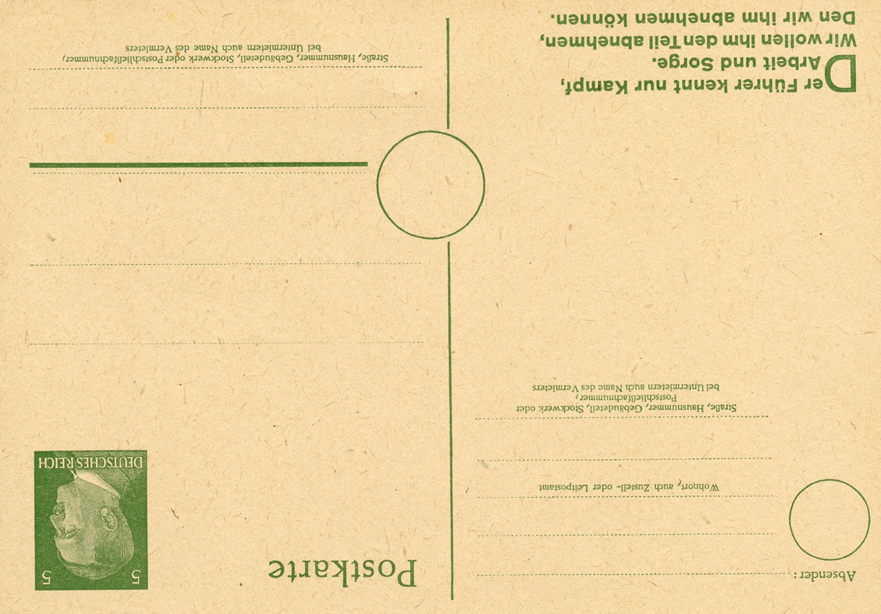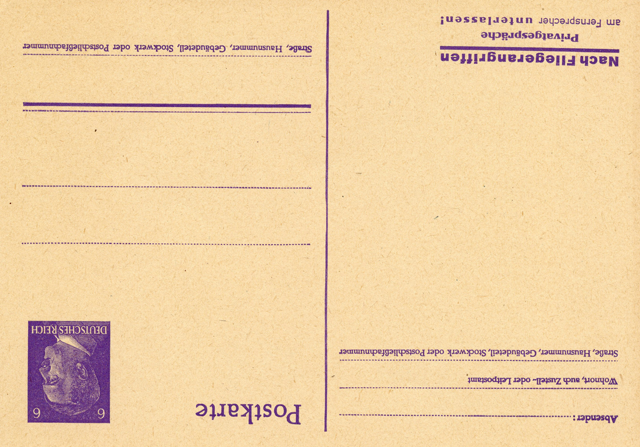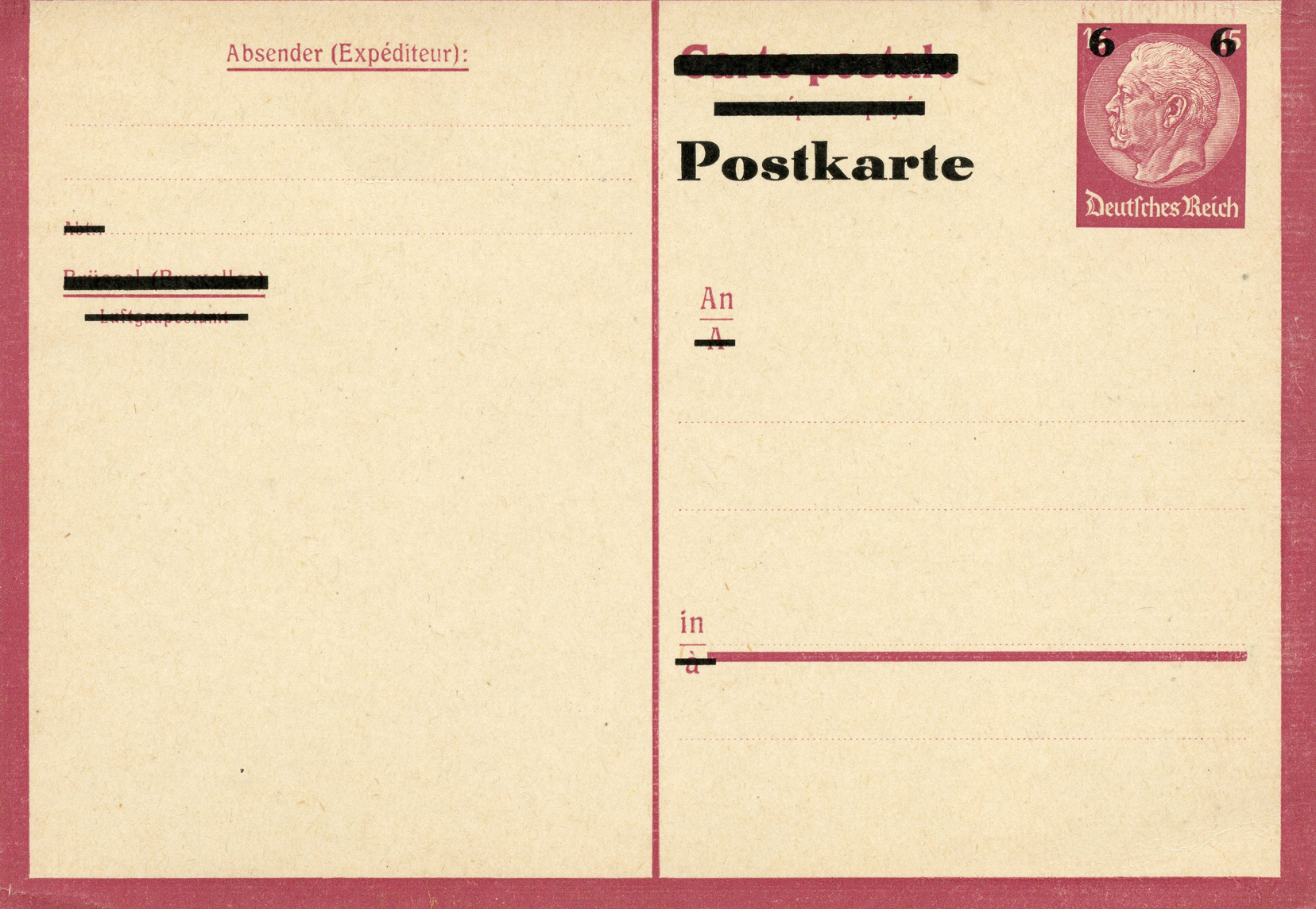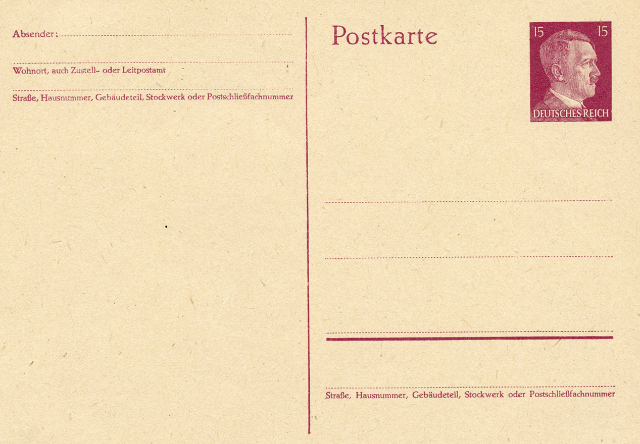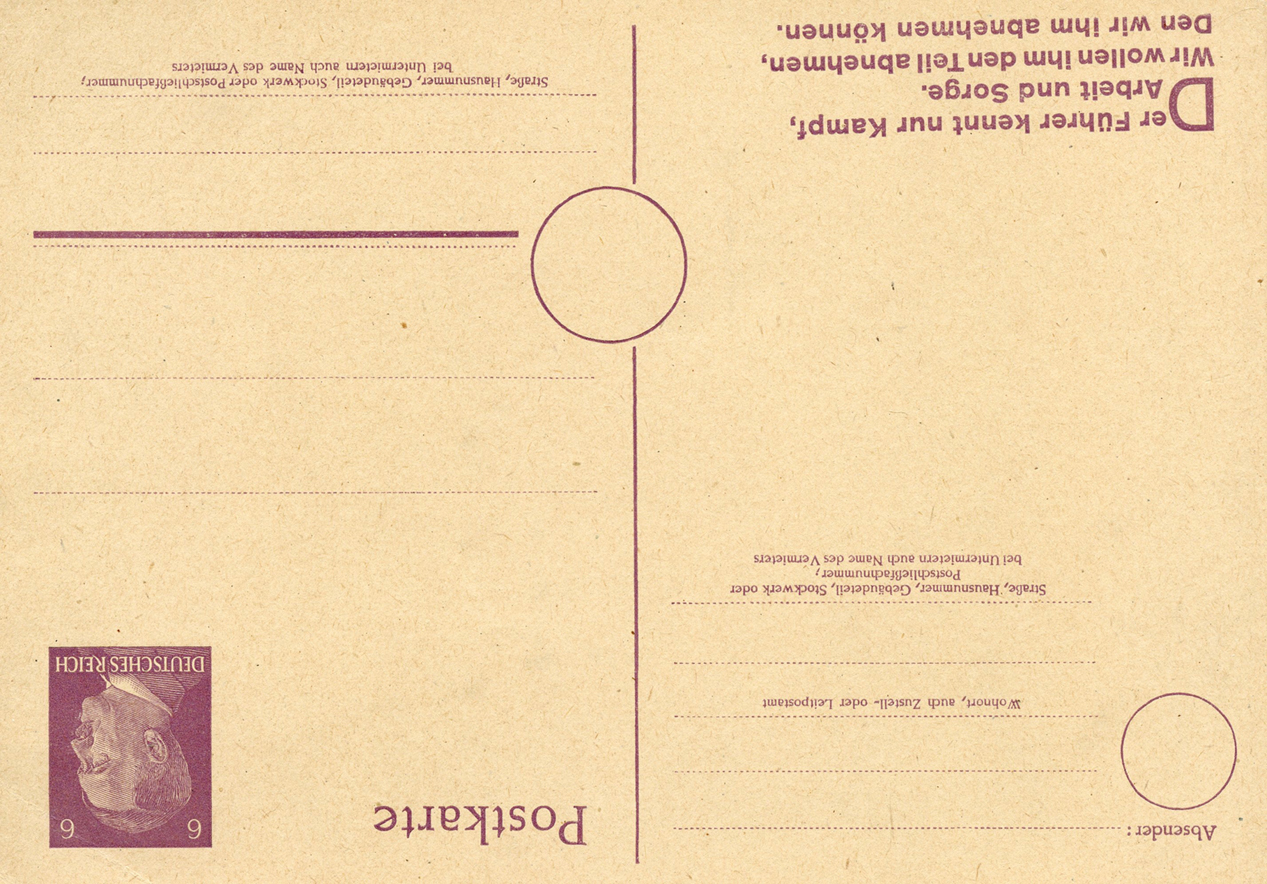 [Below: The postcard design was also sold without a reply postcard and overprinted. Note the new value and only German overprint.]