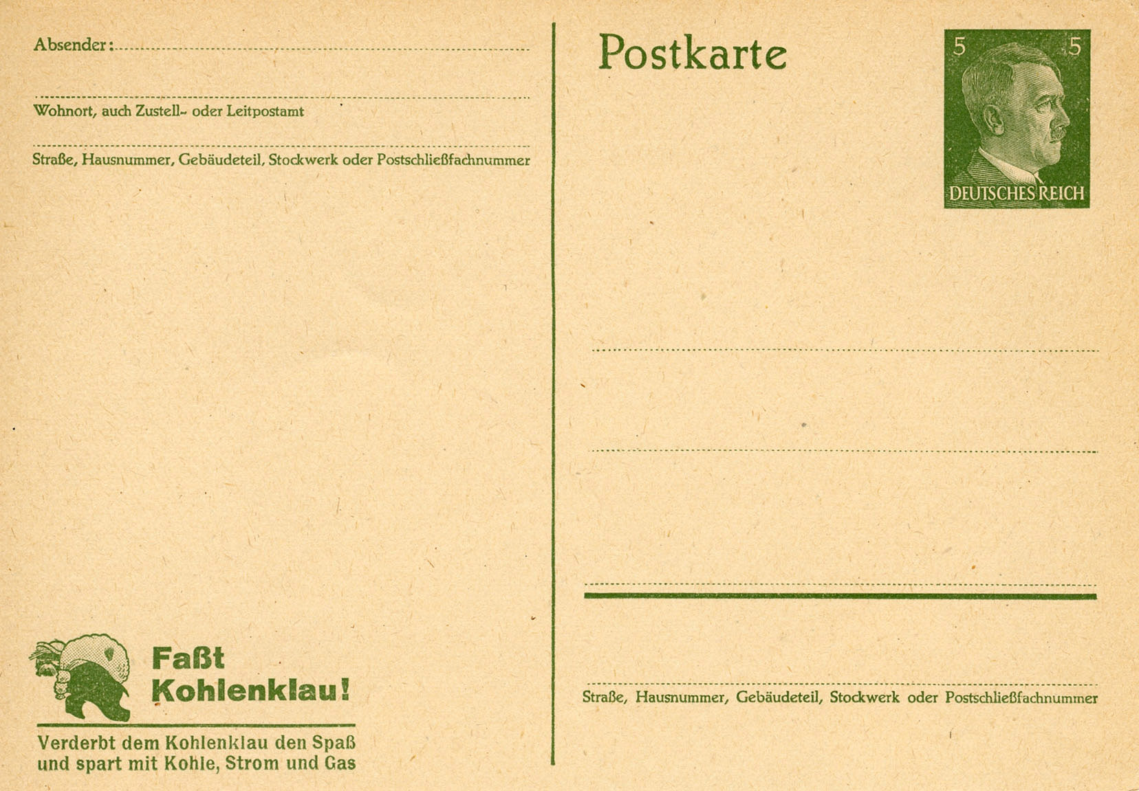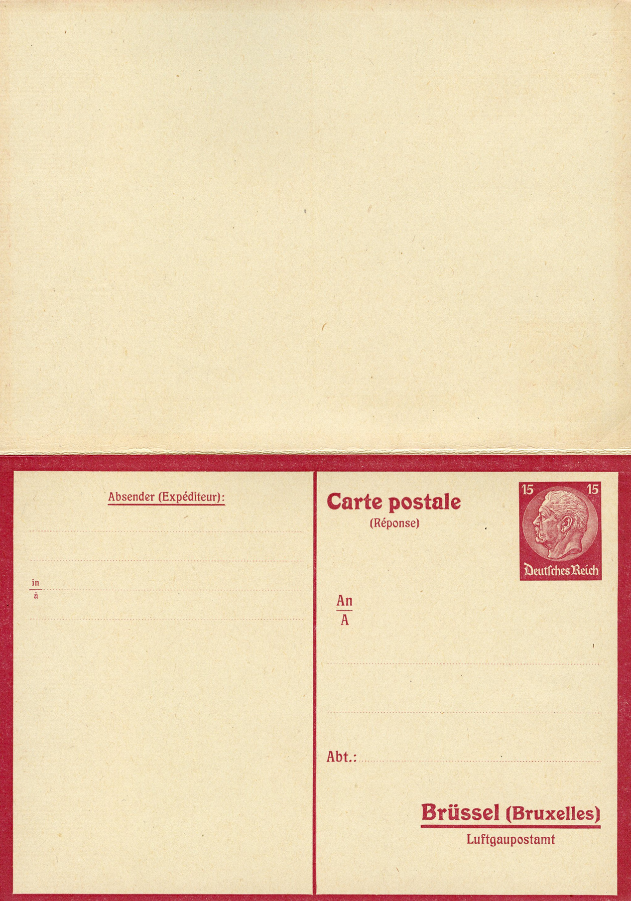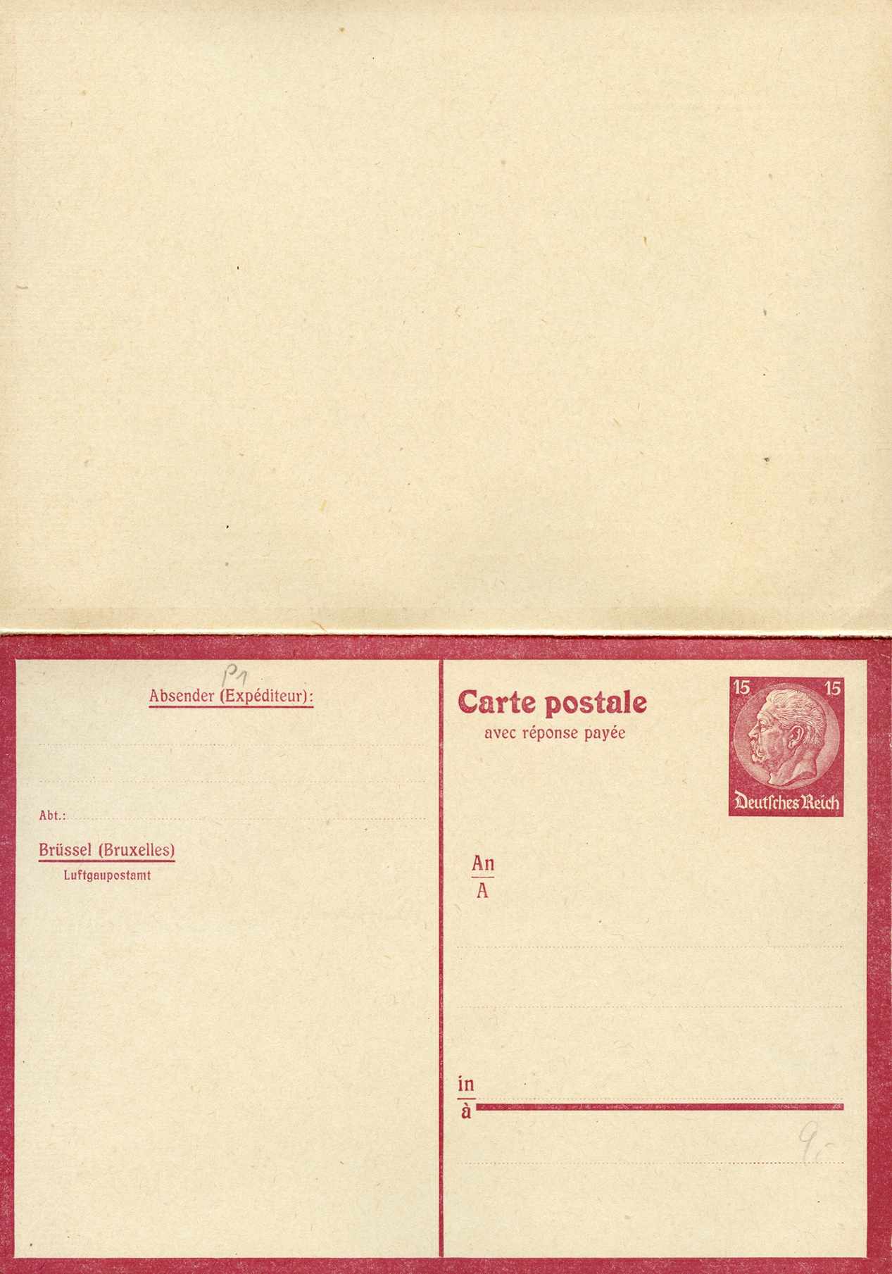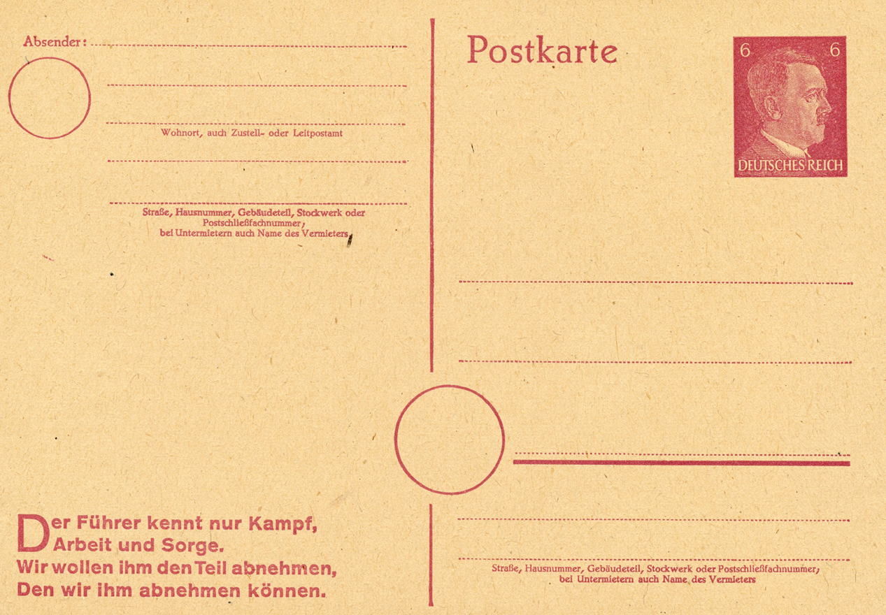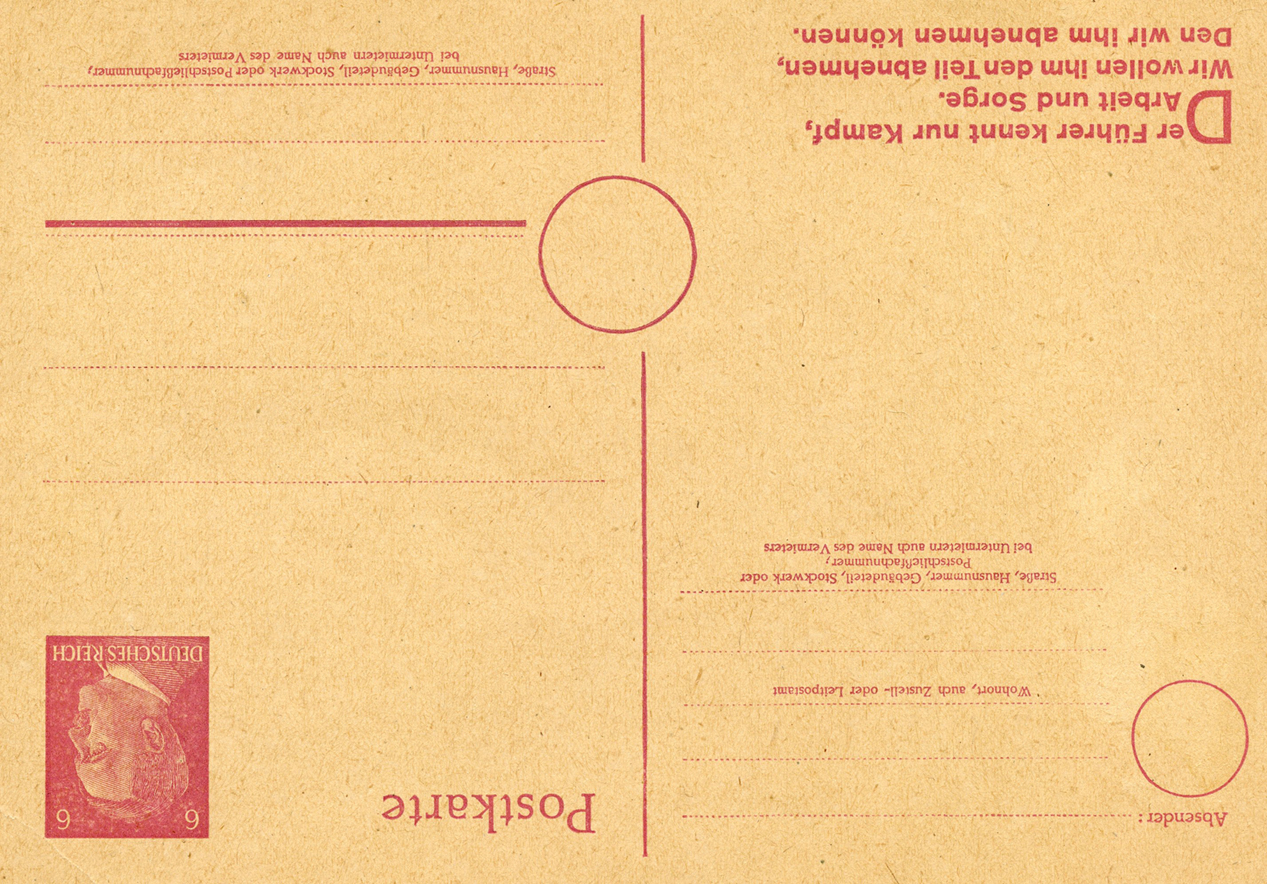 [Below: The postcard design was also sold without a reply postcard and overprinted. Note the new value and only German overprint.]