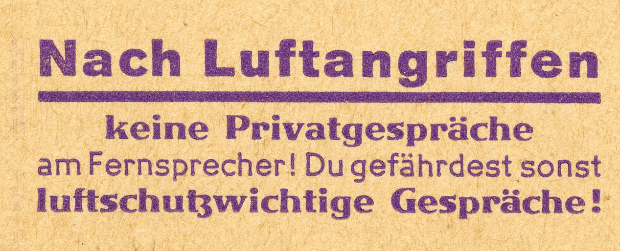 [Below: This says: 'After air raids - Refrain from private telephone conversations!']