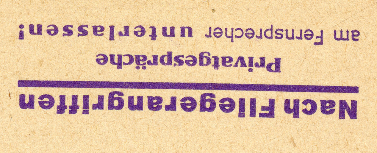 [Below: This says: 'After air raids - No private telephone calls! You will otherwise endanger important air raid shelter calls!']