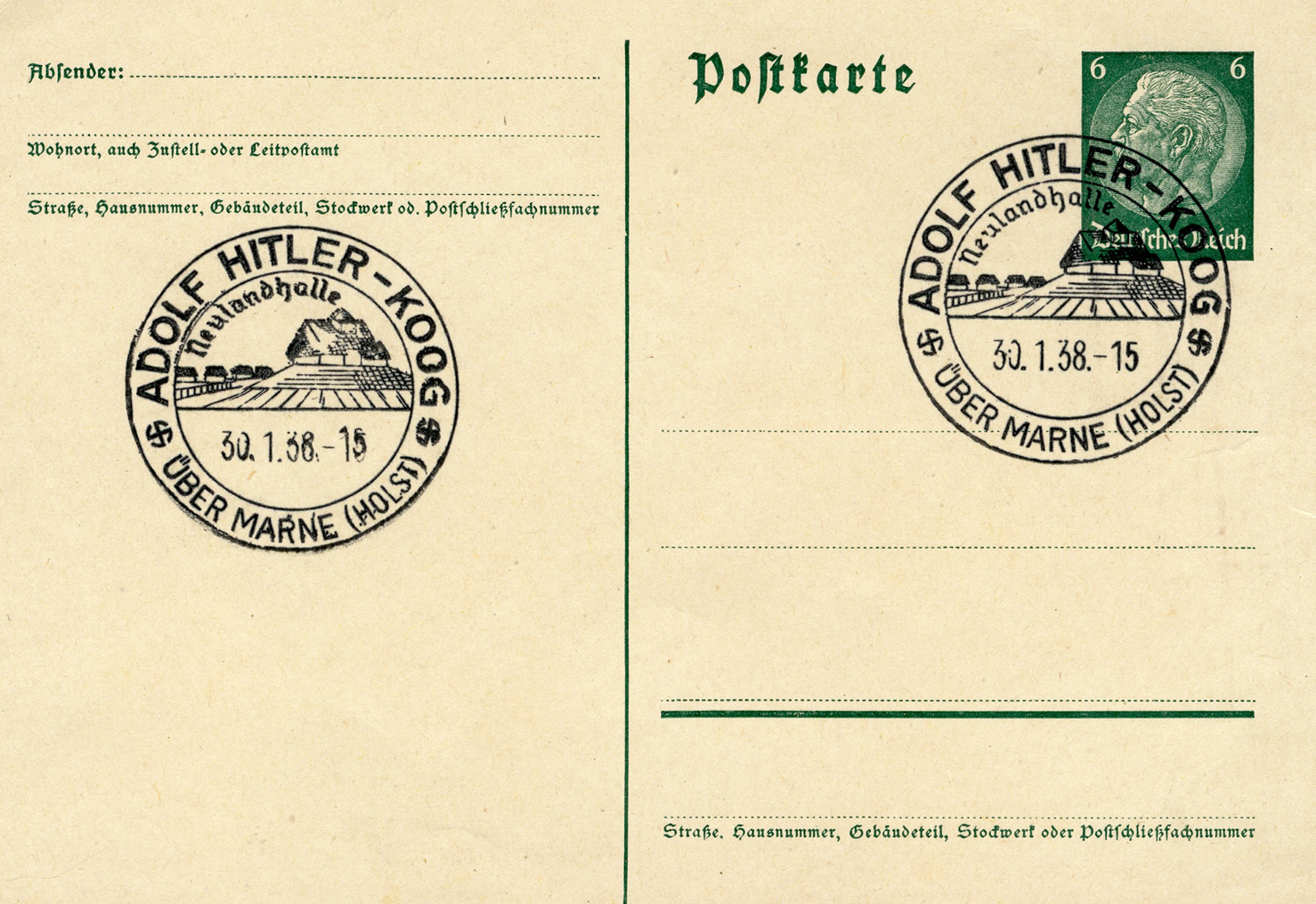 [Below: Adolf Hitler-Koog postcard. Click to enlarge.]