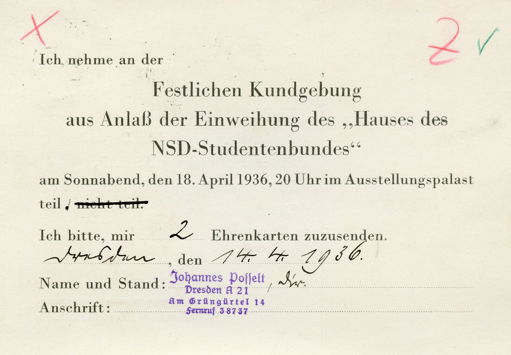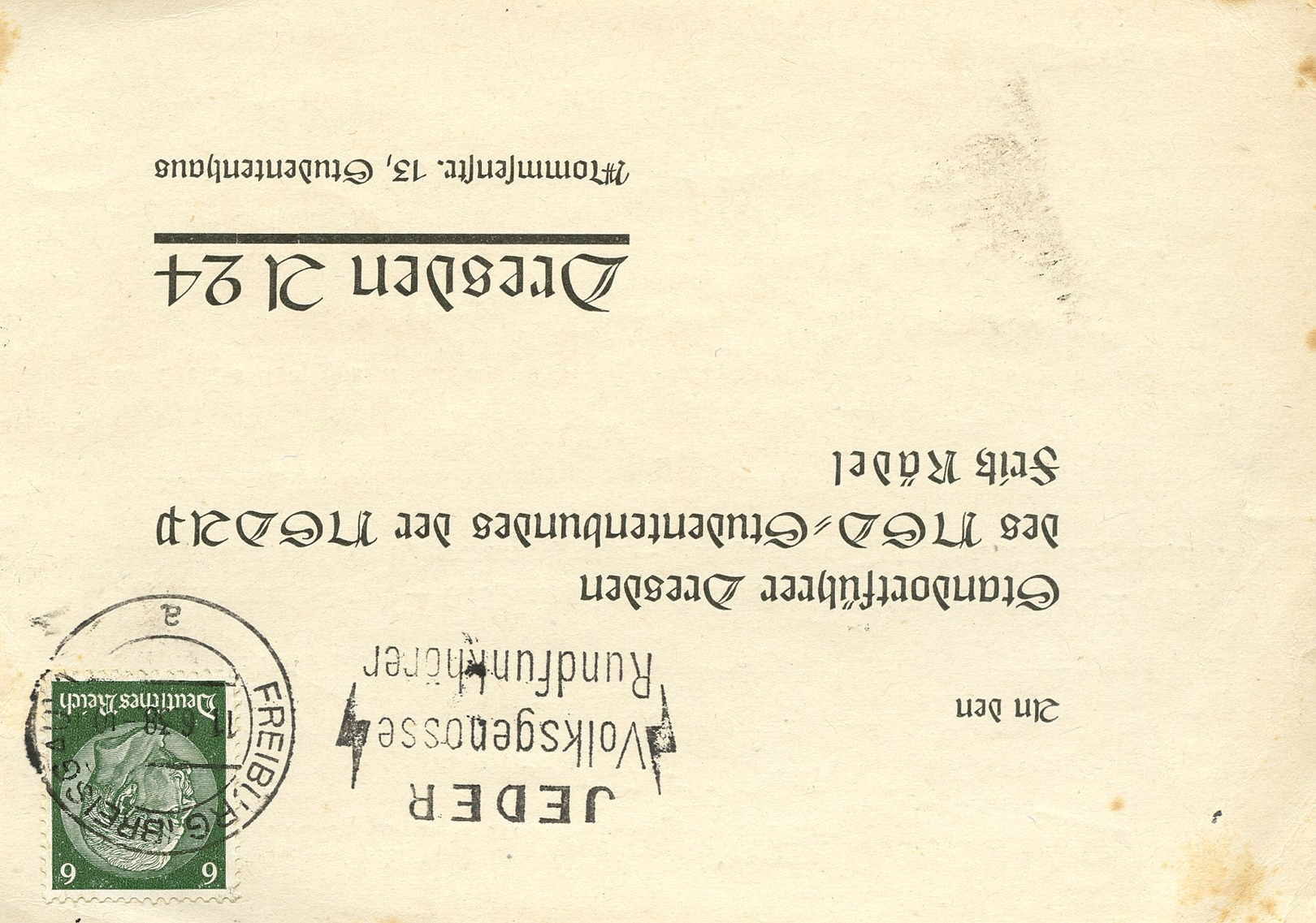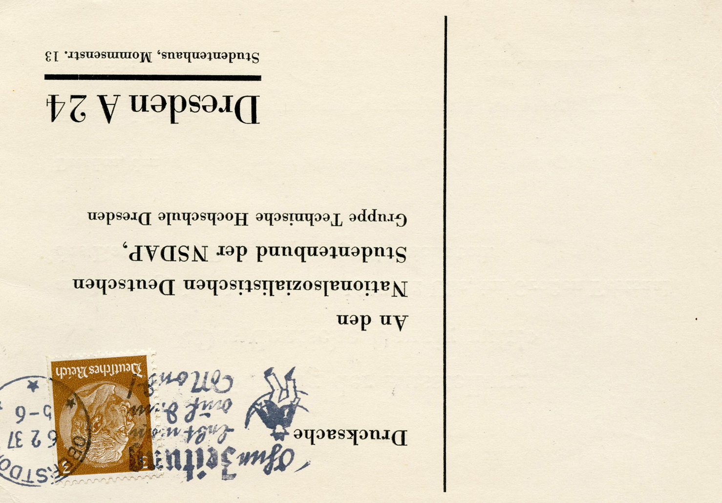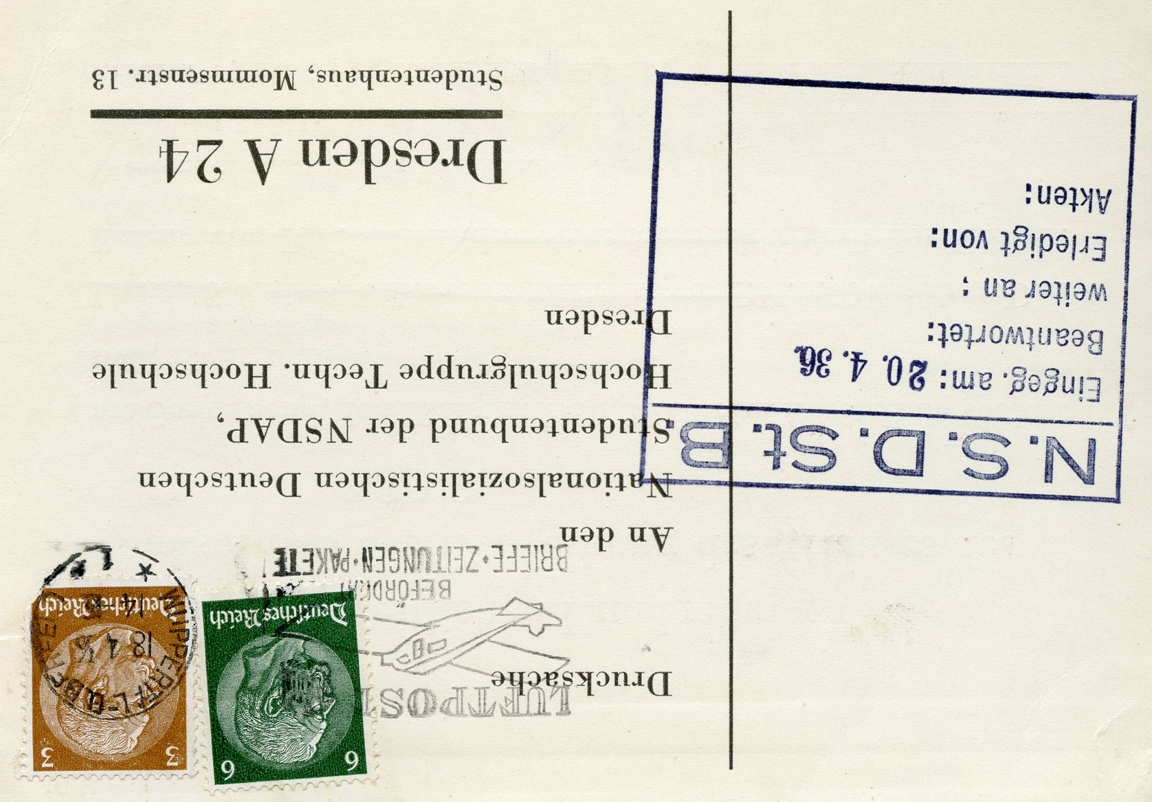 'An den Nationalsozialistischen Deutschen Studentenbund der NSDAP - Hochschulgruppe Techn. Hochschule Dresden'
