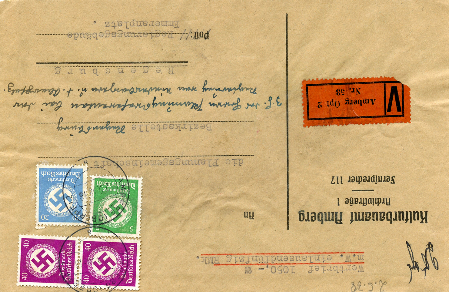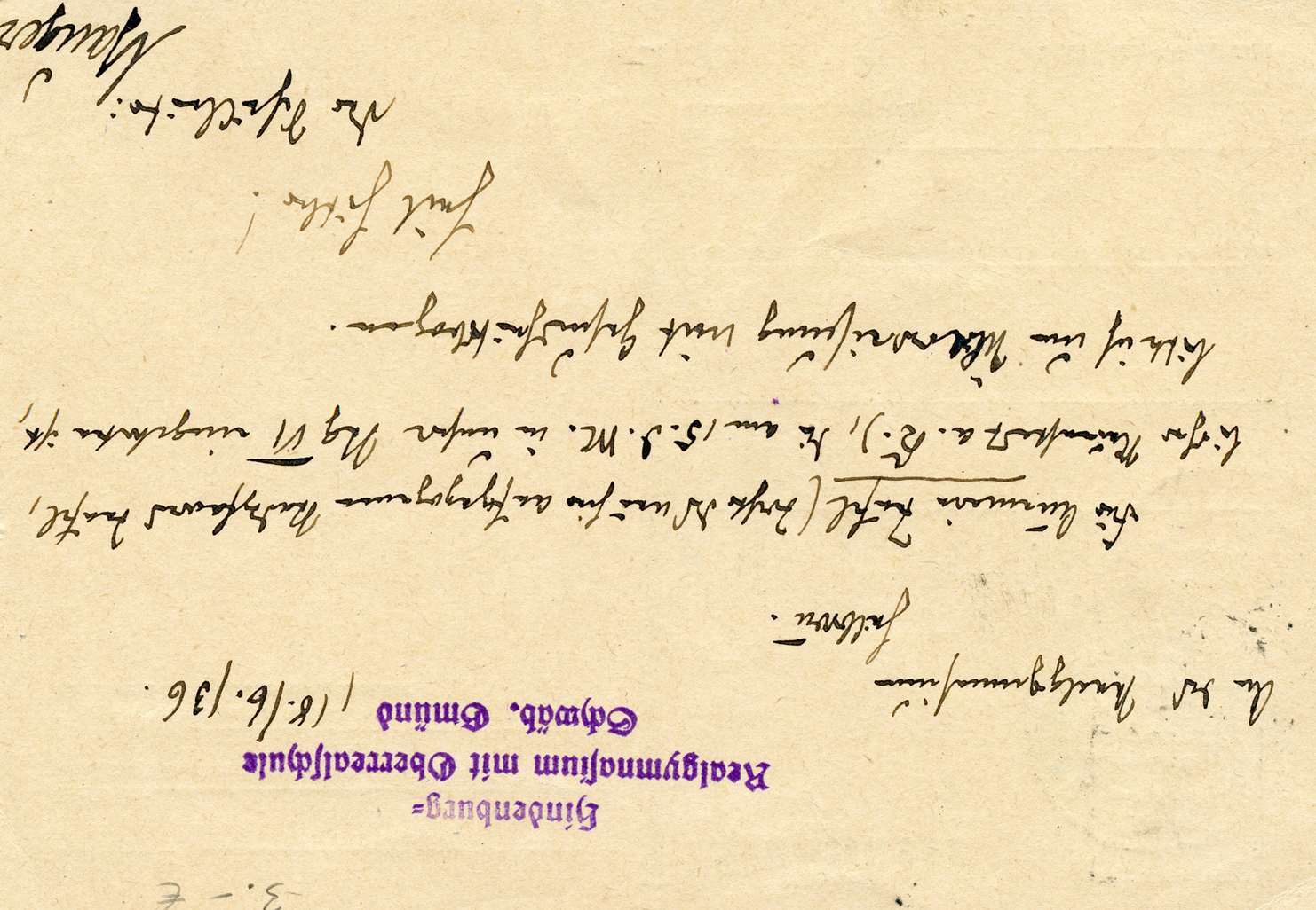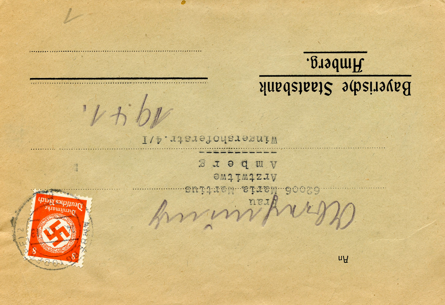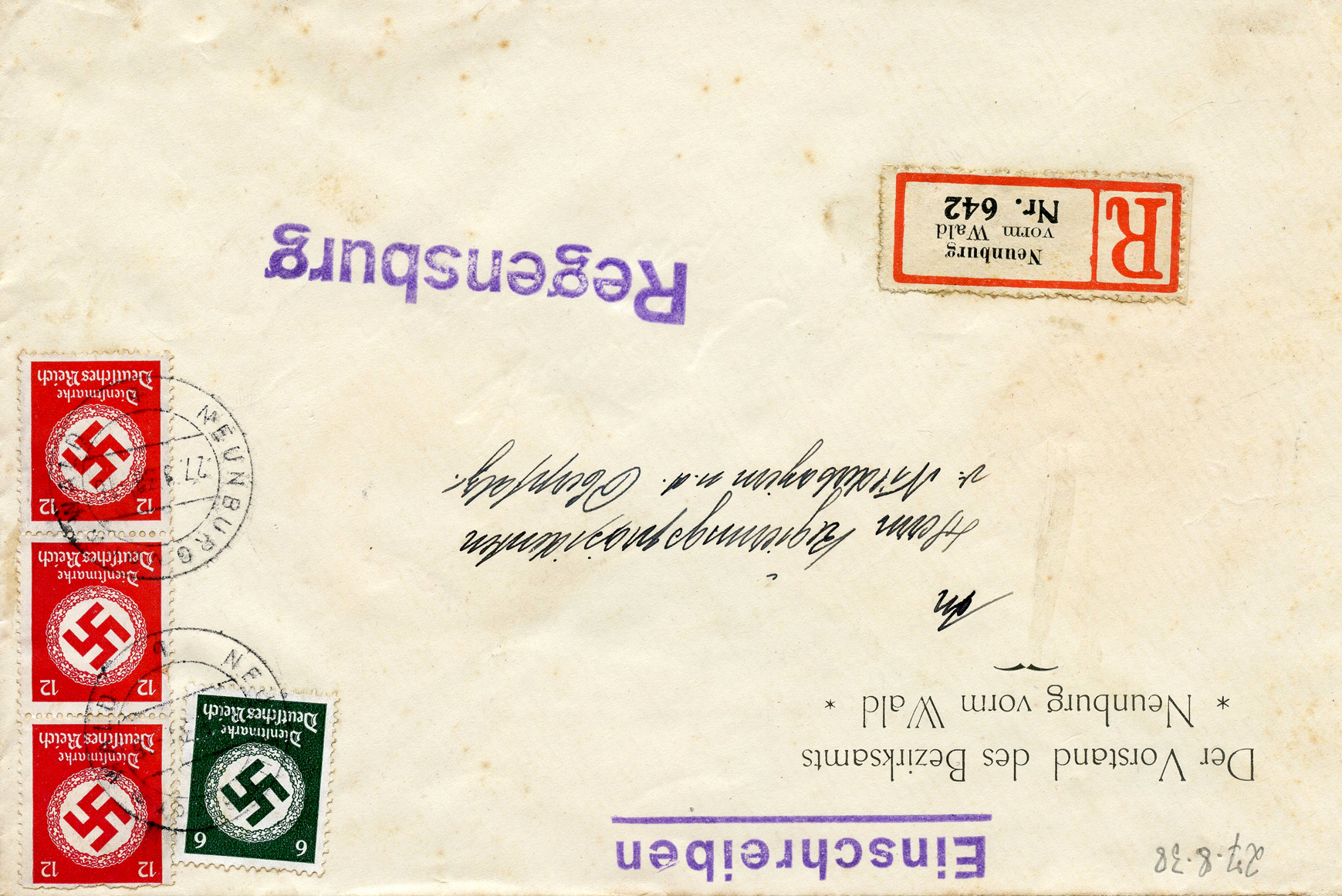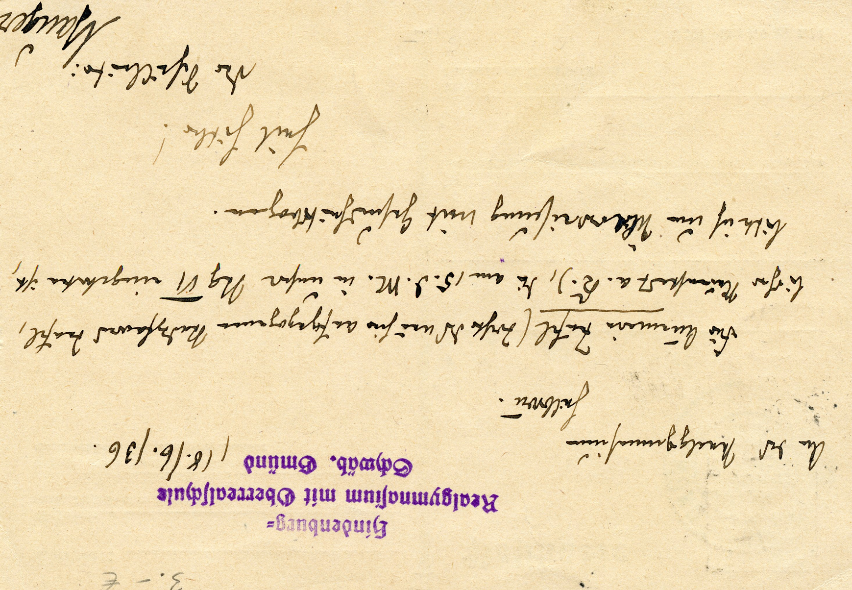 In the lower lefthand corner we see 'N.S.D. St. B.' which stands for Nationalsozialistischen Deutschen Studentenbund. Canceled on April 18, 1936.]