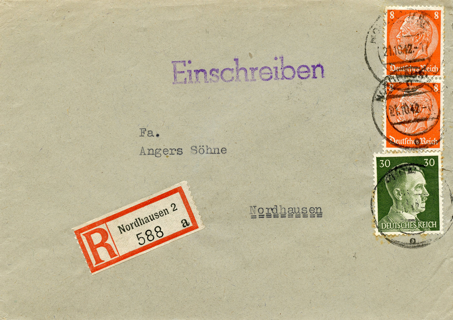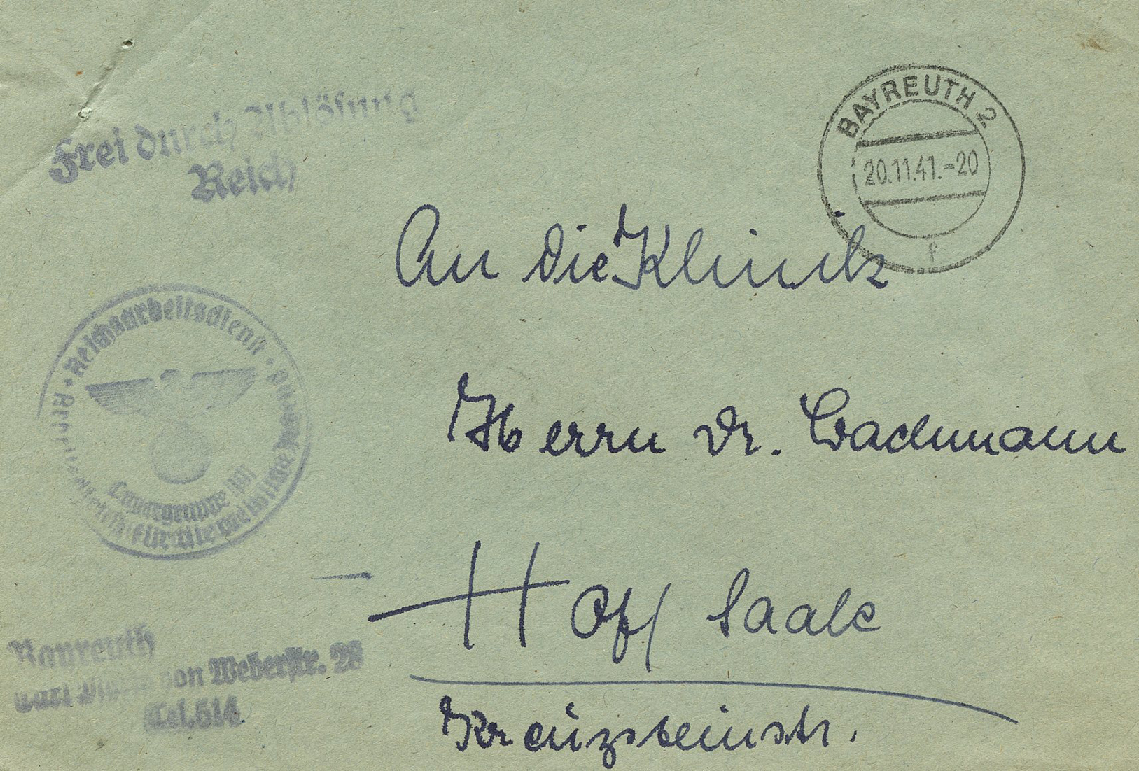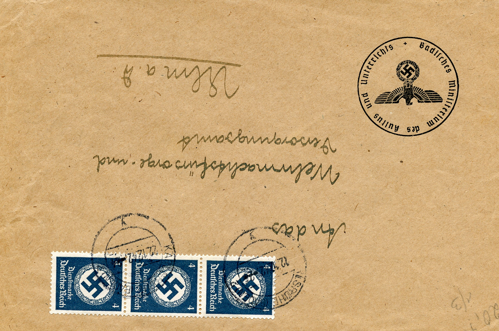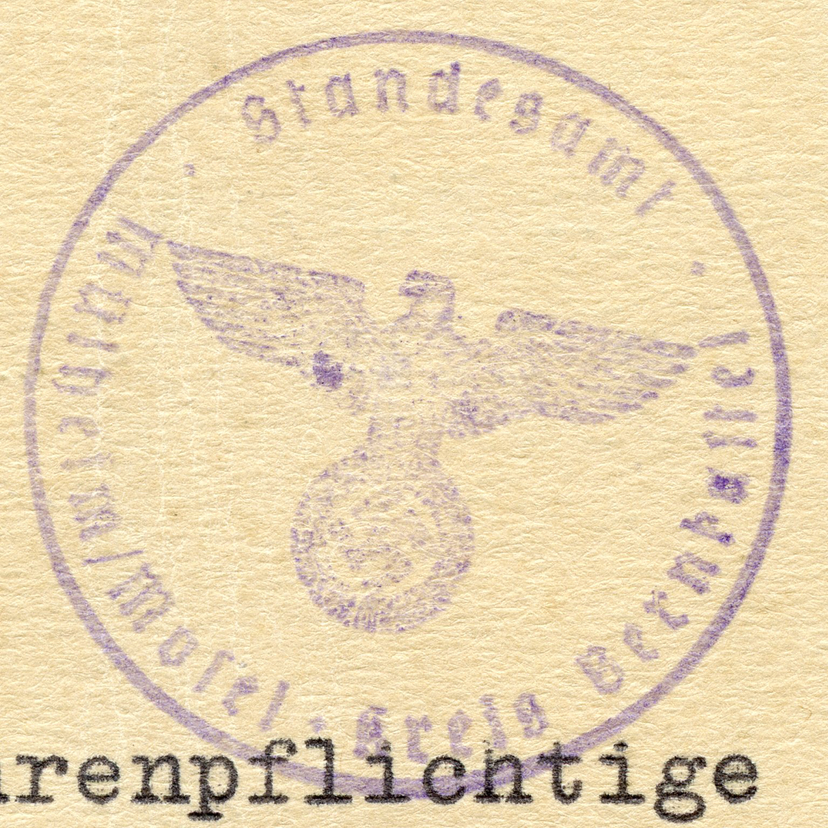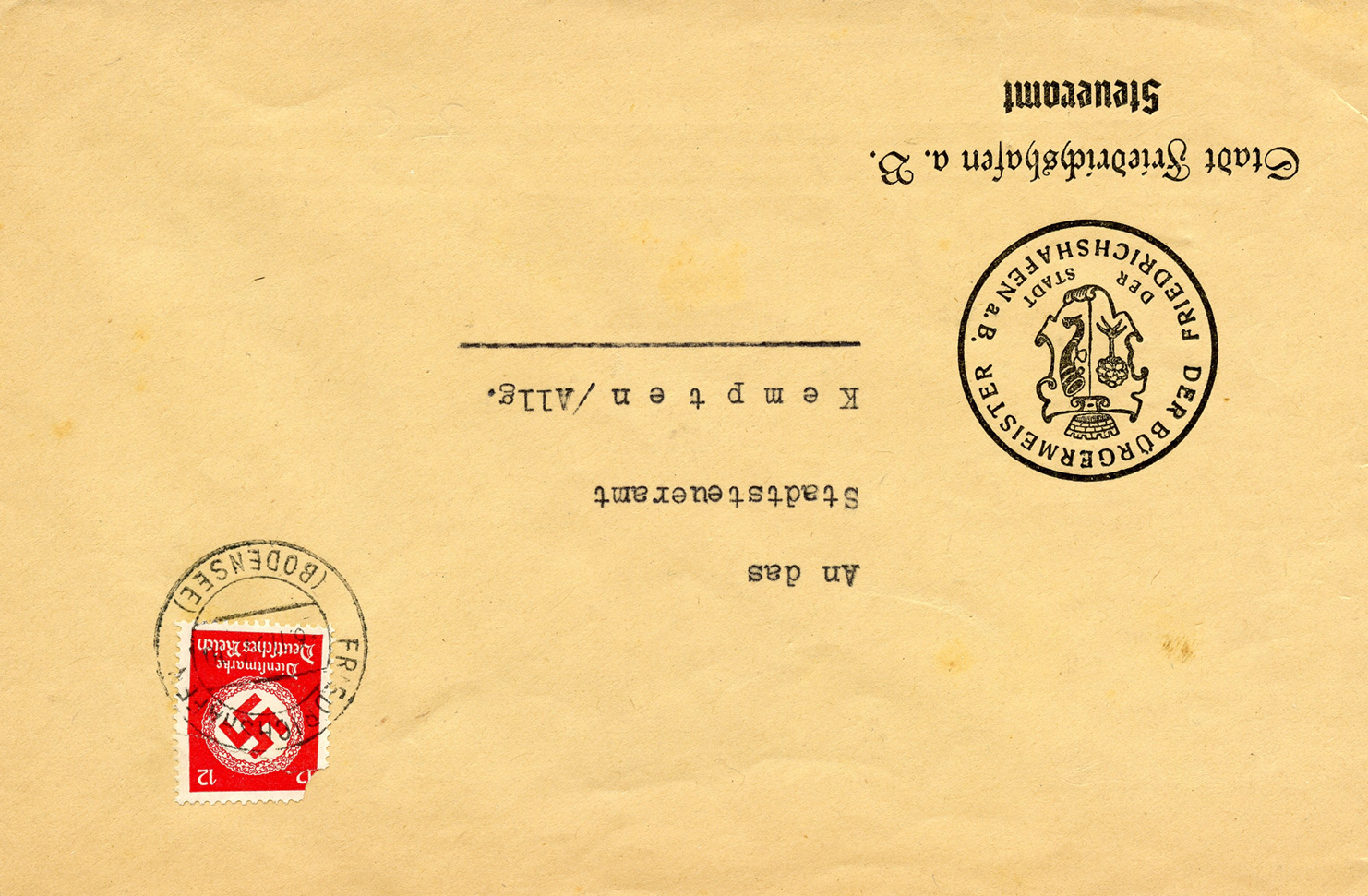 In the lower lefthand corner we see 'N.S.D. St. B.' which stands for Nationalsozialistischen Deutschen Studentenbund. Canceled on April 18, 1936.]