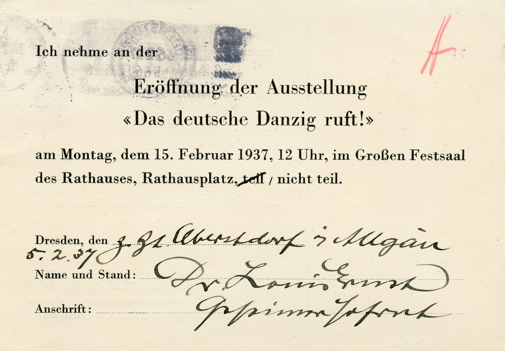 'Ich nehme an der Eröffnung der Ausstellung "Das deutsche Danzig ruft!"