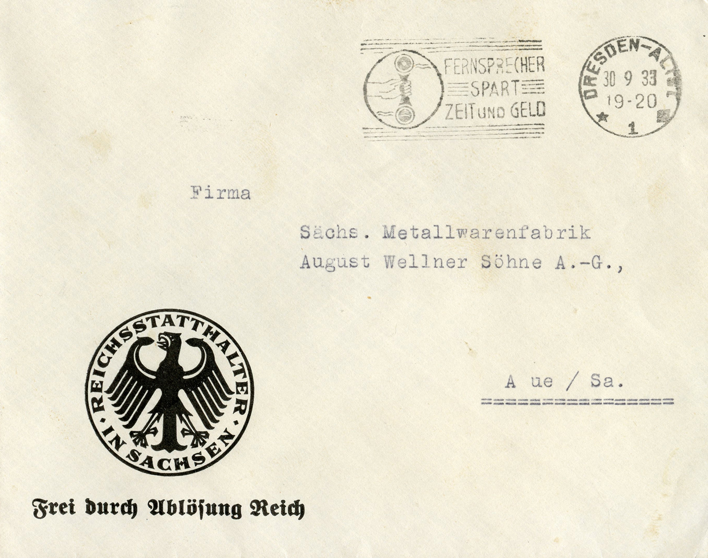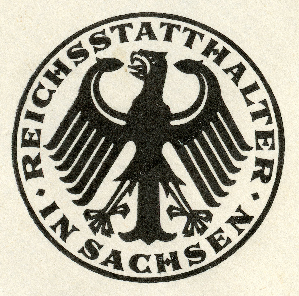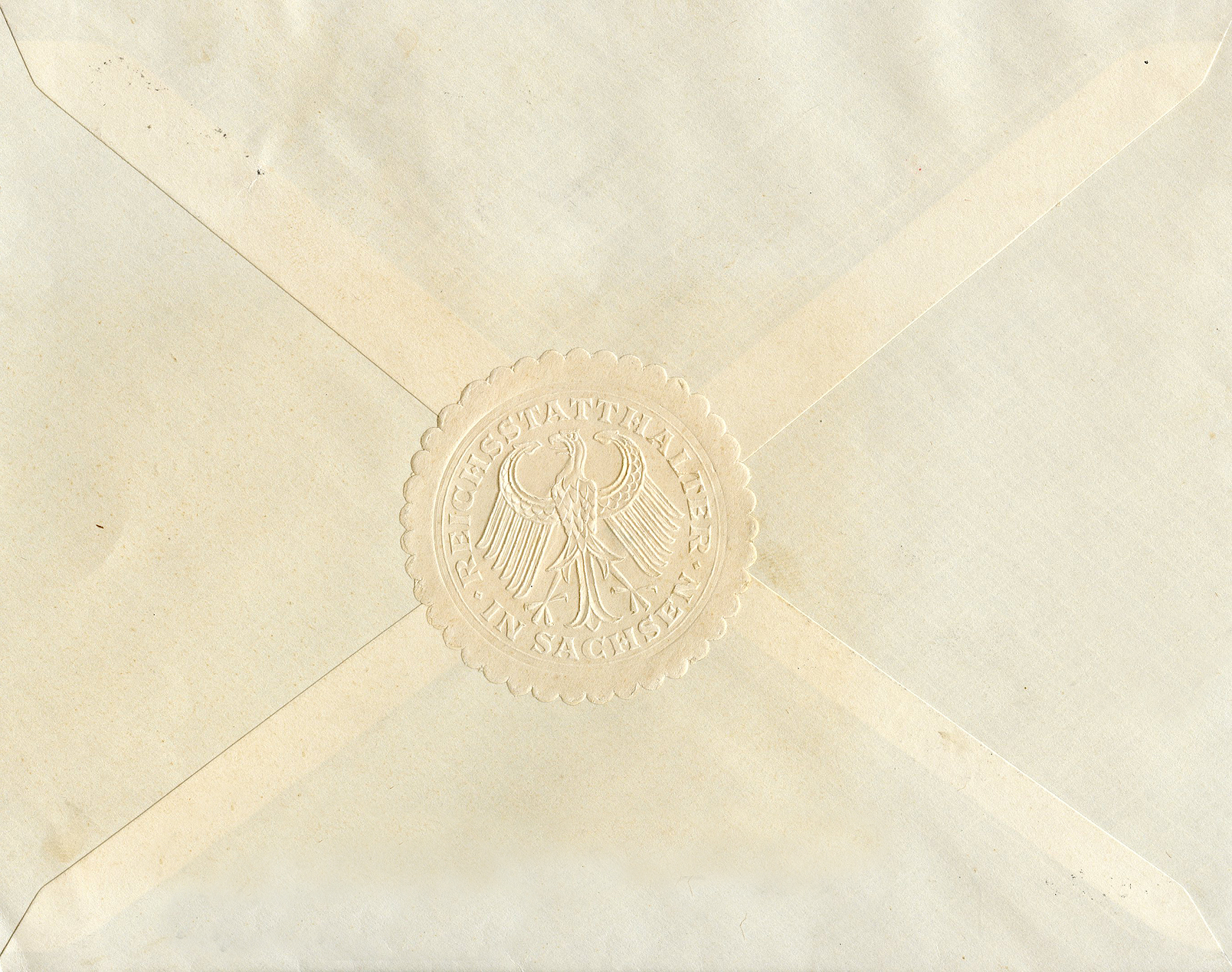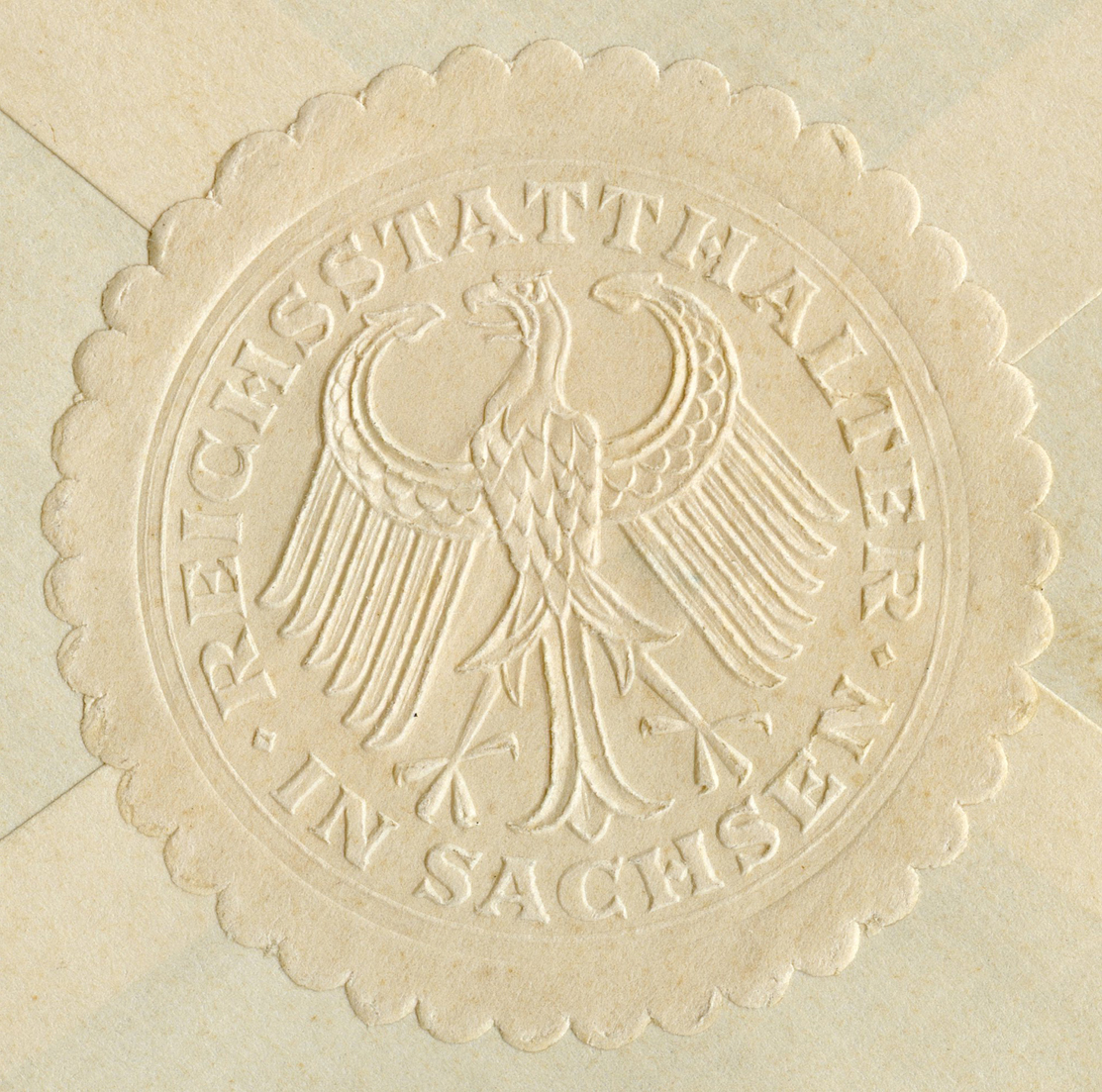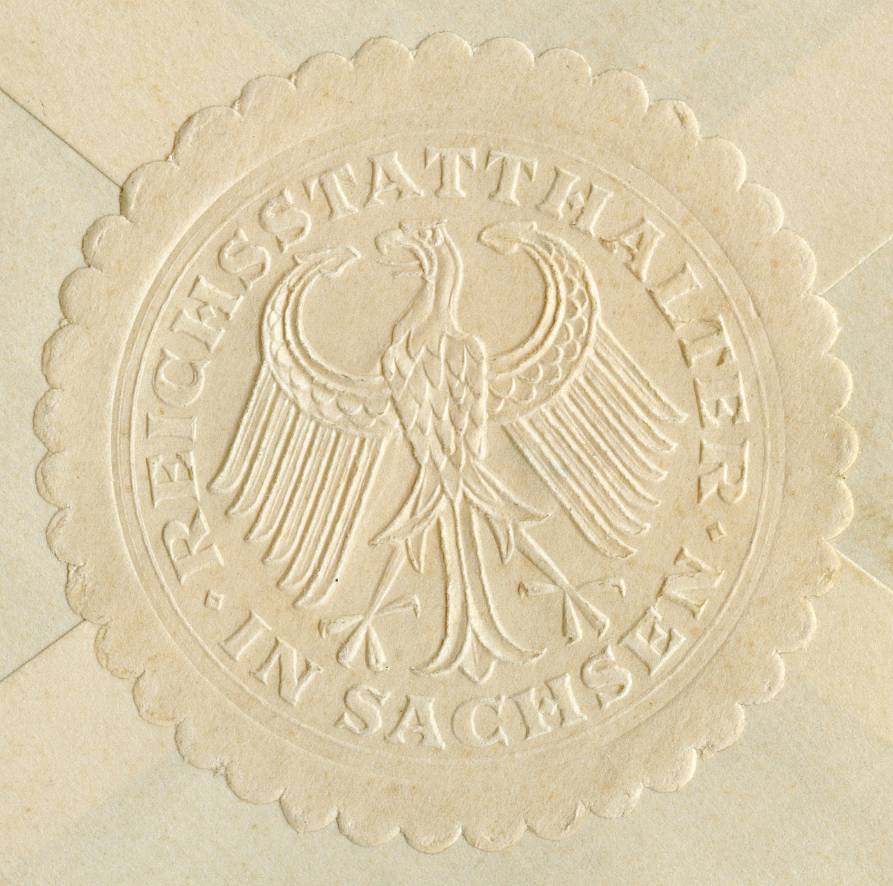[Below: What a cool looking piece. This says: 'Reichsstatthalter in Sachsen' (Reich Governor in Saxony), Dresden, September 30, 1933.]