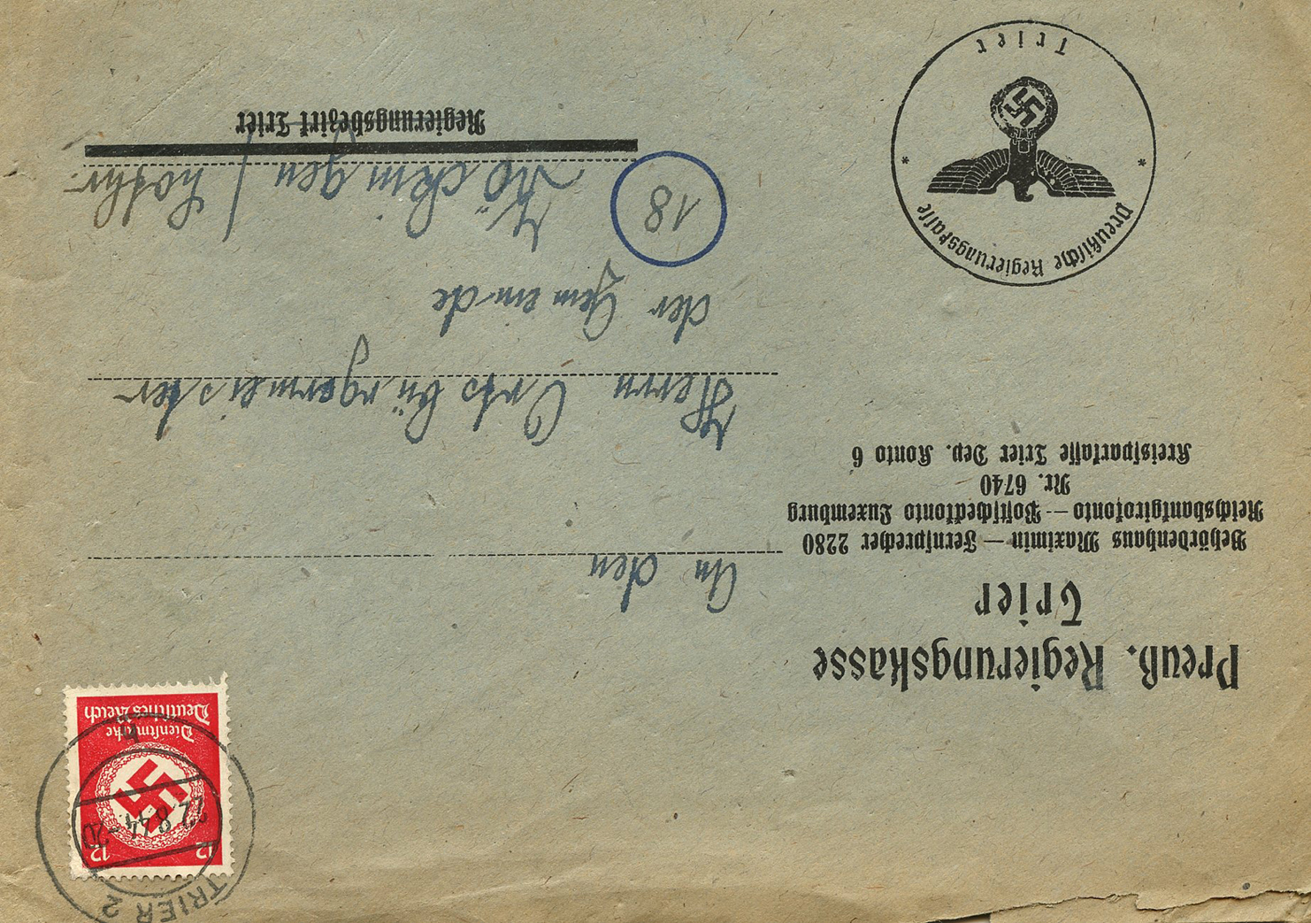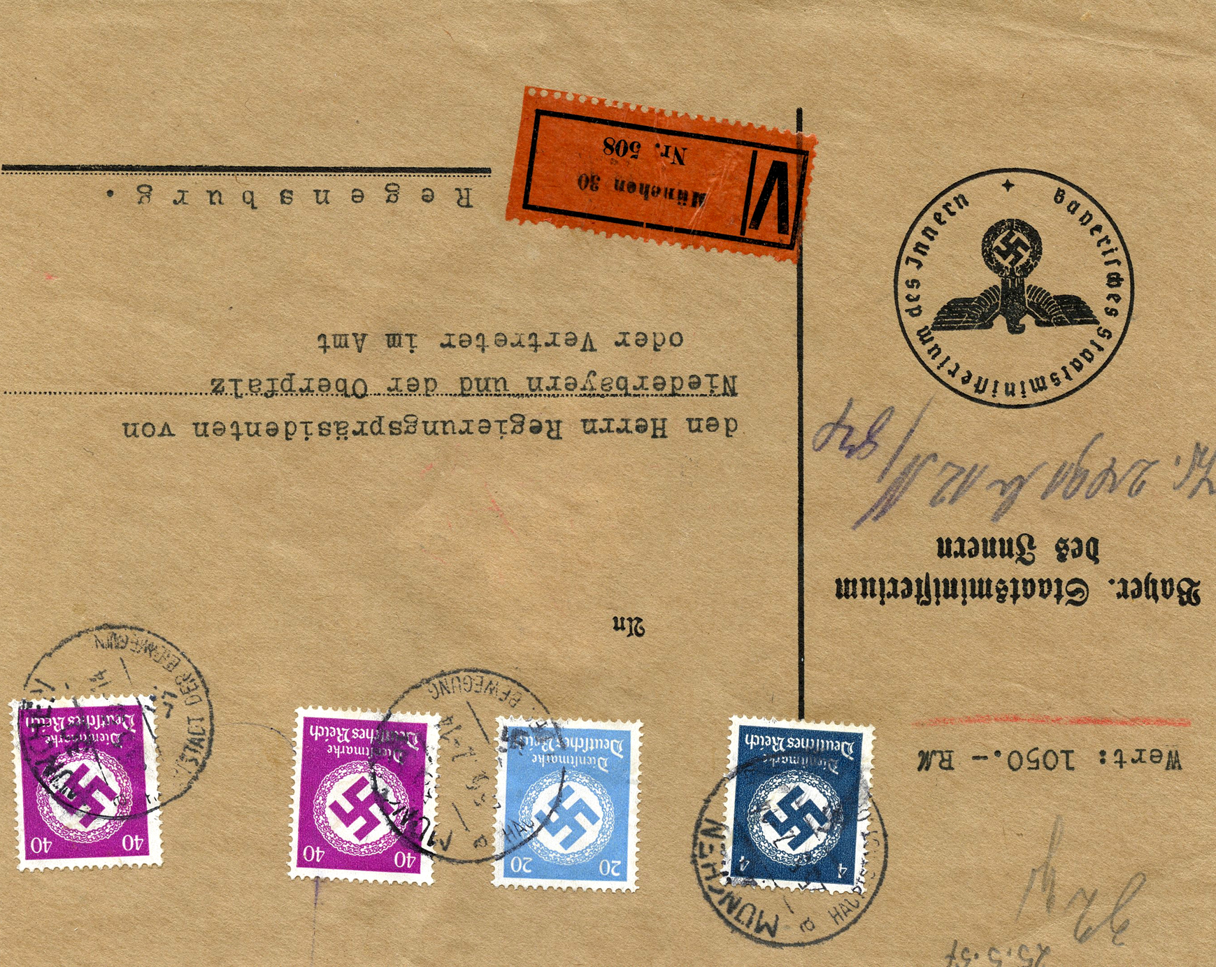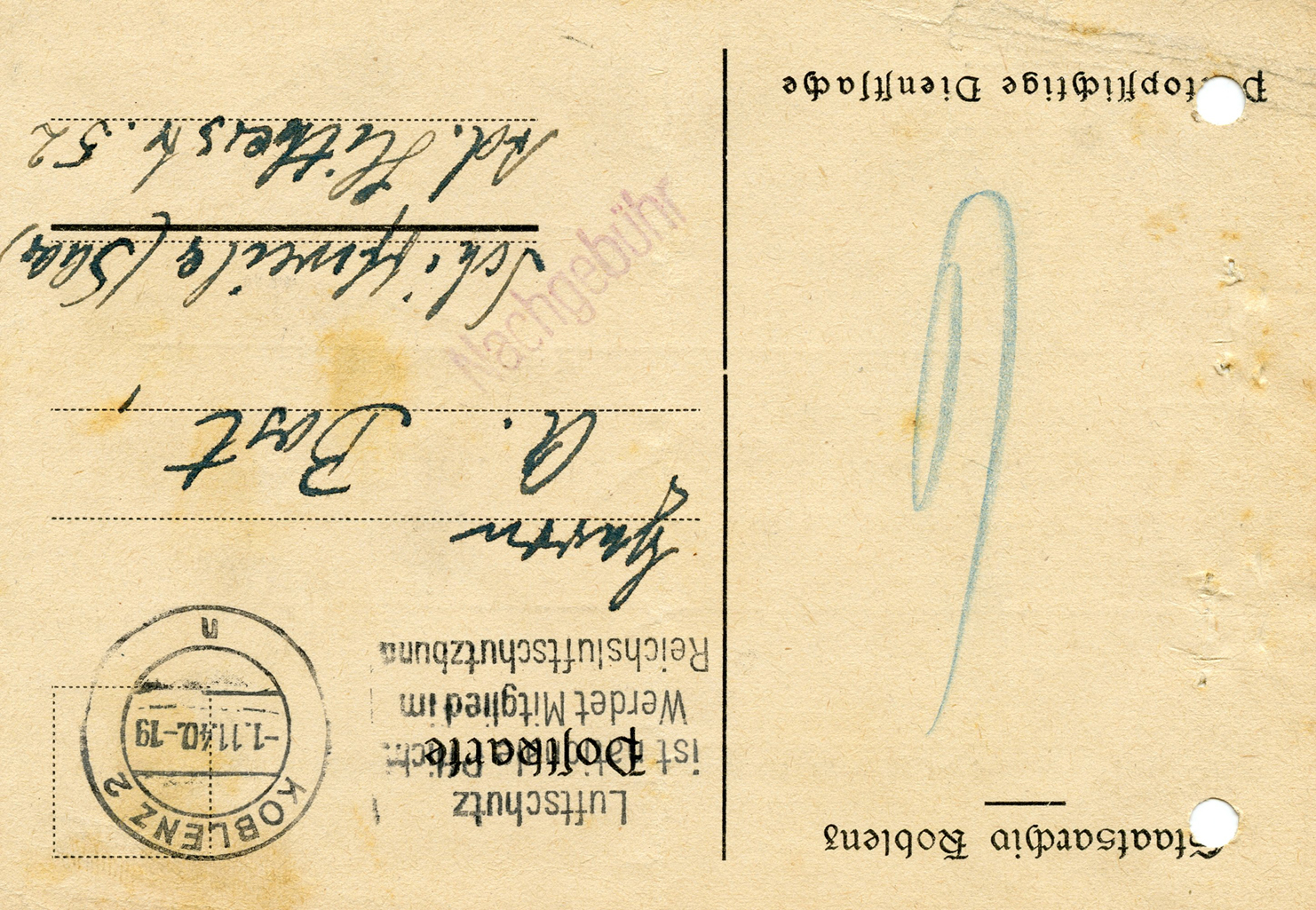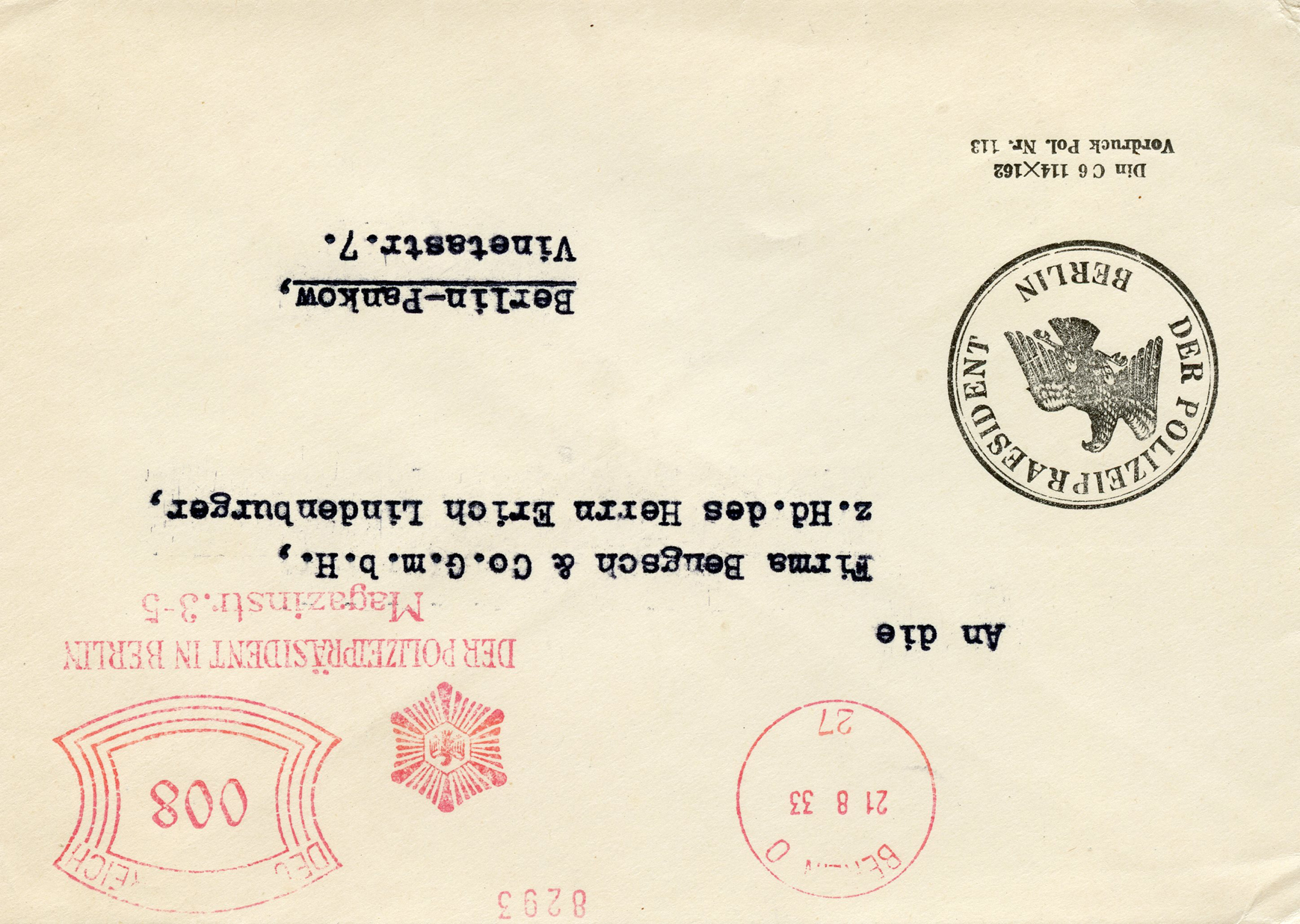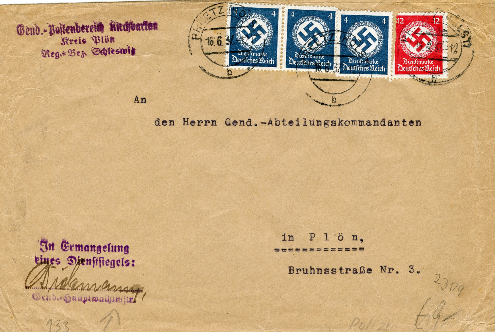[Below: Note the stamps are perforated into the letters 'POL', this stands for polizei (police).]