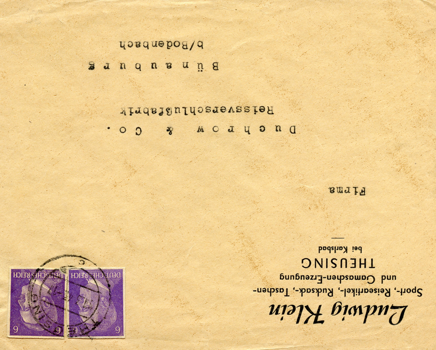 [Below: This was sent registered on July 30, 1935 to 'Nordstern - Versicherungs' (Nordstern Insurance) from 'Paul Meinelt - Stickereifabrikation' (Paul Meinelt - Embroidery Manufacturing). This insurance company was bought out in 1997 by another company, but the embroidery company is completely lost to time.]