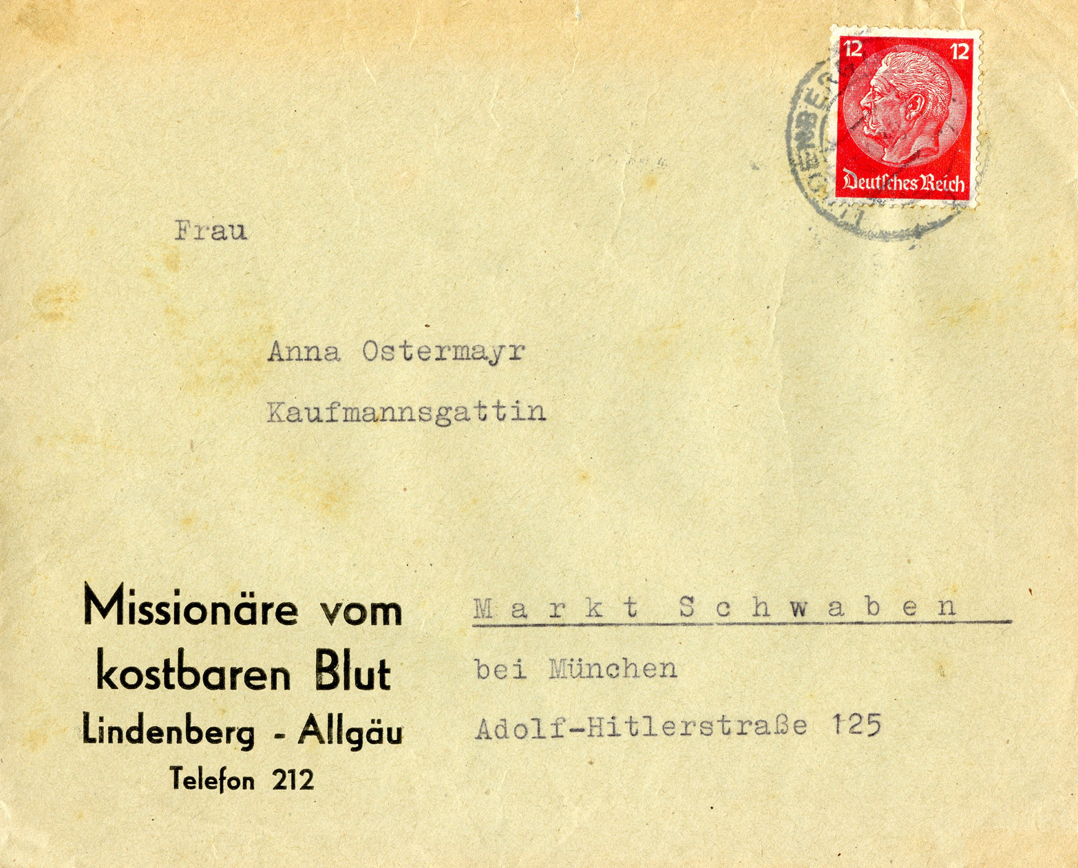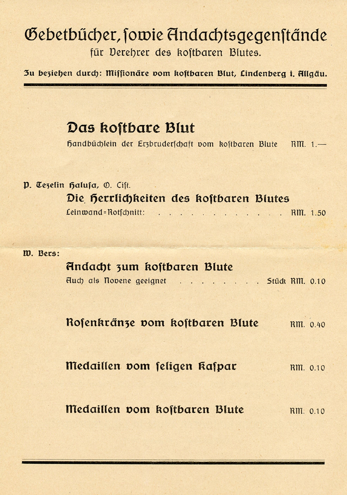[Below: This 1939 envelope (and contents) is from 'Missionaries of the Precious Blood', obviously a vampire organization.]