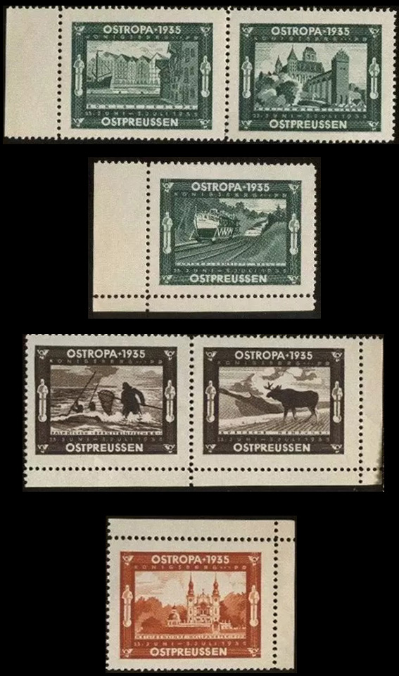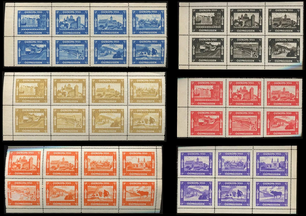[Below: OSTROPA commemorative stamps. These privately produced stamps are fairly rare. This is not a complete set. Click to enlarge.]