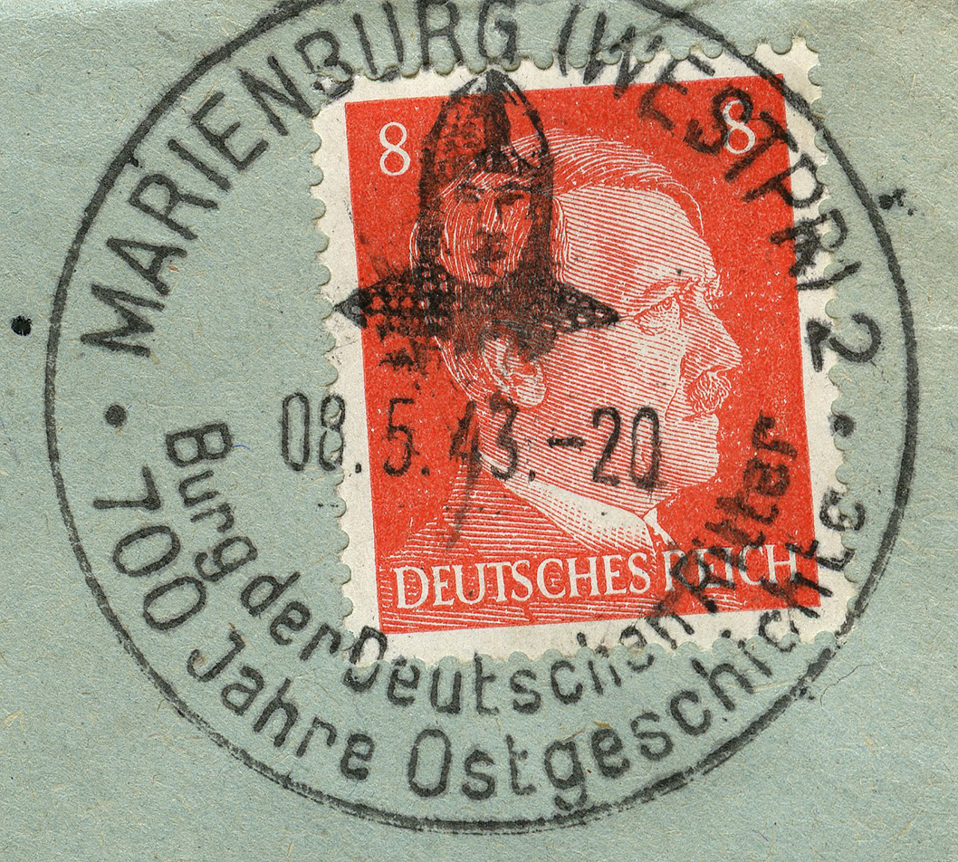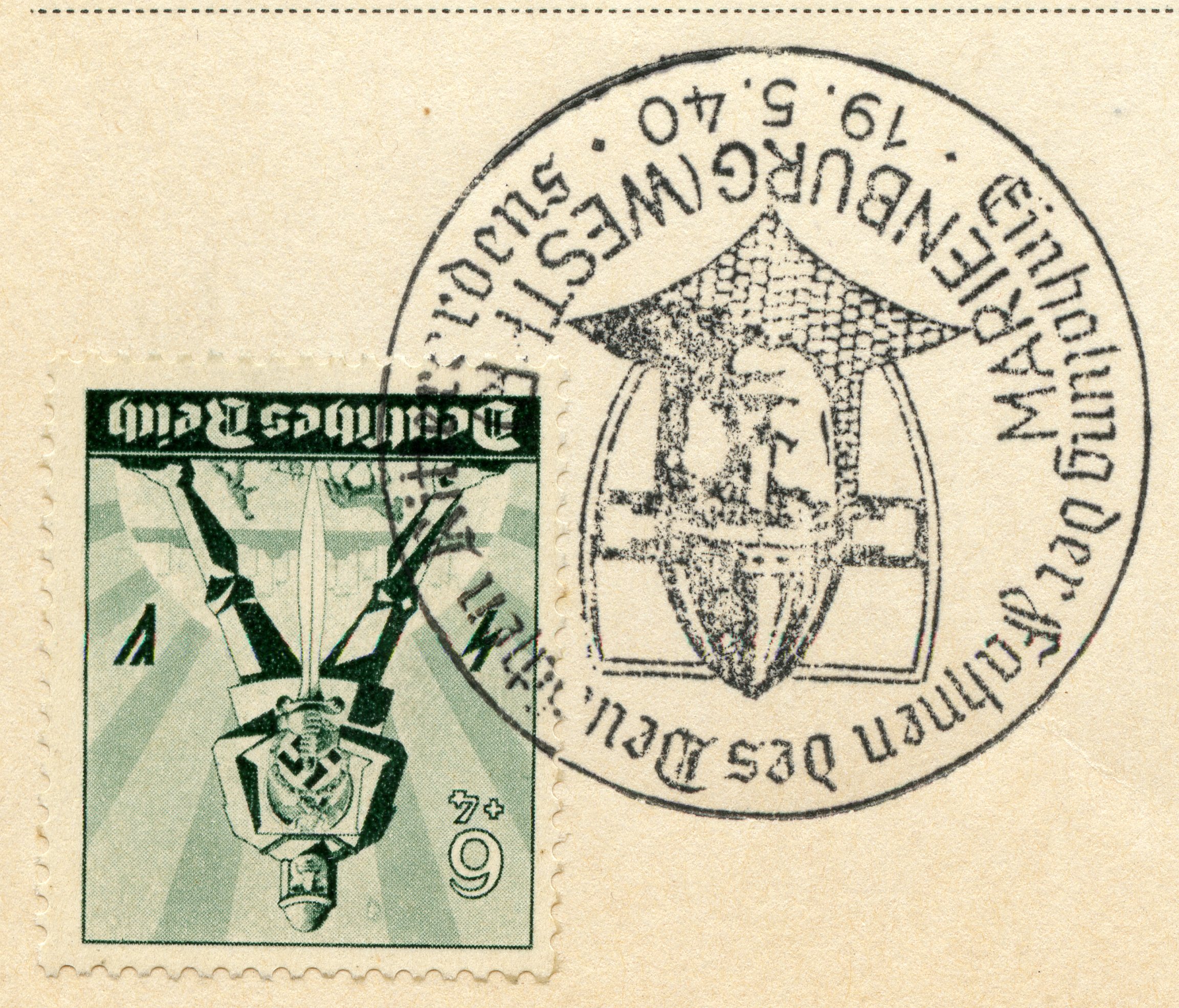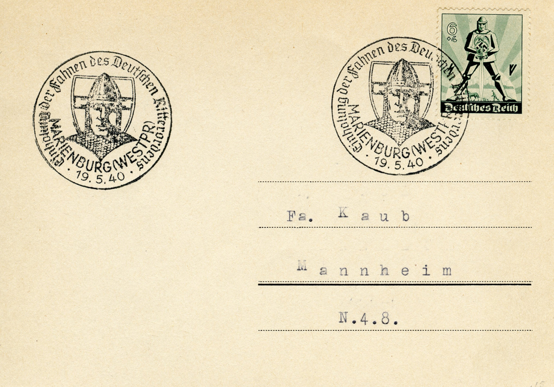 [Below: In keeping with the knight theme, here is a special cancel from May 8, 1943. It is from Marienburg and says: