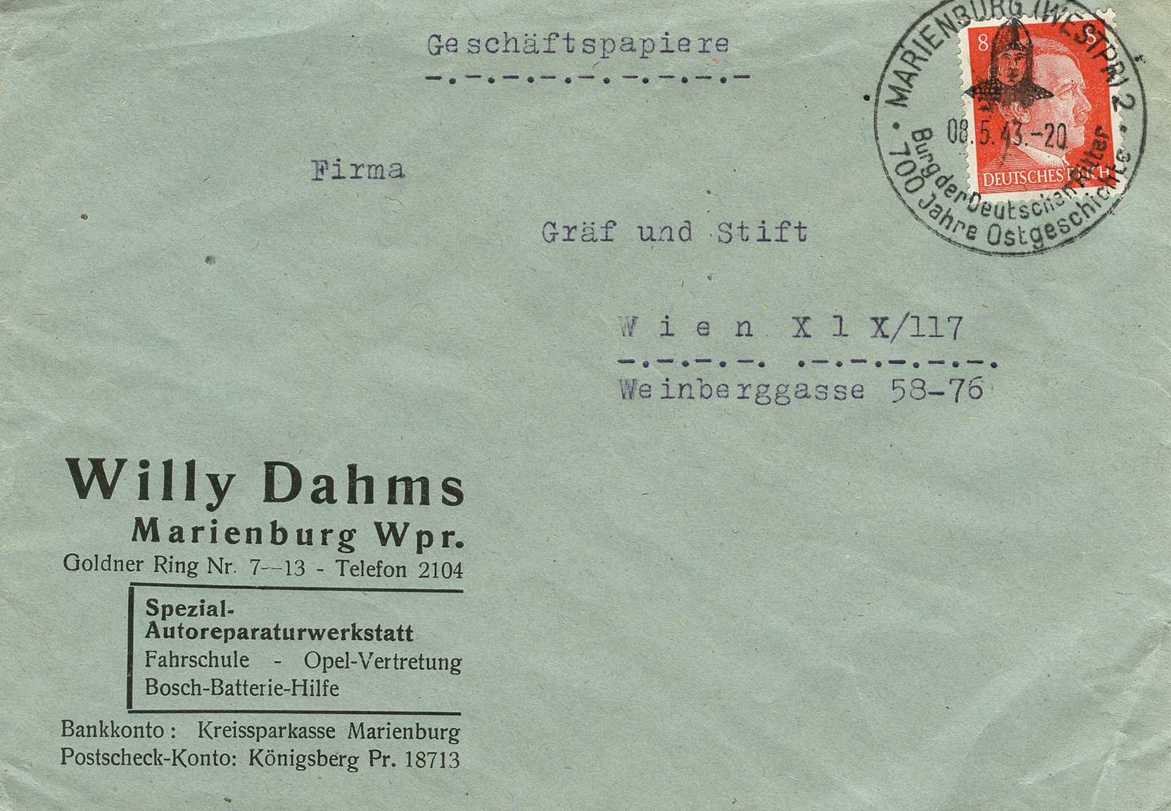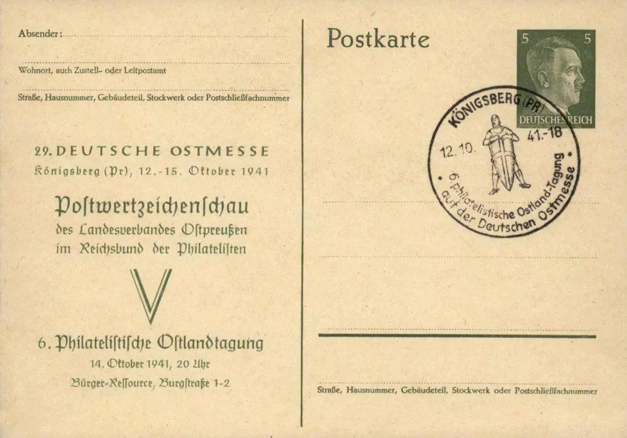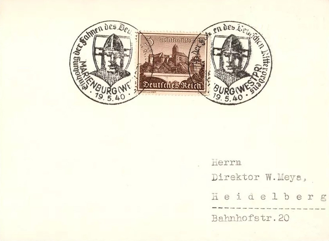 [Below: In keeping with the knight theme, here is a special cancel from May 8, 1943. It is from Marienburg and says: