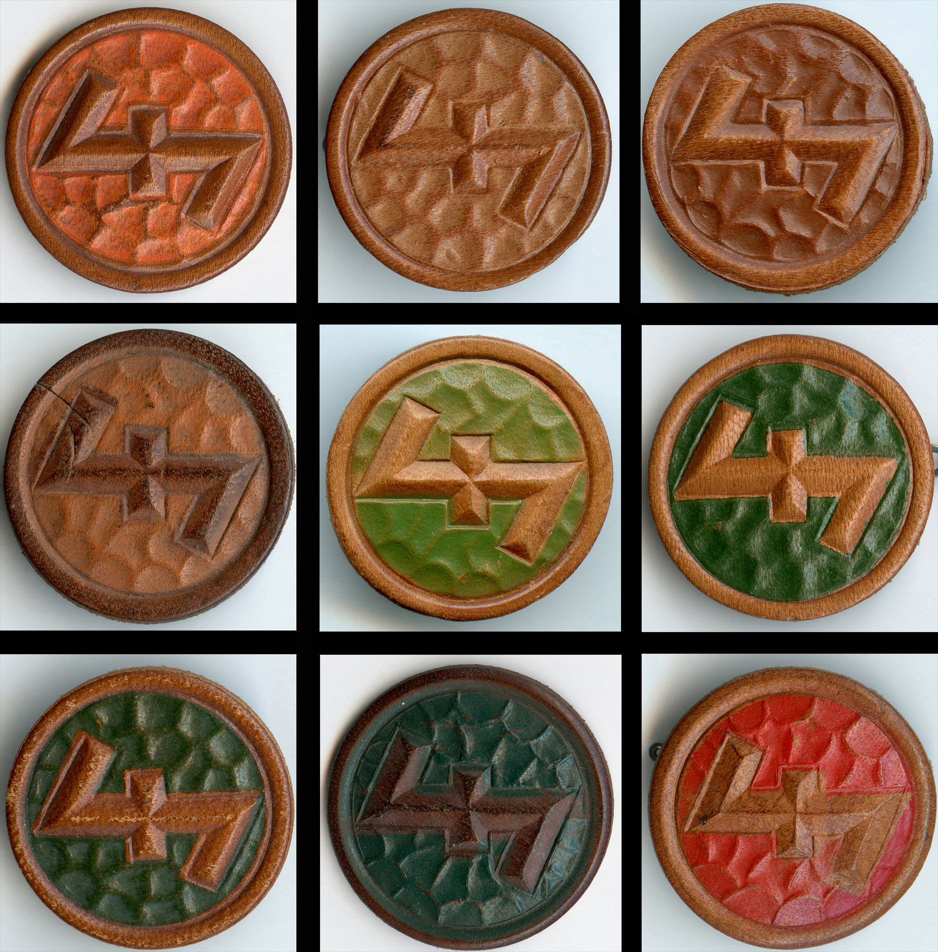 [Below: On the topic, here are another group of WHW badges, showing variations. They are made of leather.]