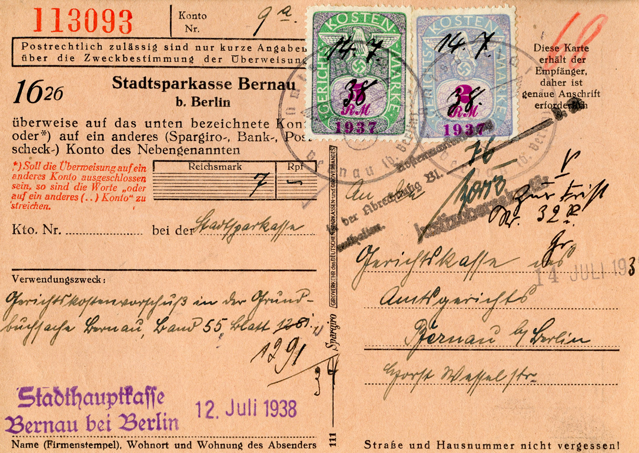 [Below: Now this is a strange postcard. I've never seen this type of postcard before. The stamps are court fees stamps, not postage stamps, which is interesting. As far as I can tell this has something to do with court fees. Click to enlarge.]