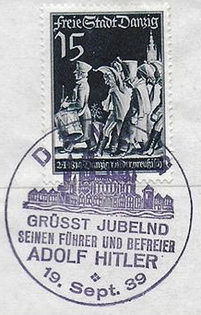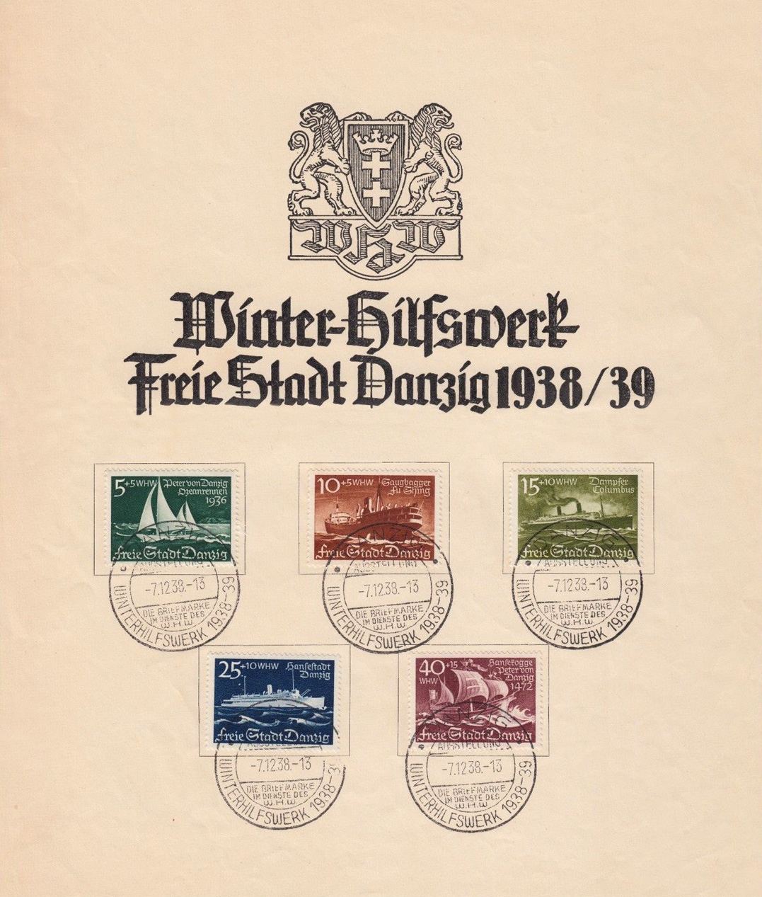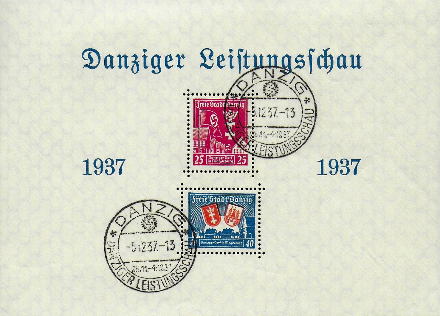 [Below: Danzig postal souvenir sheet canceled on December 5, 1937.]