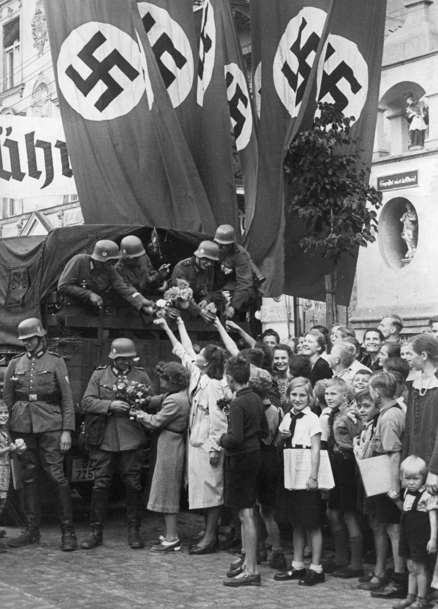 [Below: The jubilant arrival of the Führer to Danzig.]