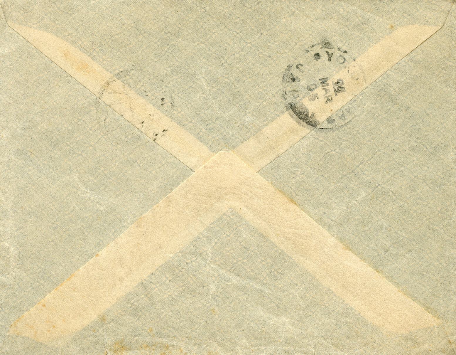 It's interesting that two German stamps are canceled on the top left of the envelope. Click to enlarge.]