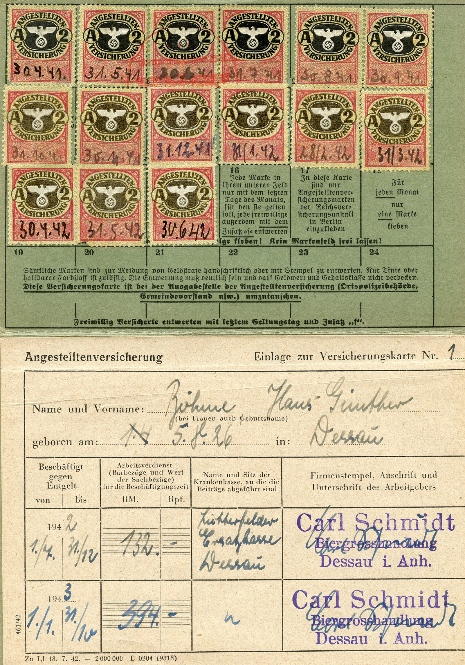 [Below: Inside. This shows the tax stamps were used during 1941-1942.]