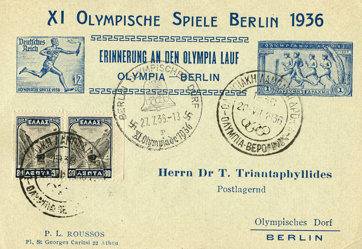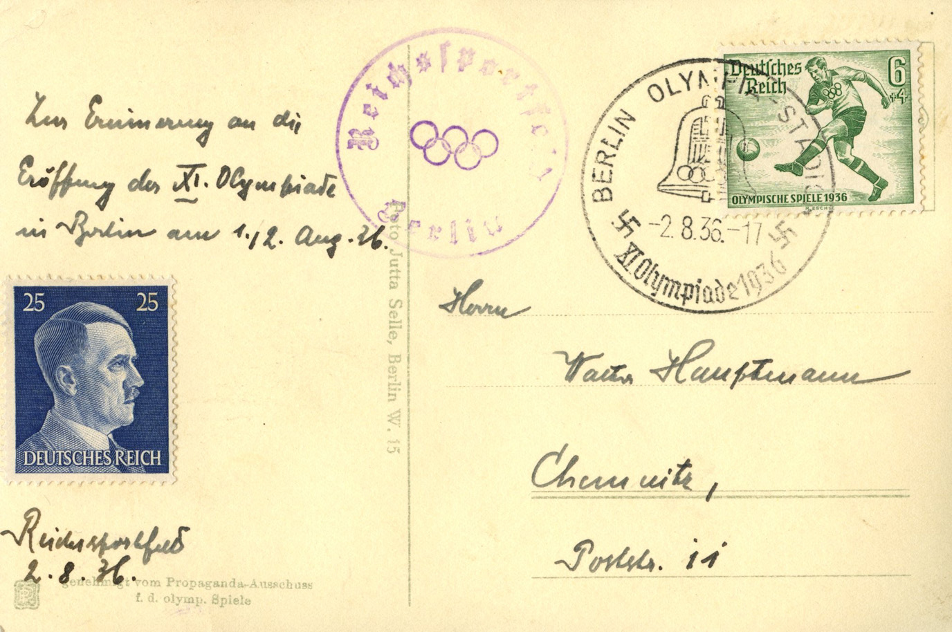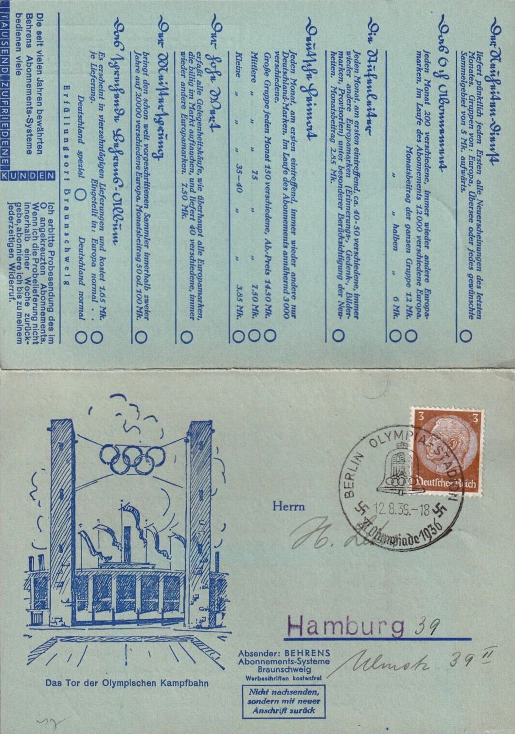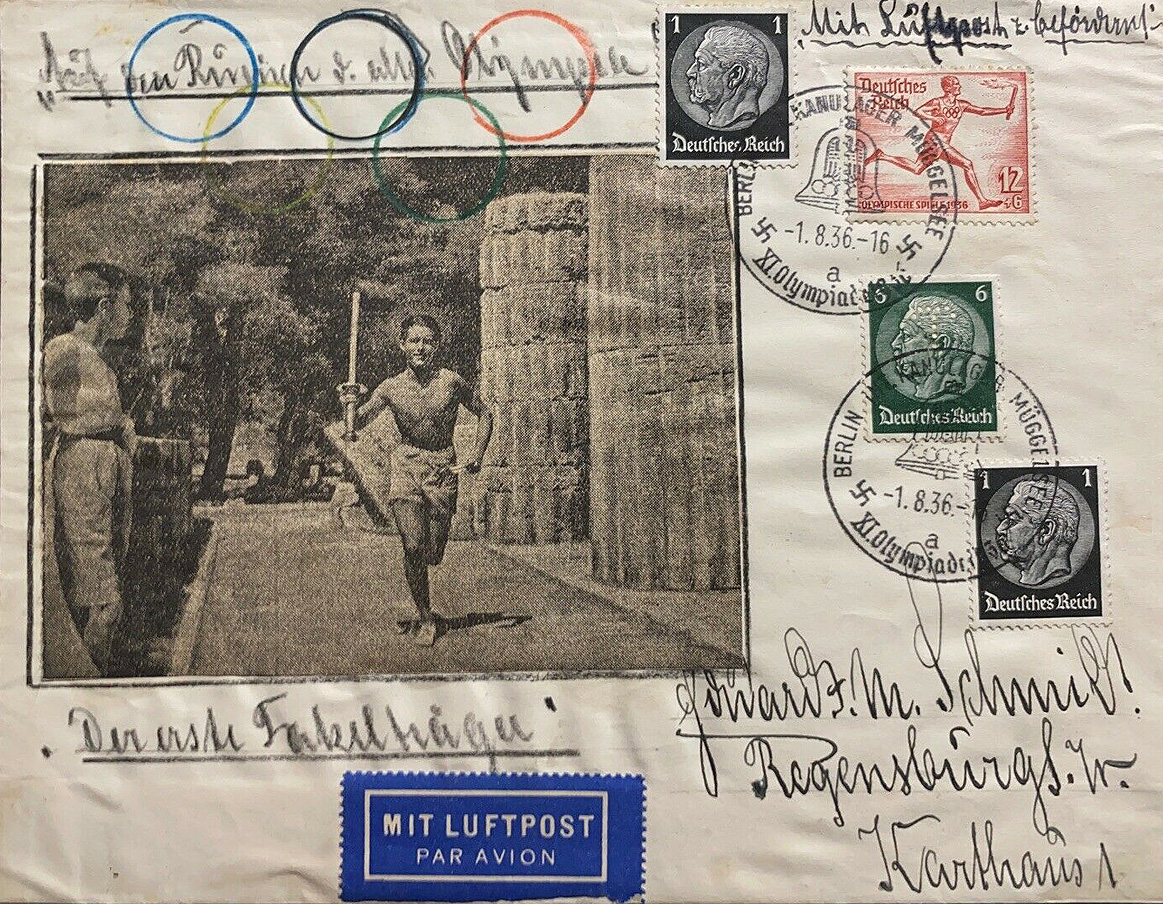 [Above: Italian/German Olympics advertising stamp (damaged).]