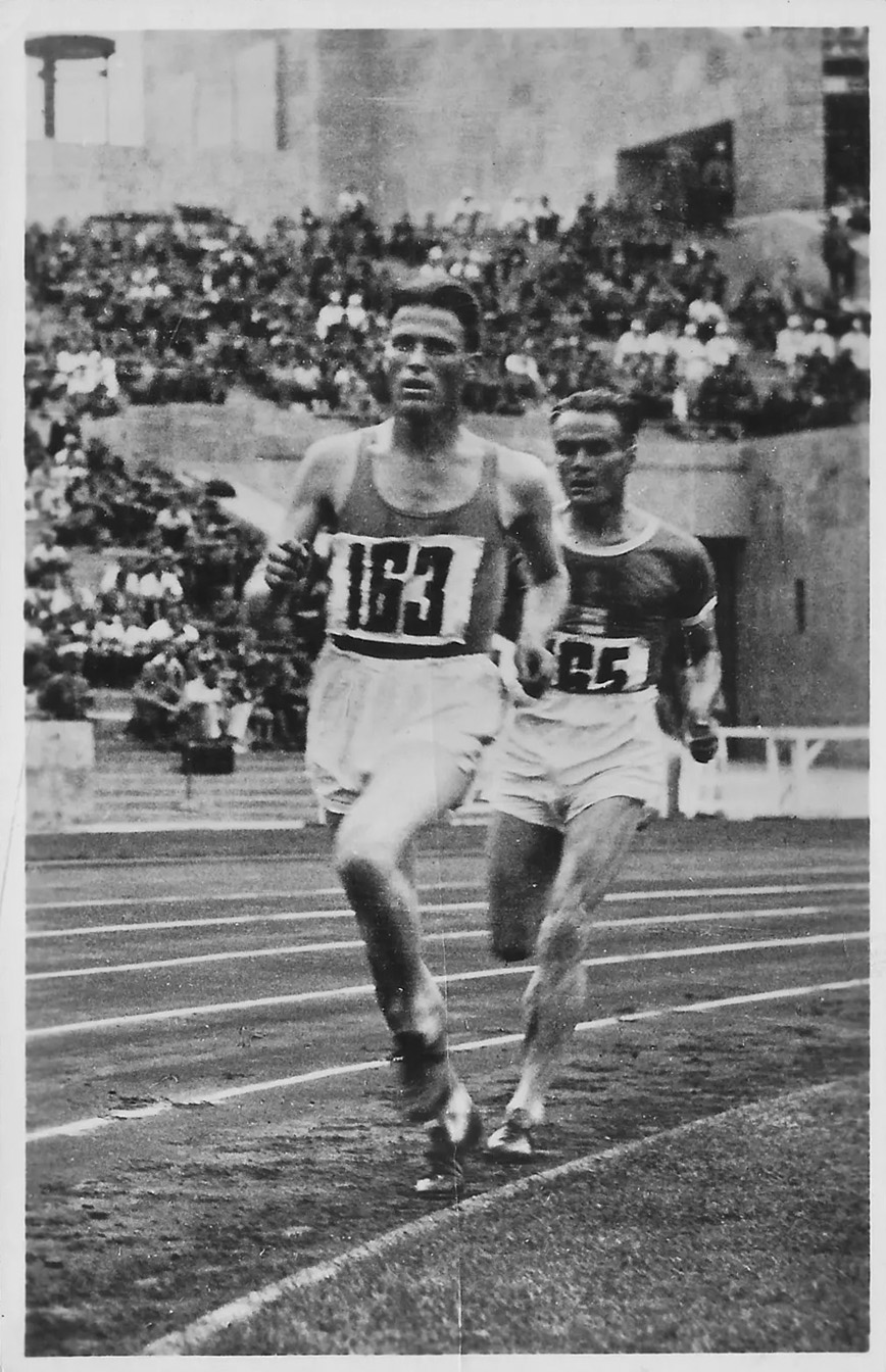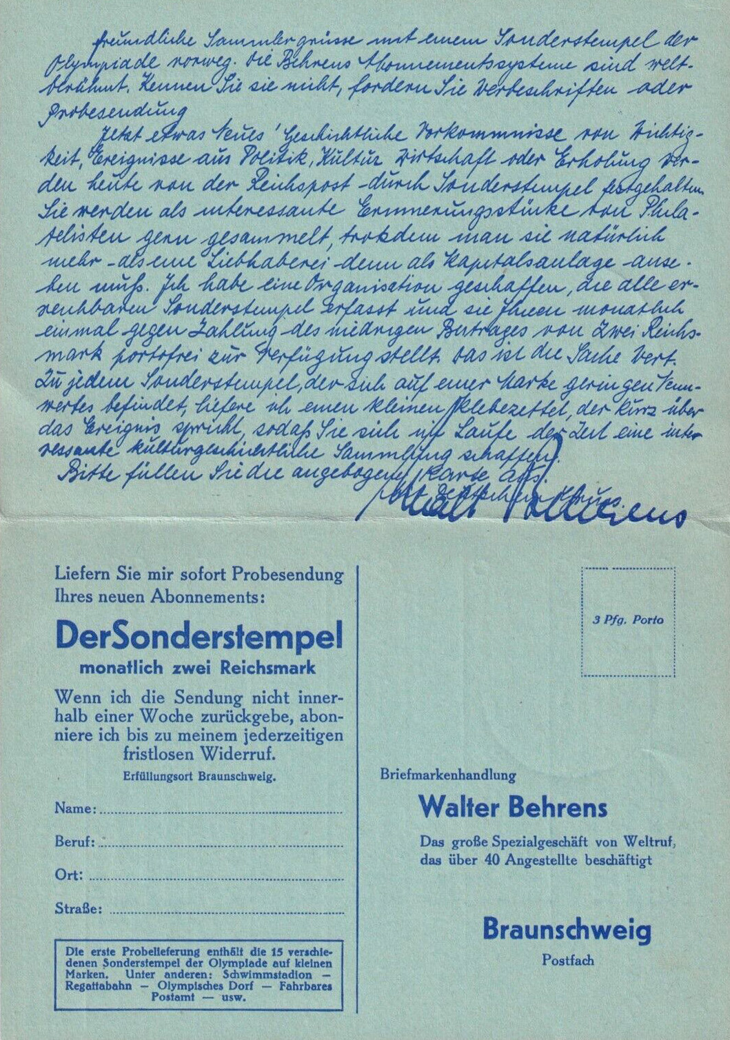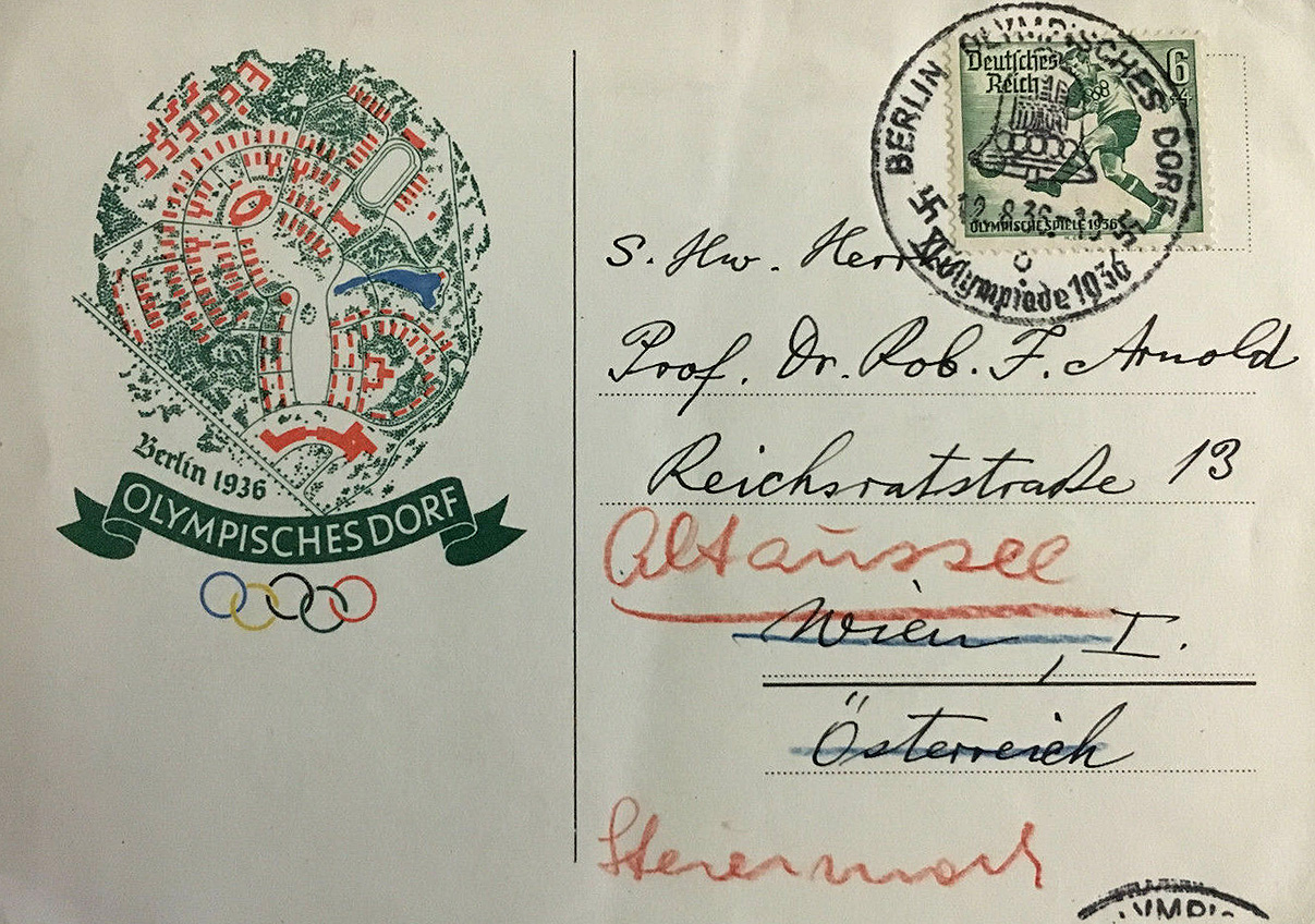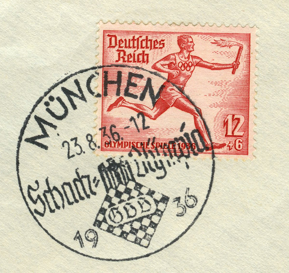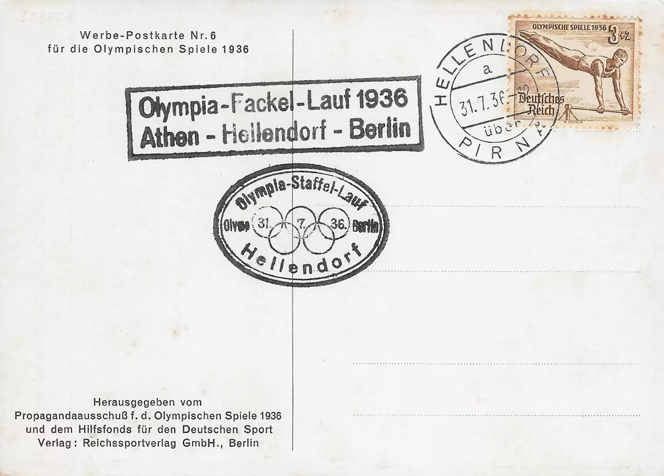 [Above: Italian/German Olympics advertising stamp (damaged).]
