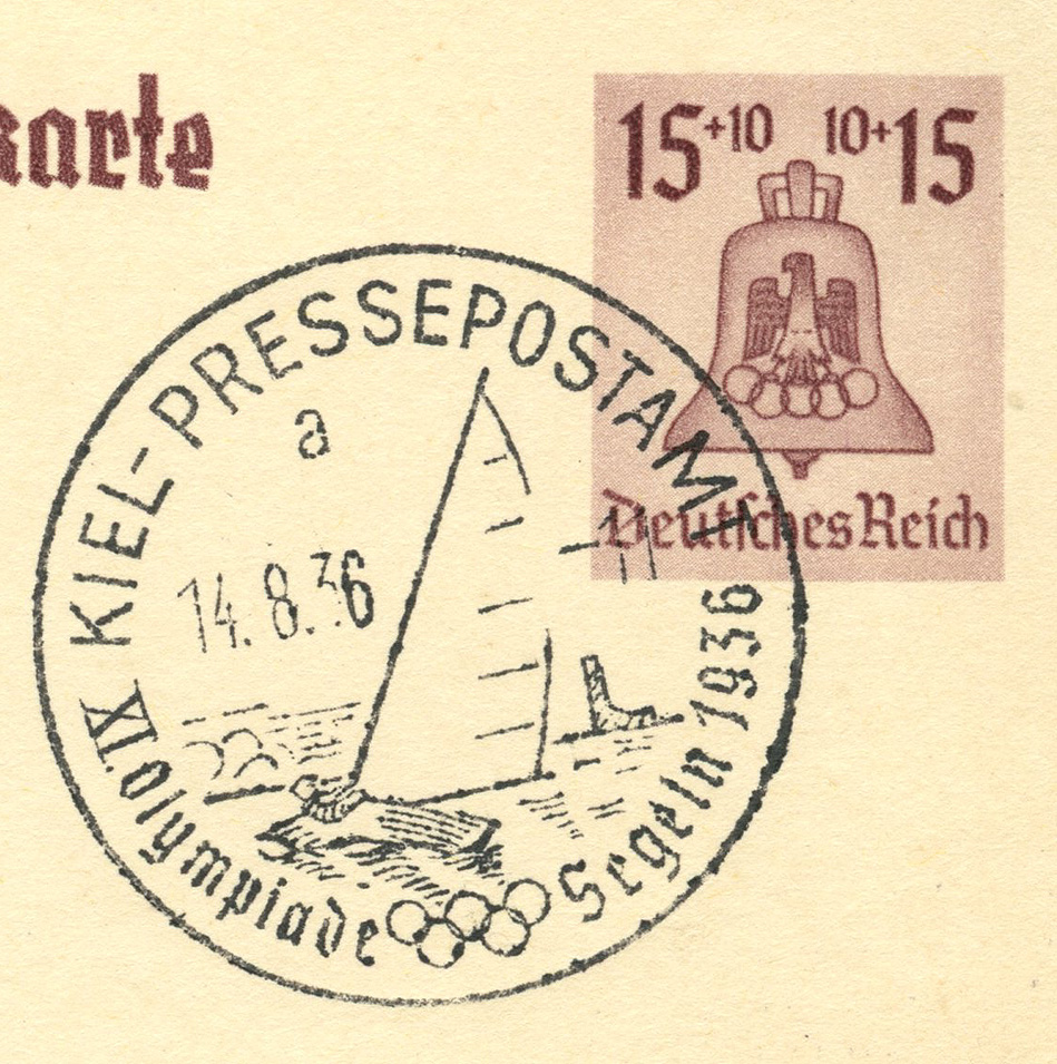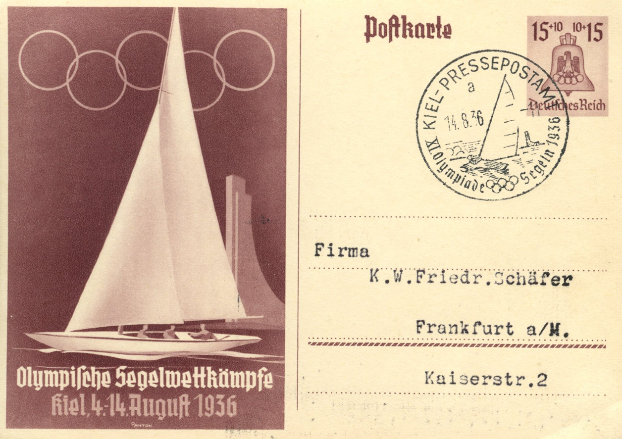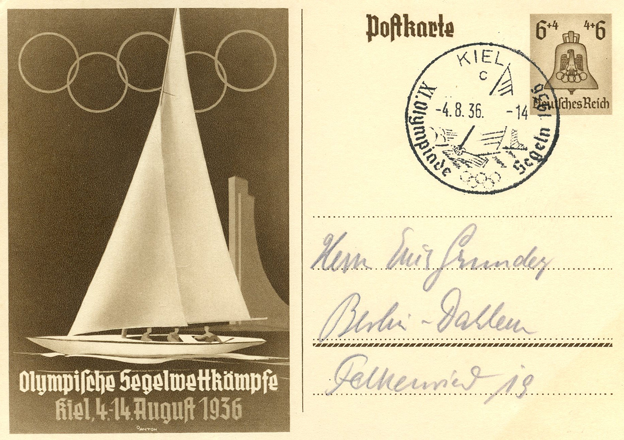 [Above: Postcard advertising the 'Olympische Segelwettkämpfe' (Olympic sailing competitions).]