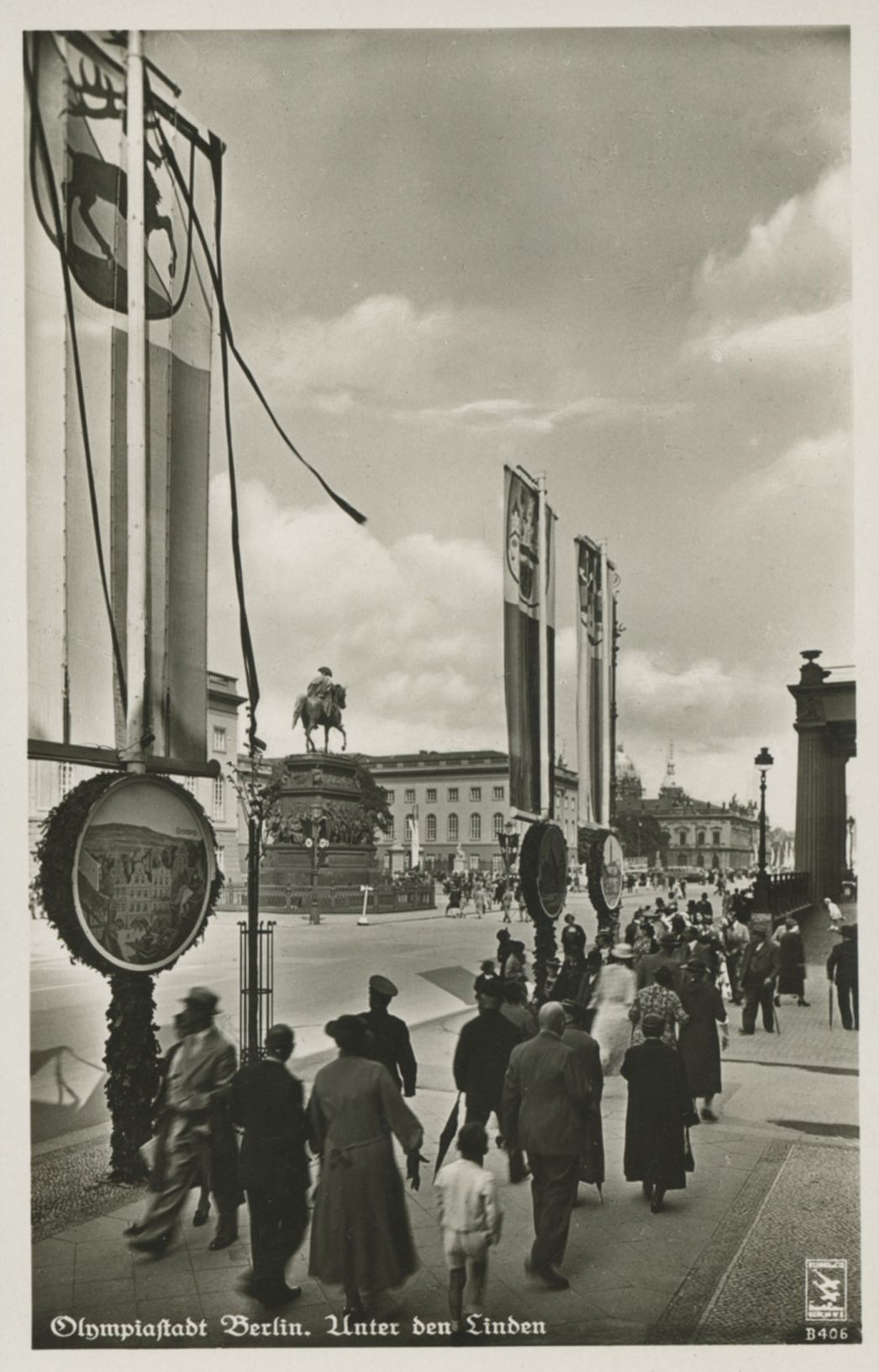 [Above: Postcard showing Berlin decorated for the Olympics. Front.]